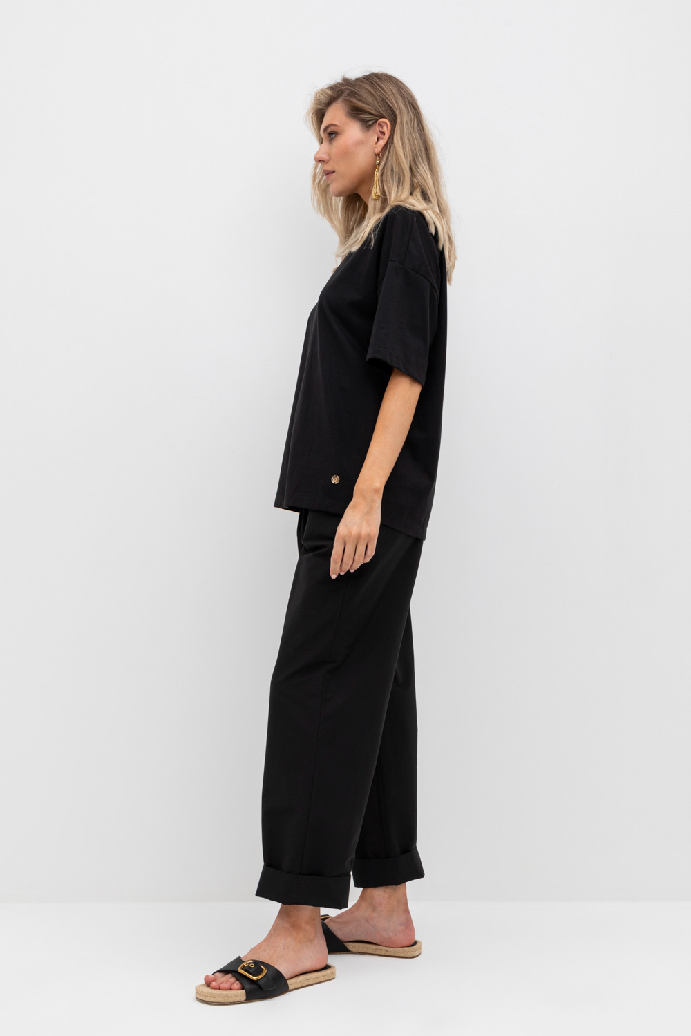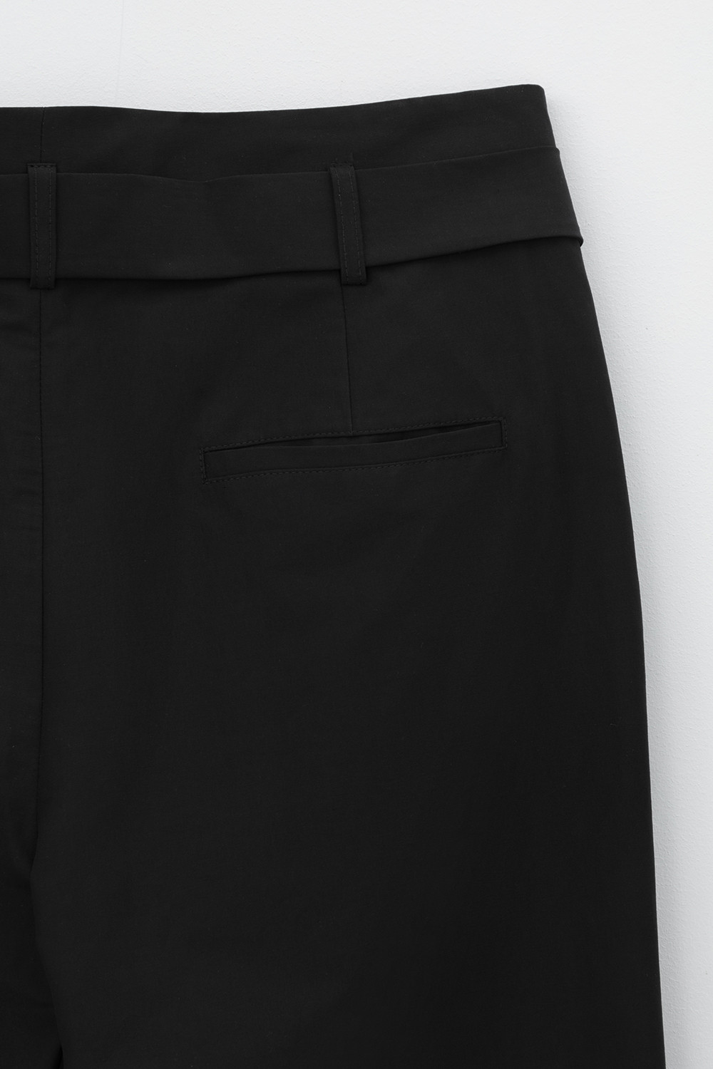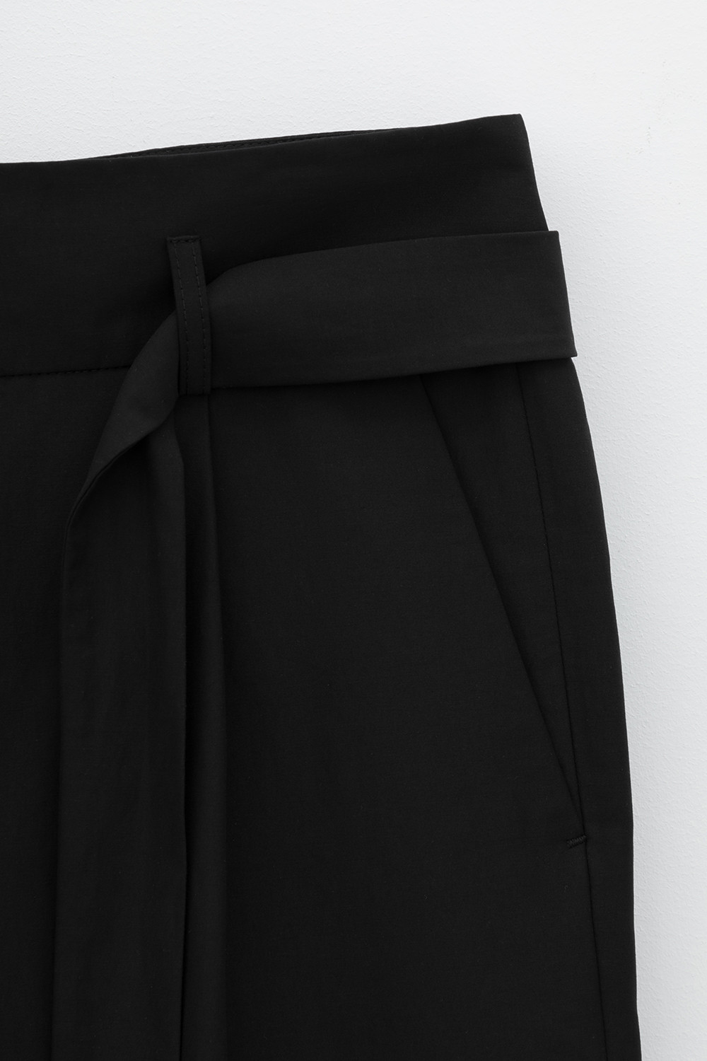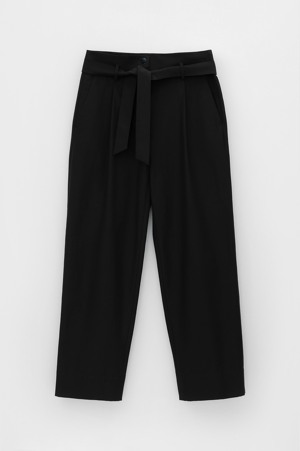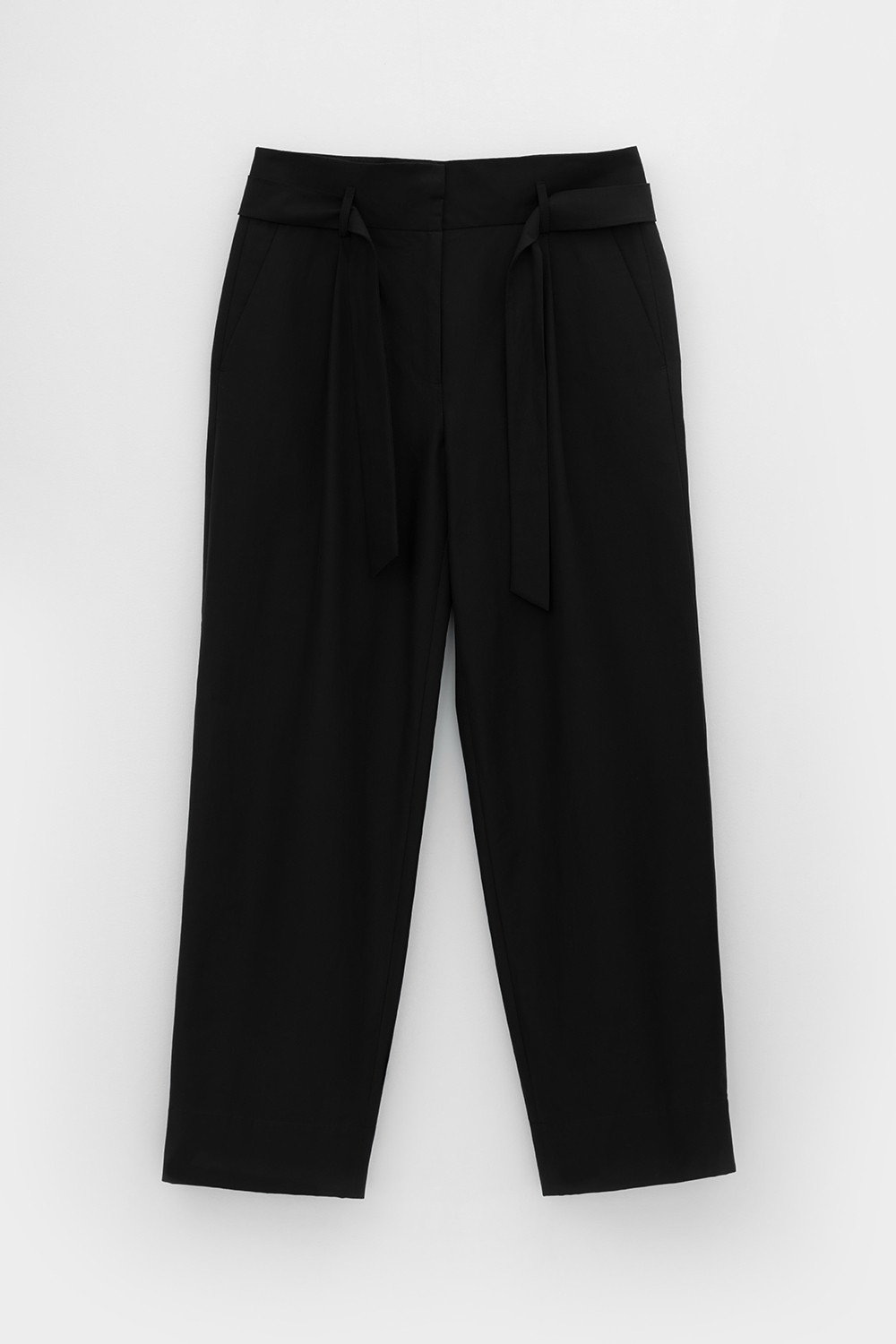 Брюки женские из смесового хлопка с добавлением эластана со съемным поясом и боковыми карманами.