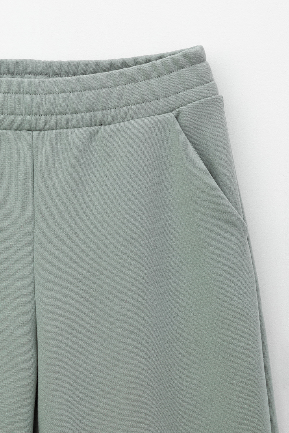 Укороченные теплые брюки на резинке с боковыми карманами из мягкого трикотажного футера трёхнитки.