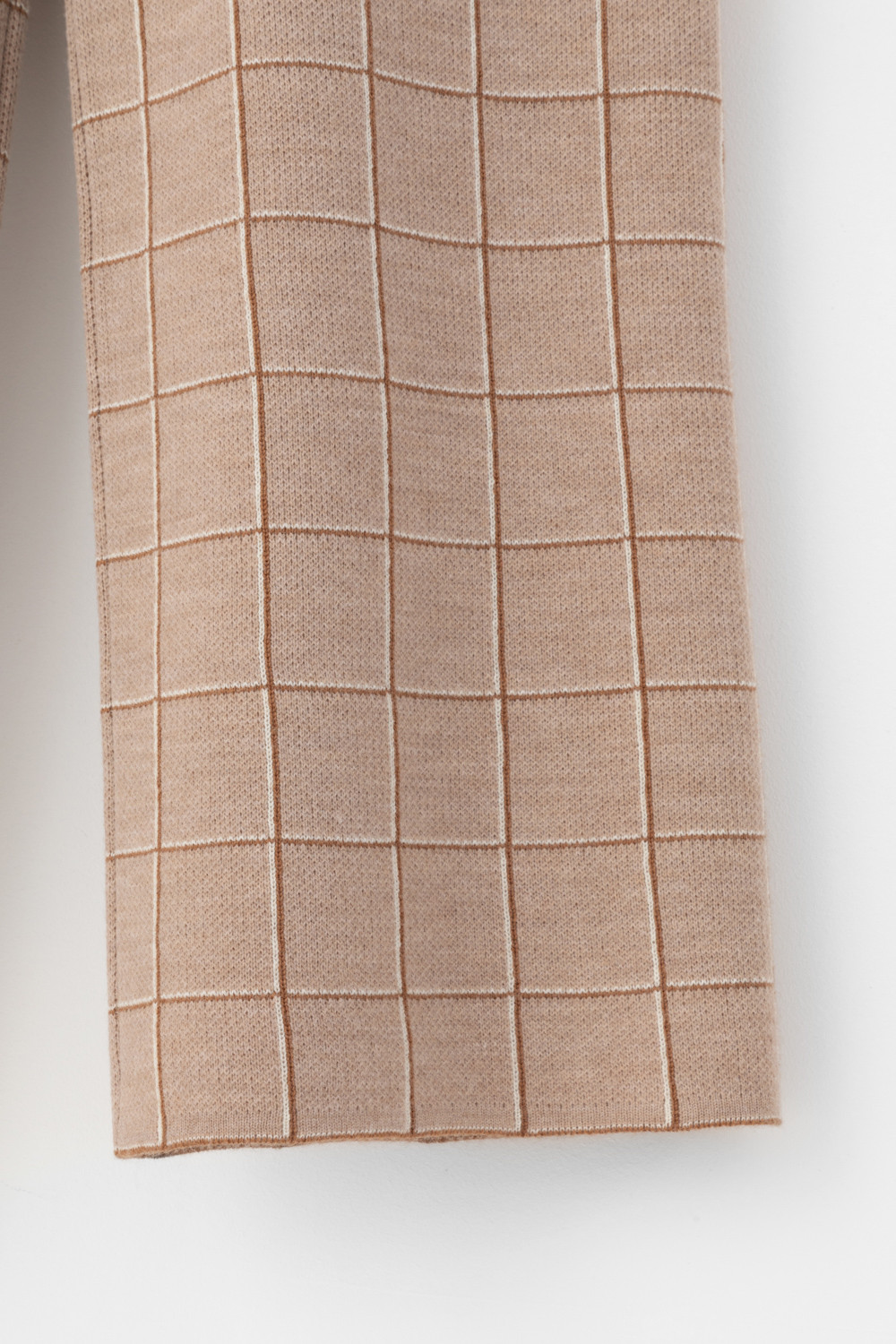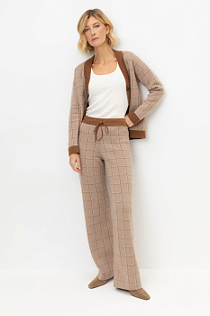 Удобные вязаные брюки прямого силуэта. Связаны жаккардом из мягкой полушерстяной пряжи. В составе 50% шерсти и 50% акрила. Шерсть мериноса в составе сохраняет тепло, а благодаря волокнам акрила изделие мягкое и дольше сохраняет форму. Плотная фактура вязания согревает и сохраняет форму во время носки.