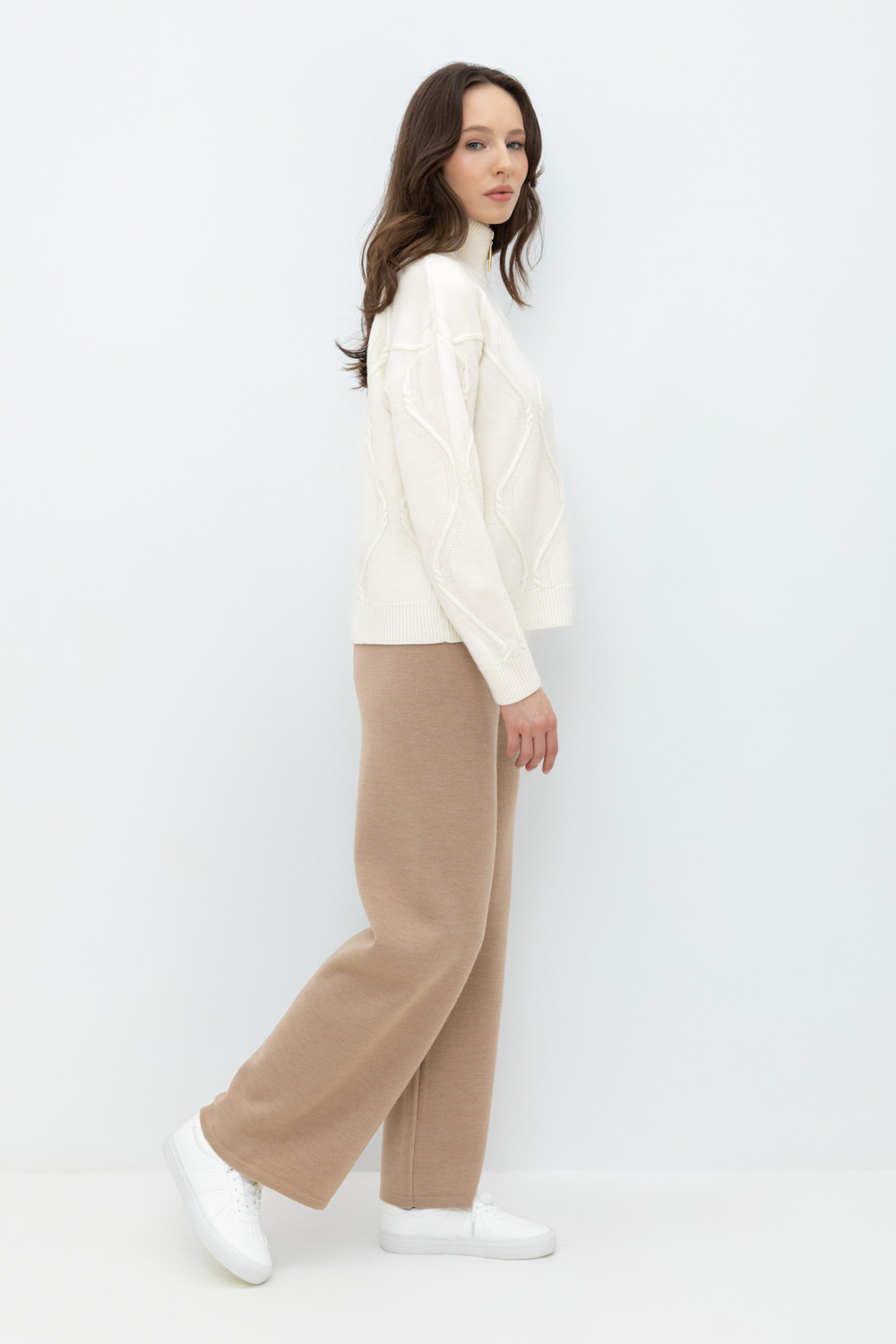 Удобные вязаные брюки прямого силуэта. Выполнены из мягкой полушерстяной пряжи. Шерсть в составе сохраняет тепло, а благодаря волокнам акрила изделие мягкое и дольше сохраняет форму.