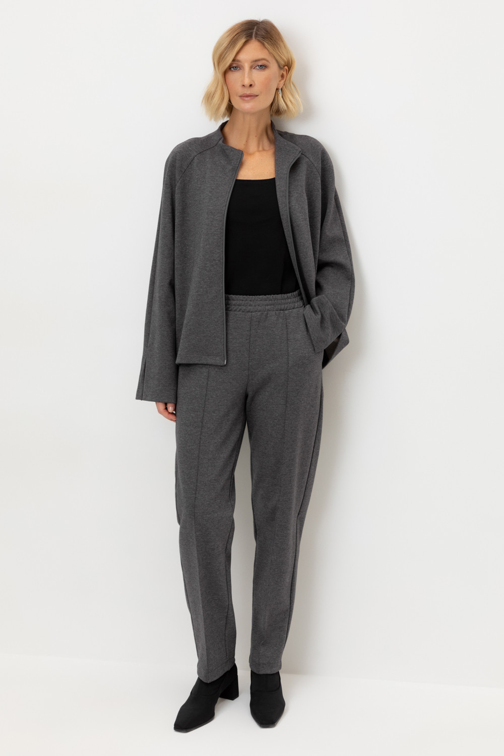 Брюки прямого кроя со стрелкой и боковыми карманами из плотного гладкого трикотажа интерлок. В составе 80% натурального хлопка и 20% полиэстера, при этом полиэстер ввязан внутрь по особой технологии и не соприкасается с кожей.