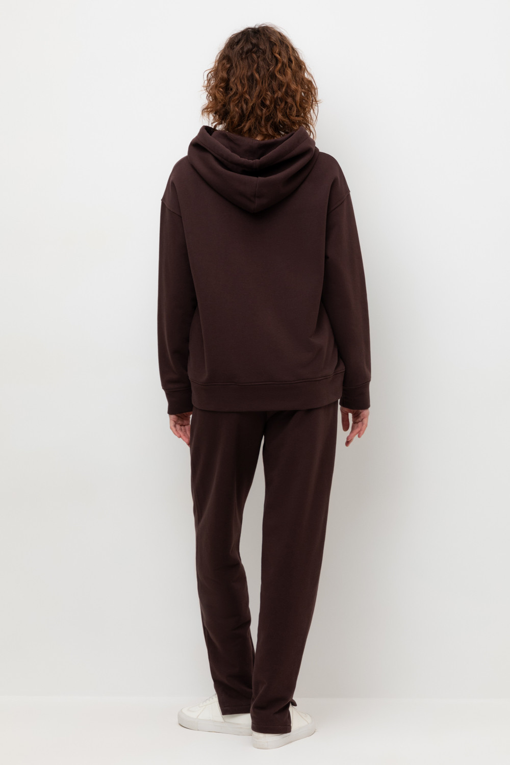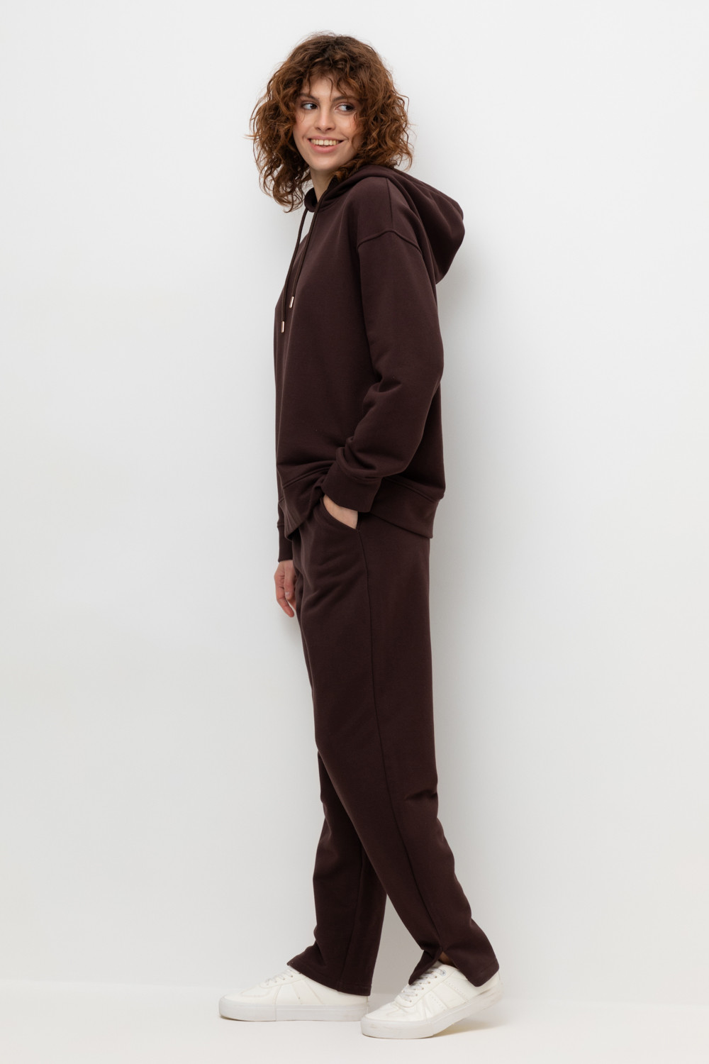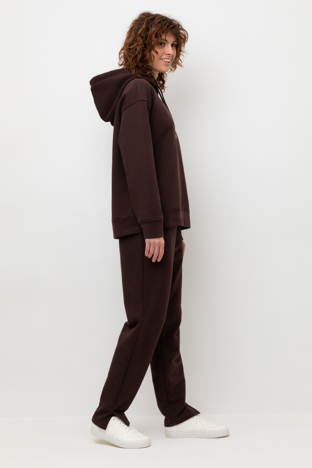 Брюки прямого кроя с боковыми карманами из петельчатого футера трехнитки. Гладкий и плотный материал на основе хлопка сохраняет форму.