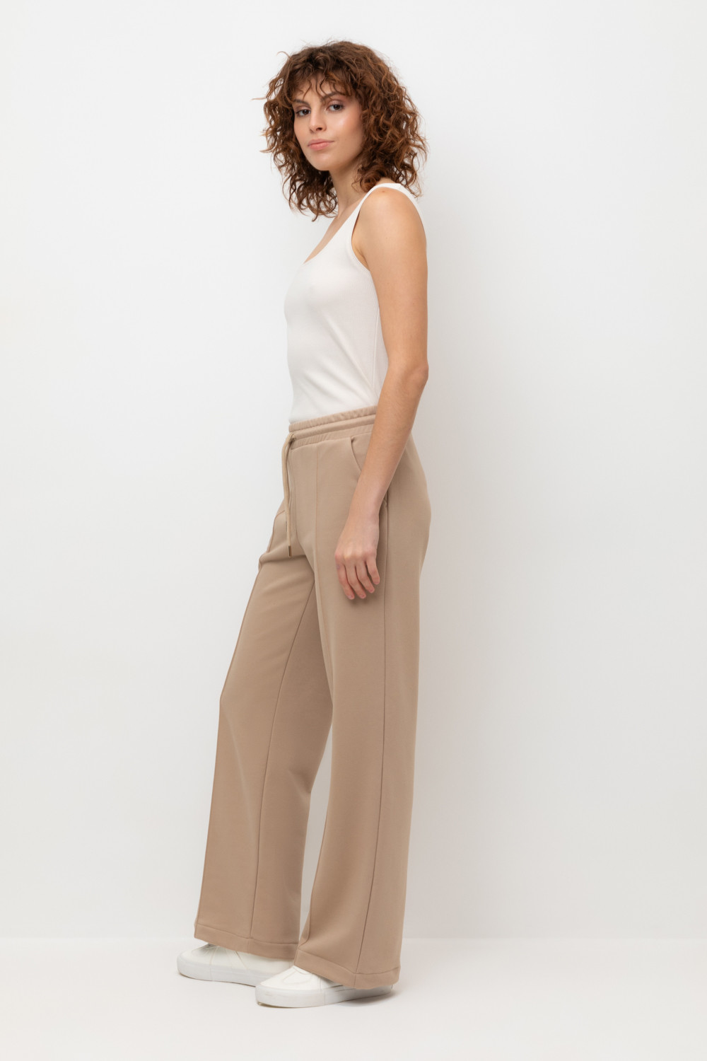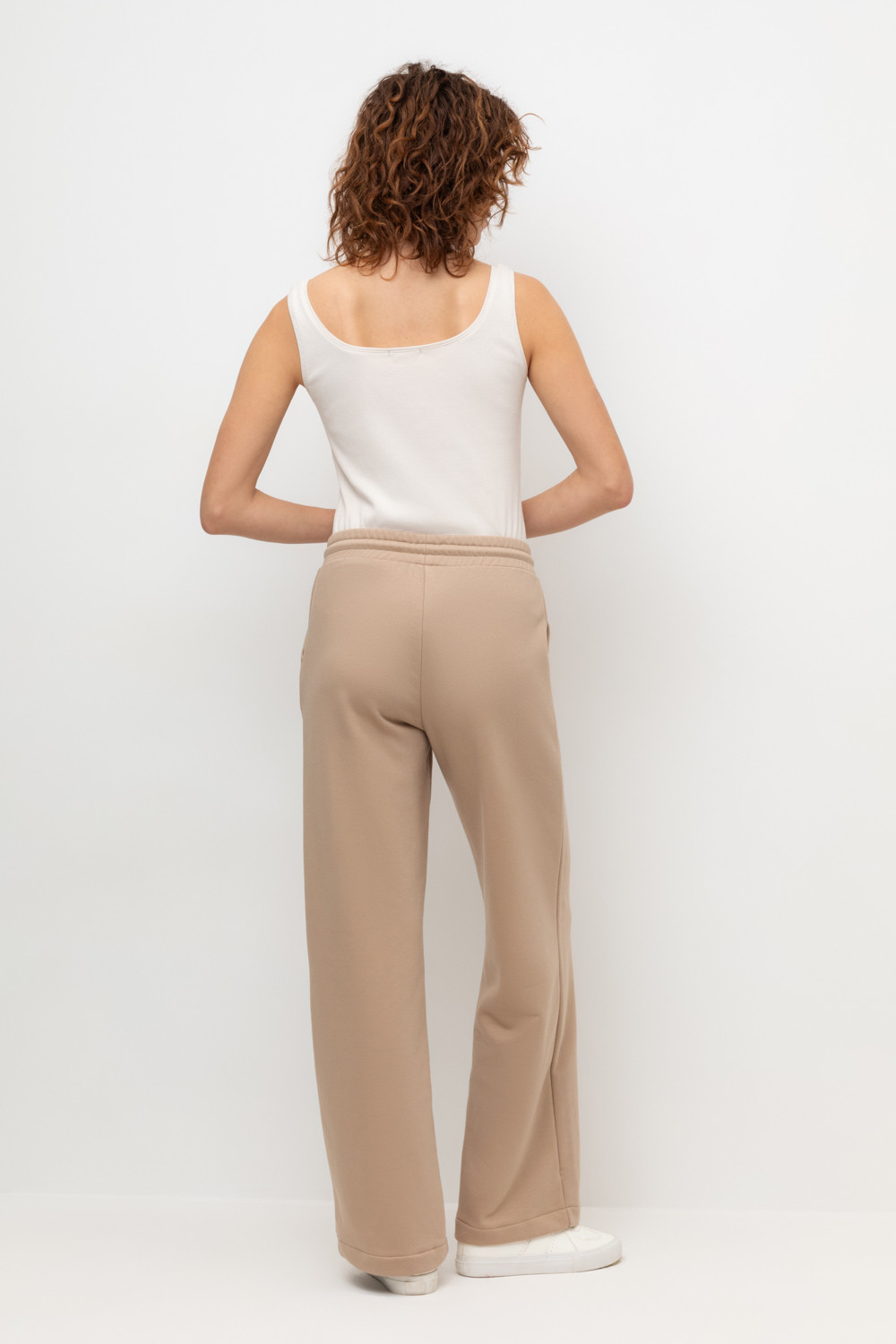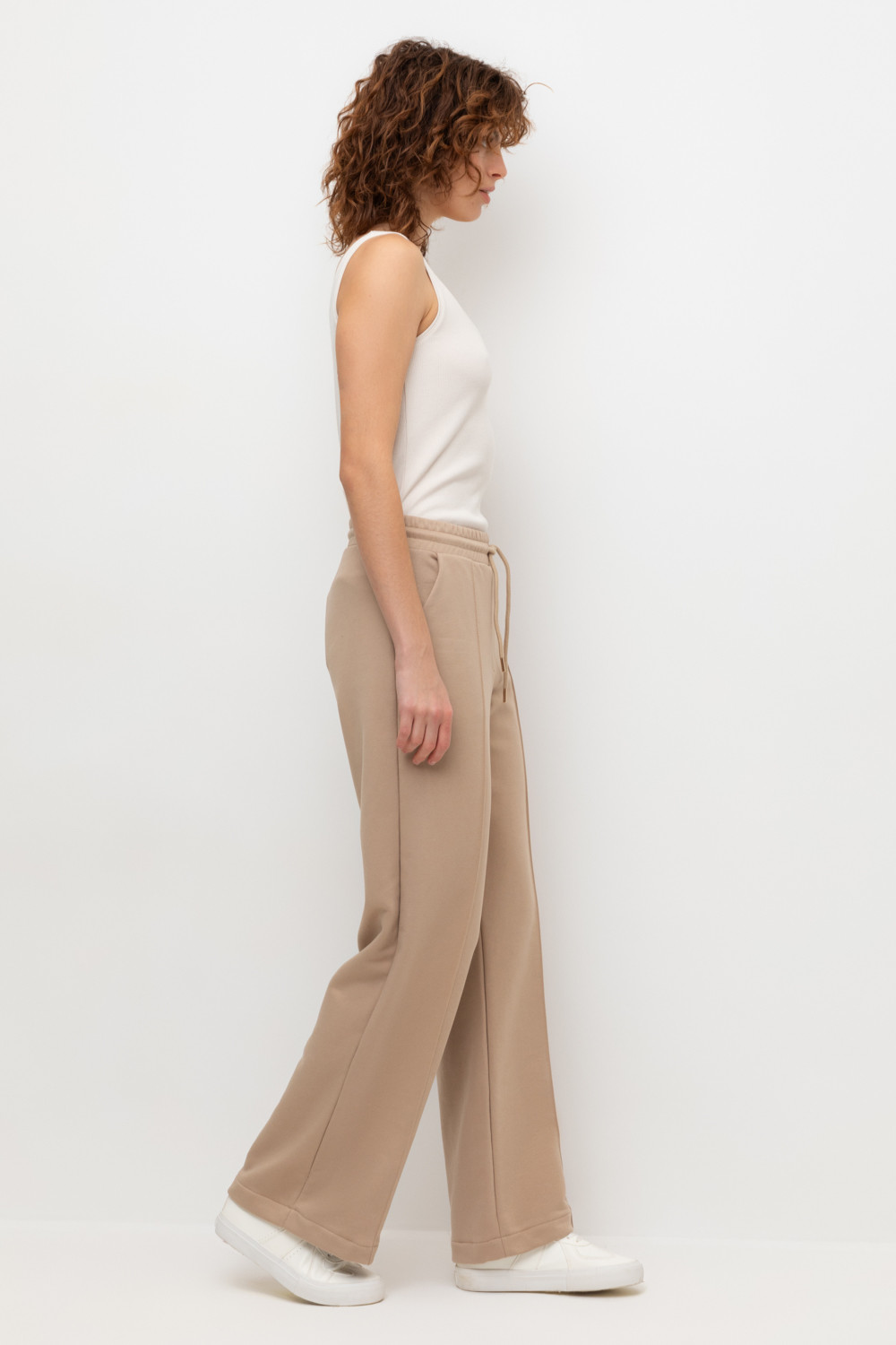 Брюки прямого кроя со стрелкой и боковыми карманами из мягкого петельчатого футера. В составе 80% натурального хлопка и 20% полиэстера, при этом полиэстер ввязан внутрь по особой технологии и не соприкасается с кожей. Пояс со шнурком позволяет регулировать посадку. Идеальный и комфортный вариант на каждый день.