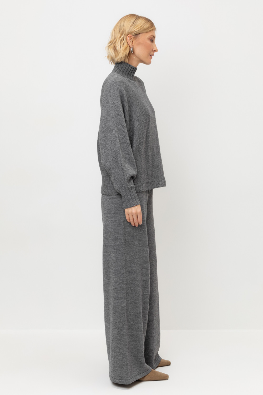 Удобные свободные вязаные брюки выполнены из мягкой полушерстяной пряжи. Шерсть в составе сохраняет тепло, а благодаря волокнам акрила изделие мягкое и дольше сохраняет форму.