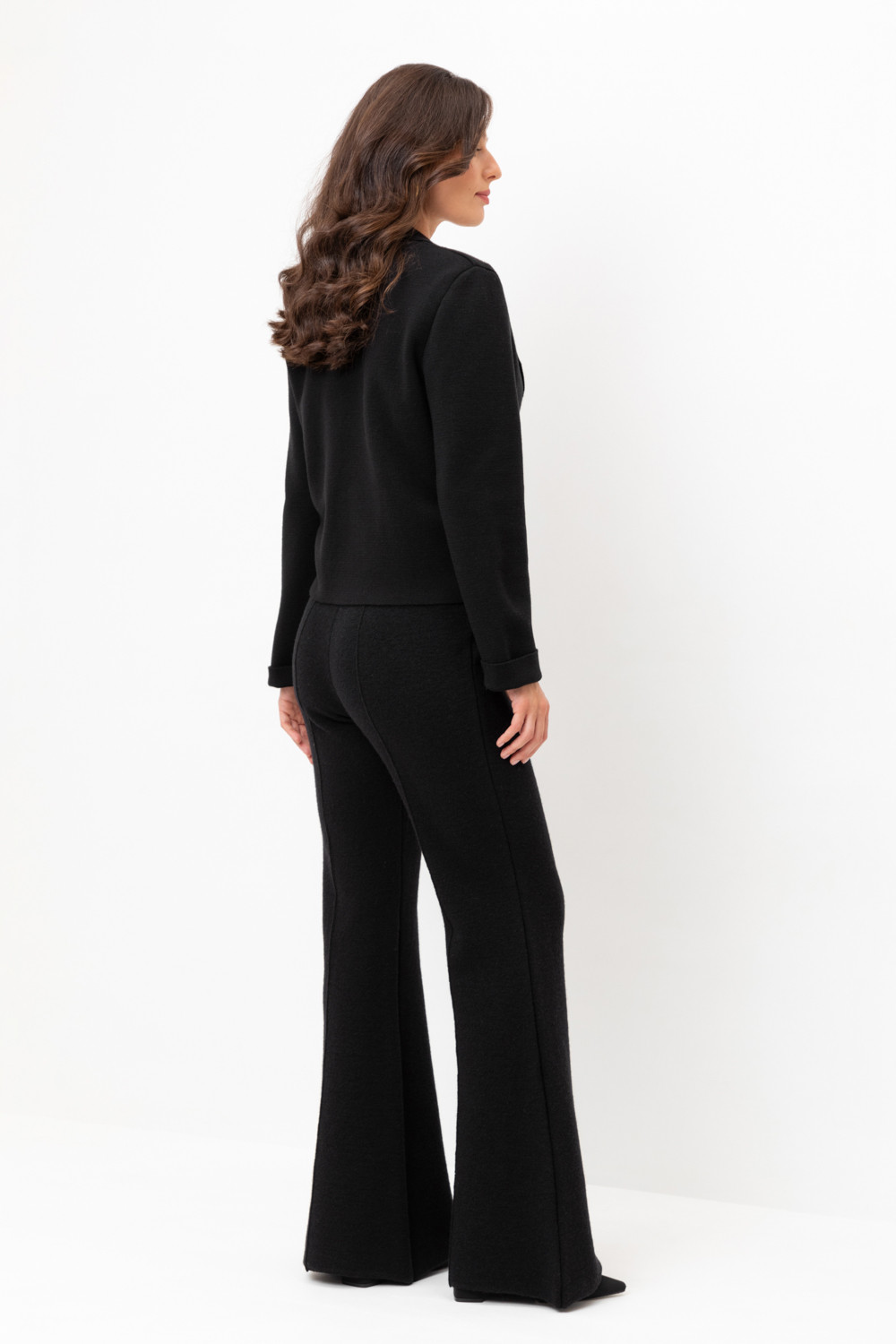 Удобные вязаные брюки со стрелкой из 100% шерсти. Шерсть в составе хорошо сохраняет тепло. Пояс на резинке.