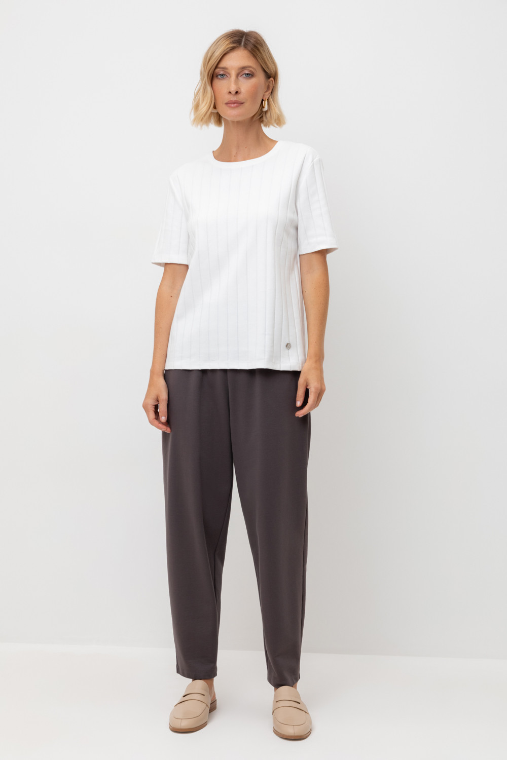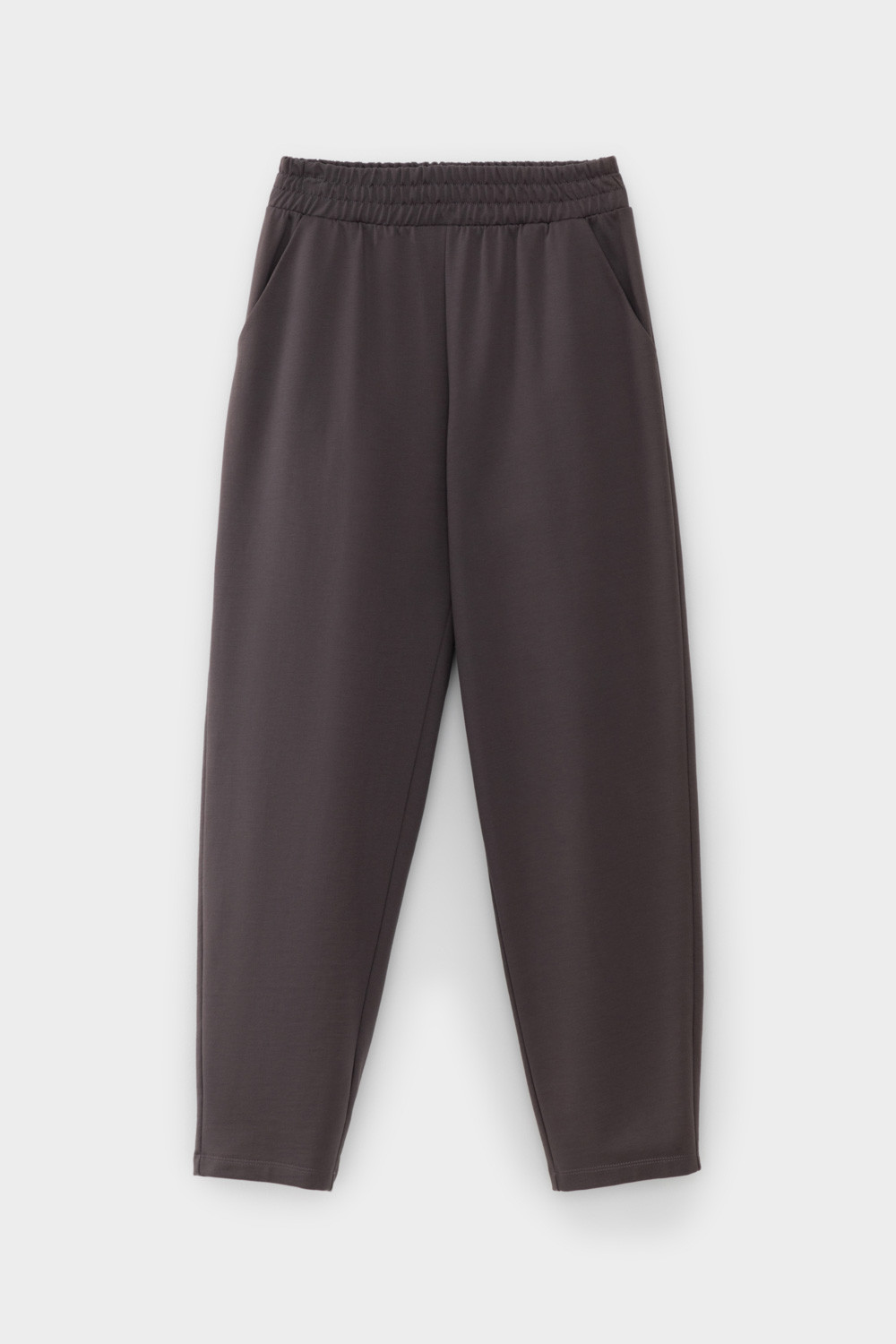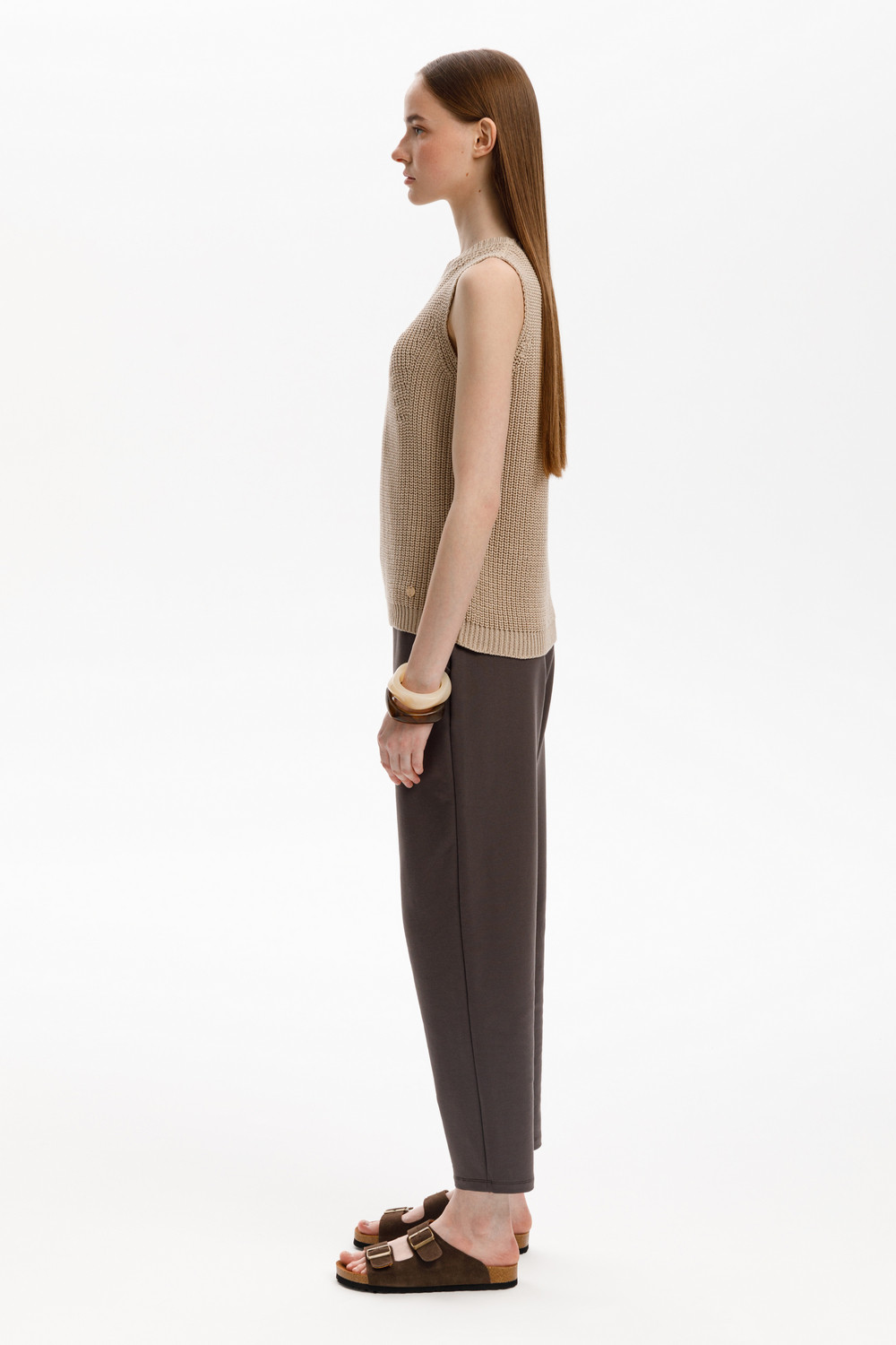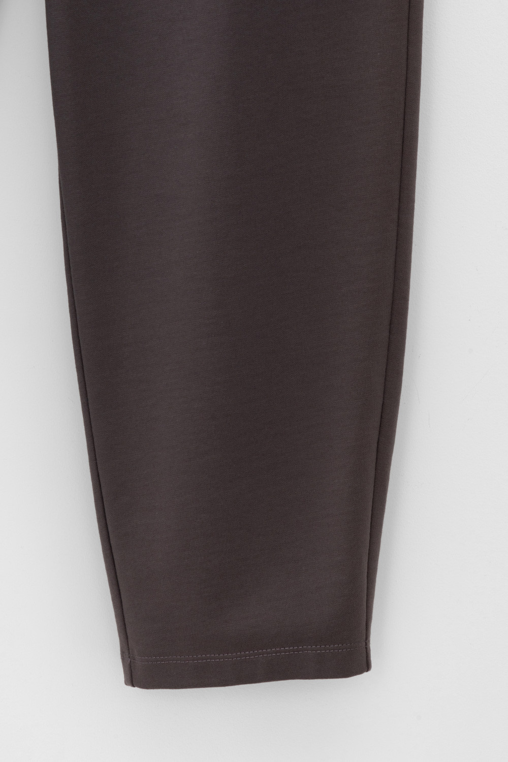 Брюки из мягкого петельчатого футера. Эластичный пояс, наличие боковых карманов, зауженный к низу силуэт делают изделие более удобным и повседневным.