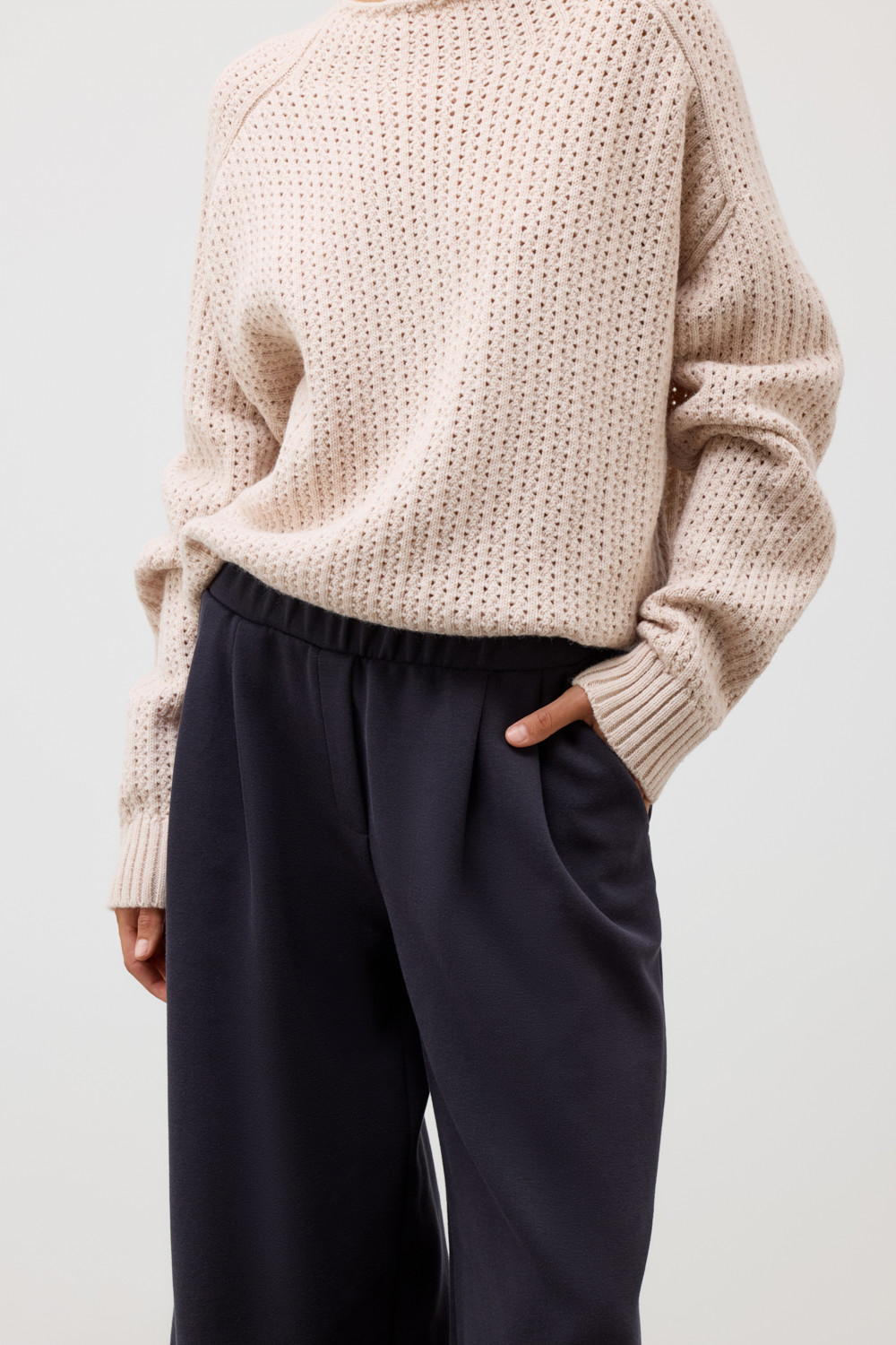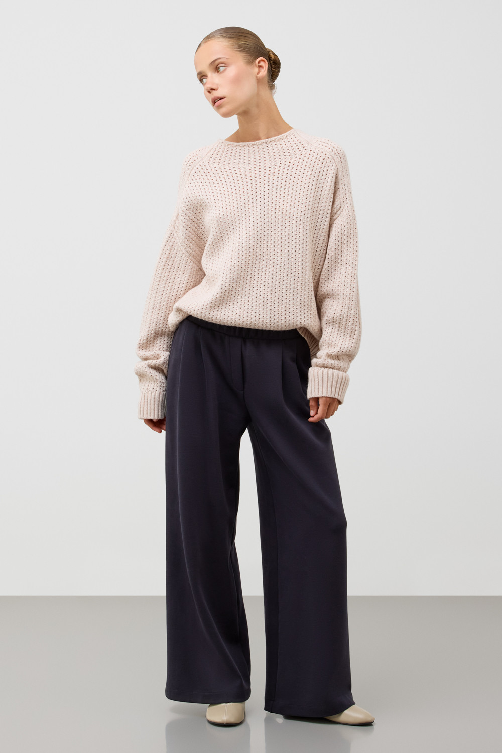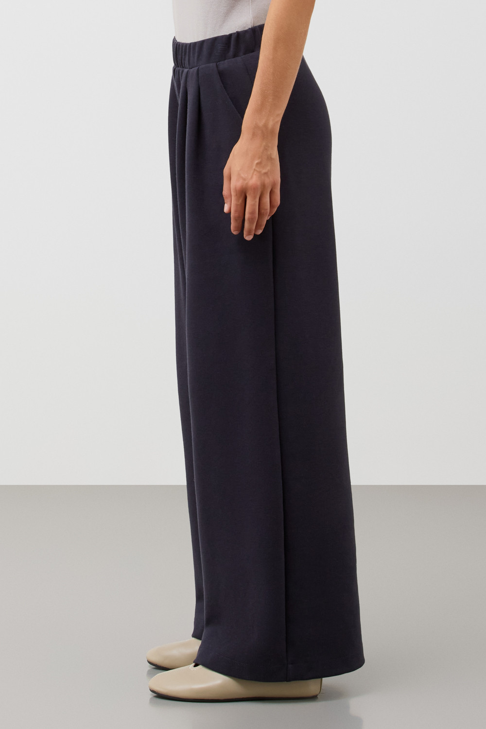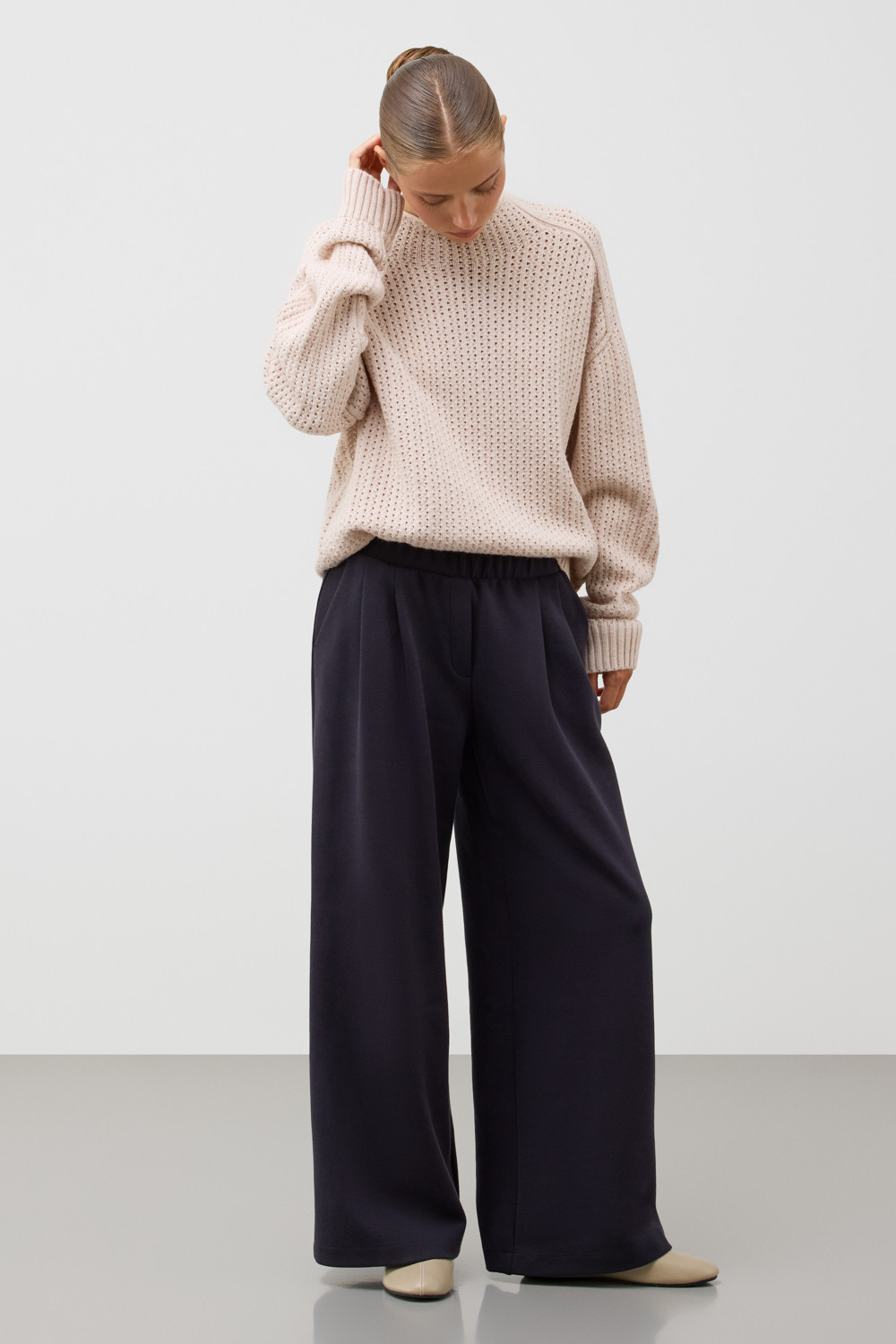Брюки с защипами изготовлены из особого сочетания хлопка и полиэстера, что обеспечивает изделию мягкость, хорошую воздухопроницаемость и высокую прочность. Благодаря инновационному двойному плетению изделие отлично держит форму. Обработка ткани с использованием силикона добавляет ей легкости и дает приятную на ощупь шелковистую текстуру.