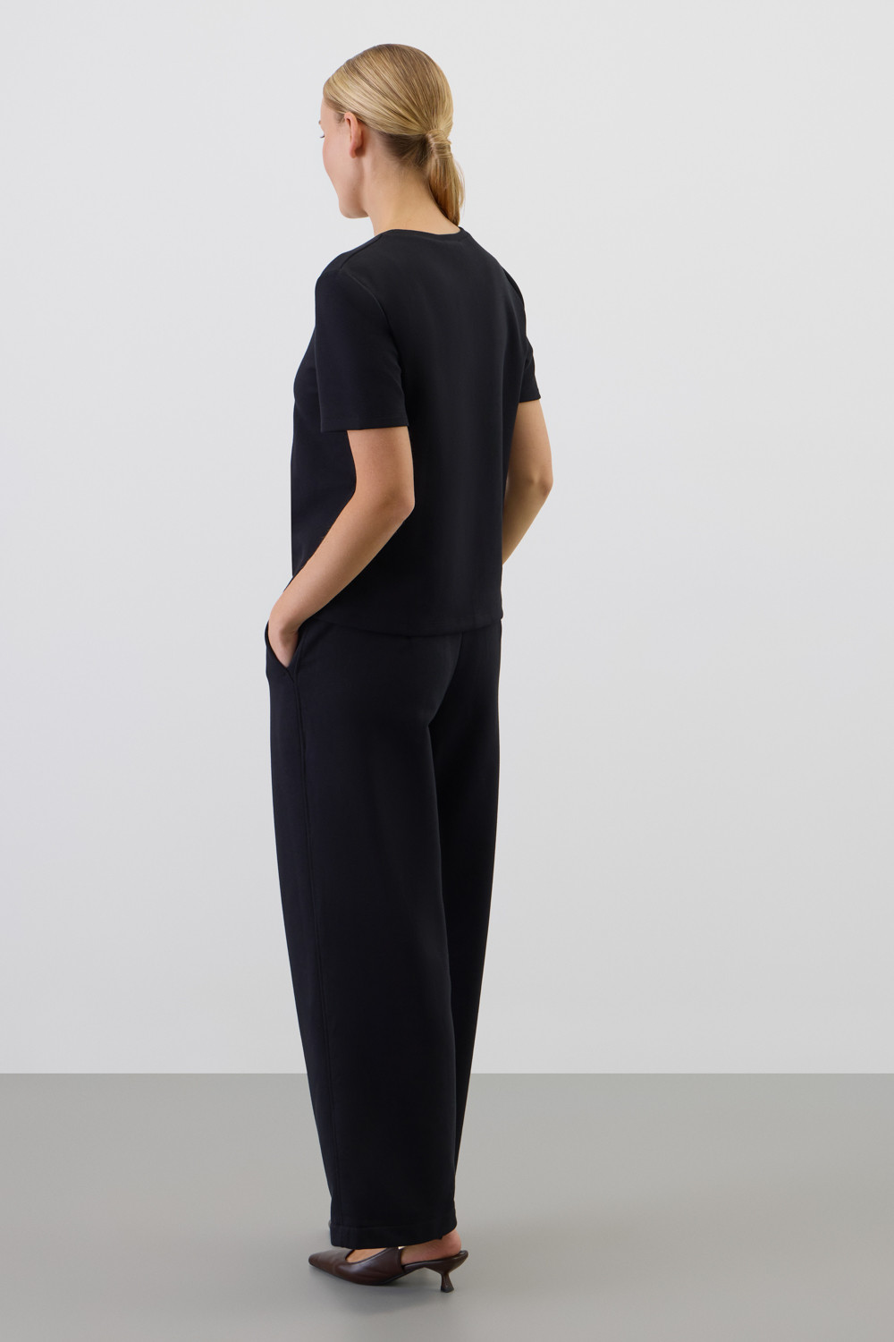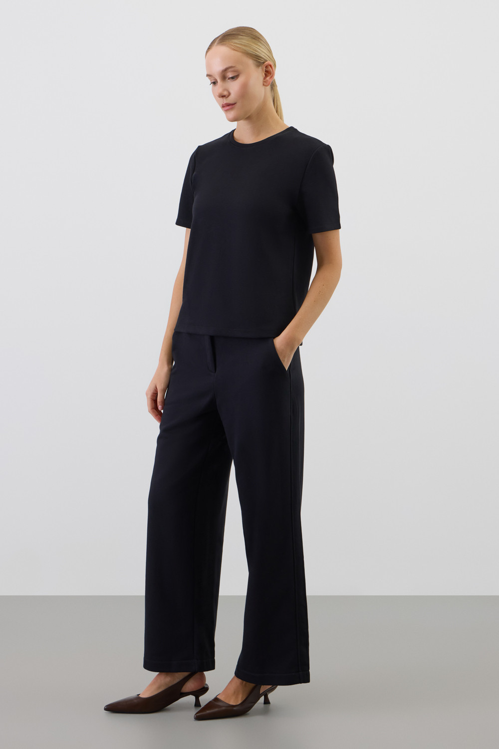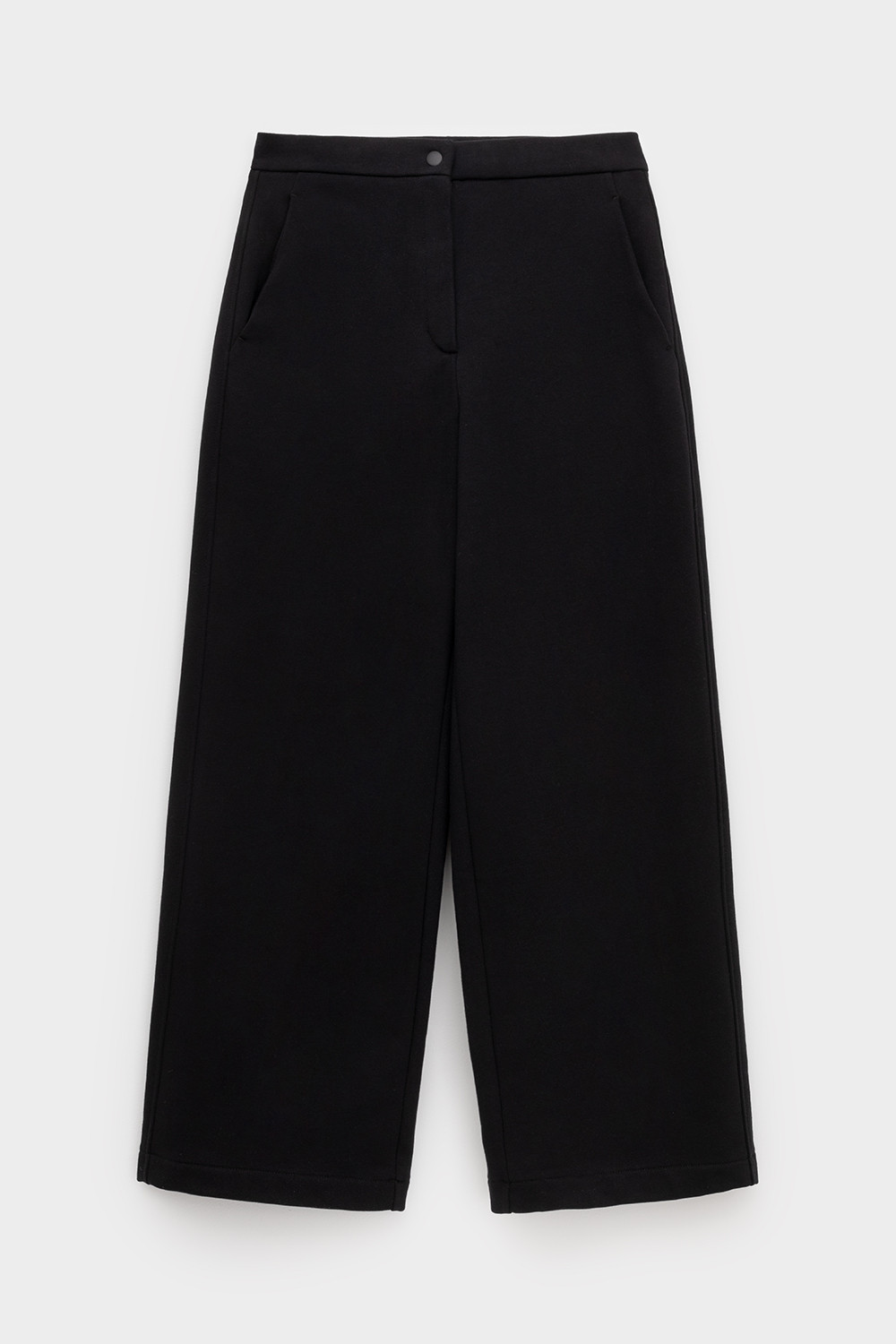 Брюки, выполненные из петельчатого футера трехнитки, отличаются особой текстурой и комфортом. Прямой крой подчеркивает силуэт, создавая классический образ. Боковые карманы придают изделию функциональность.