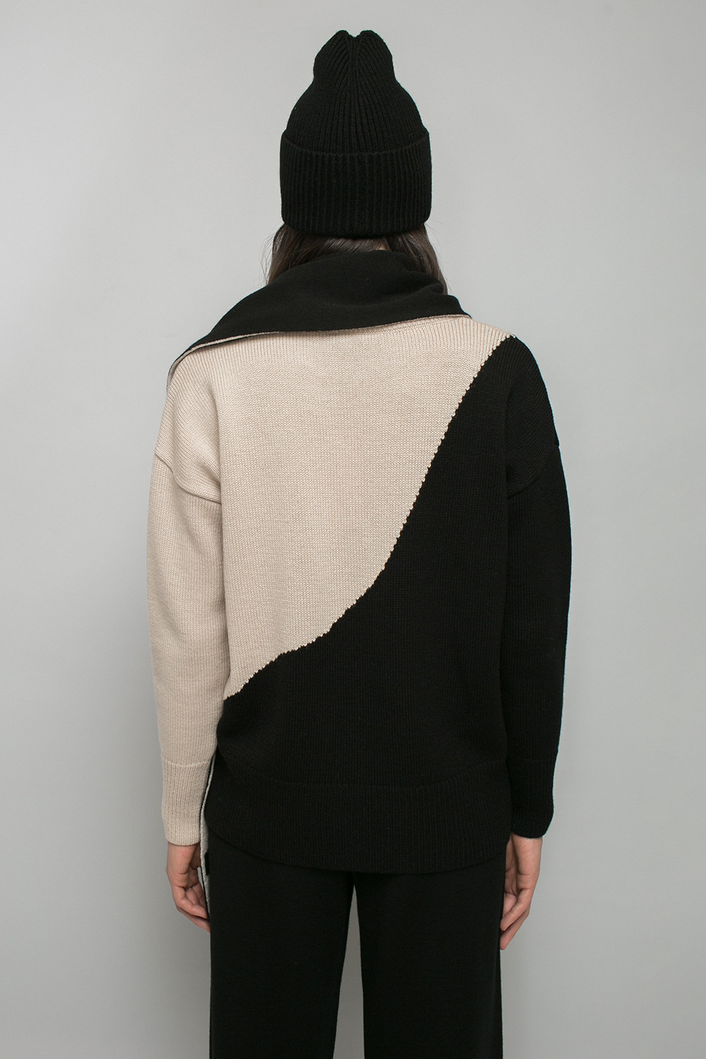 Двусторонний шарф из полушерсти с вывязанным рисунком в виде надписи WIND. Длина - 200 см, ширина - 40 см. Связан гладью. Украшен фирменной этикеткой на внутренней стороне.