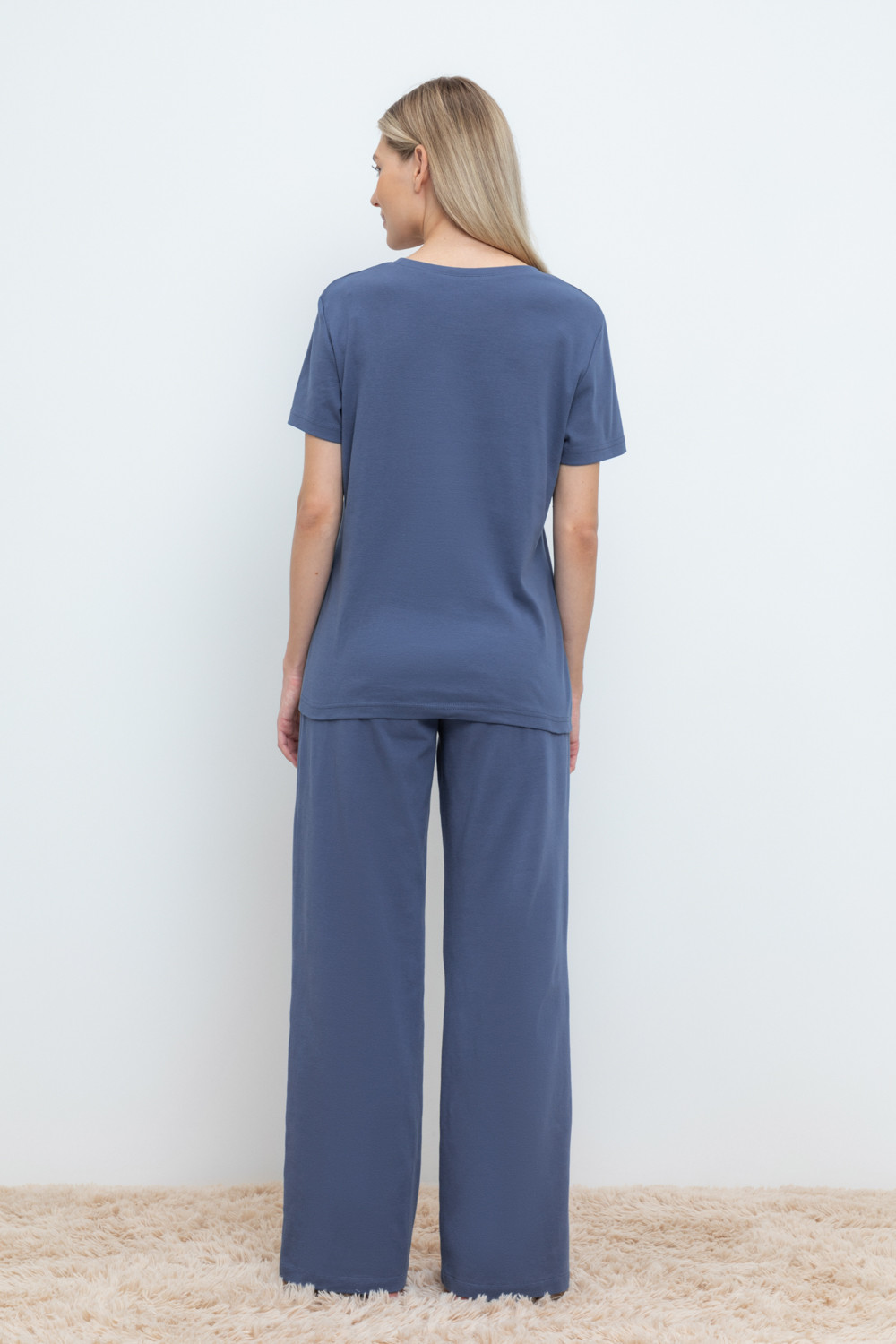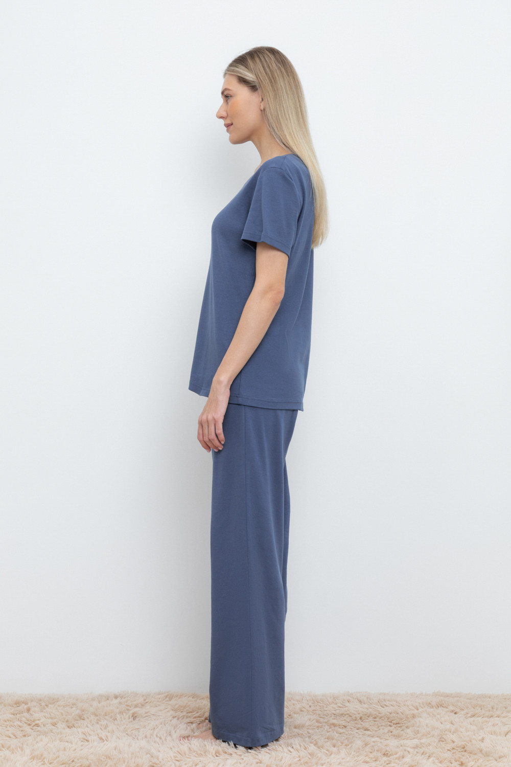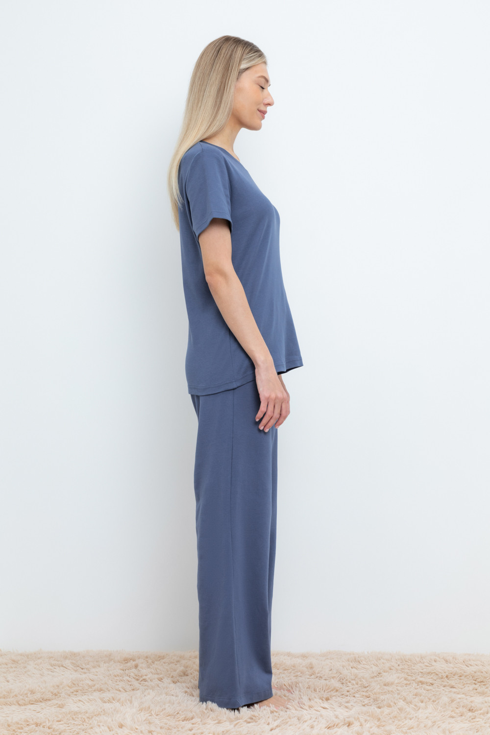 Лёгкие комфортные брюки из трикотажа с добавлением лайкры. Модель с поясом на резинке. Низ изделия обработан плоскими швами. Гладкий материал приятен к телу, не теряет форму и позволяет коже дышать.