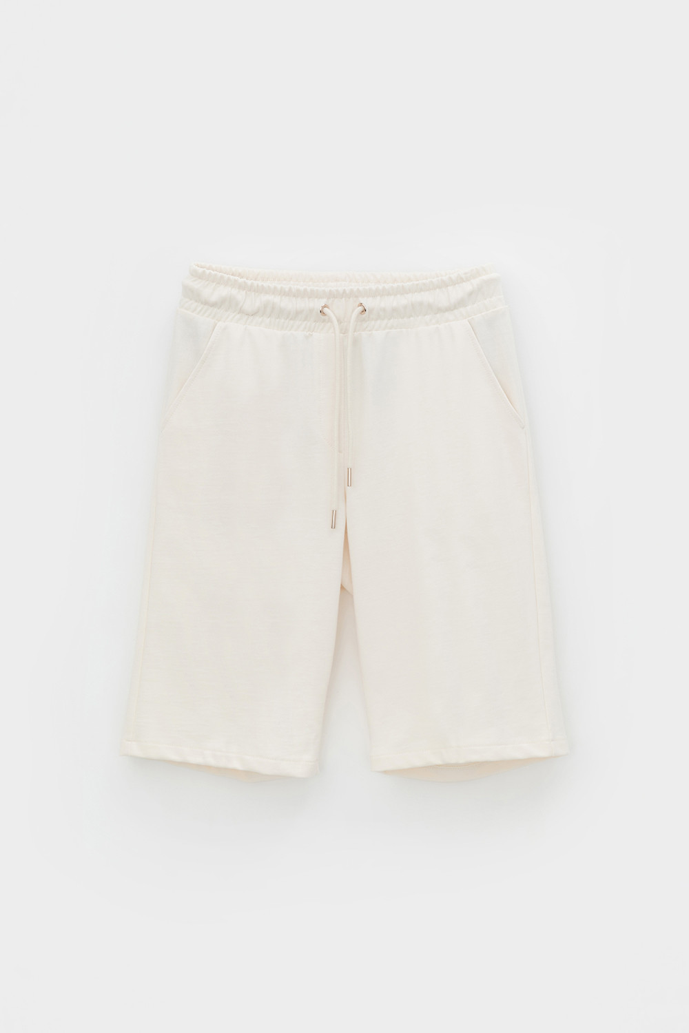 Удлиненные трикотажные шорты прямого кроя с боковыми карманами из петельчатого футера, произведенного из высококачественного гребенного хлопка.
