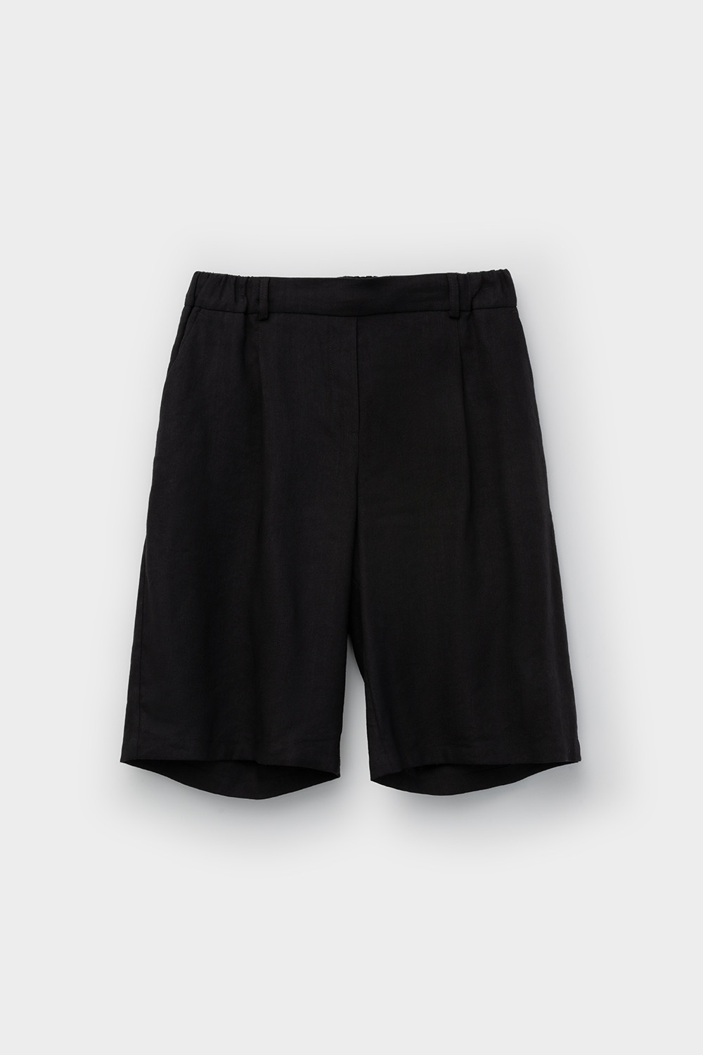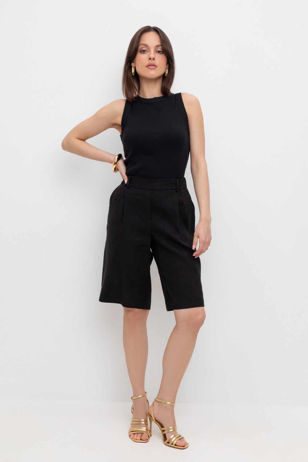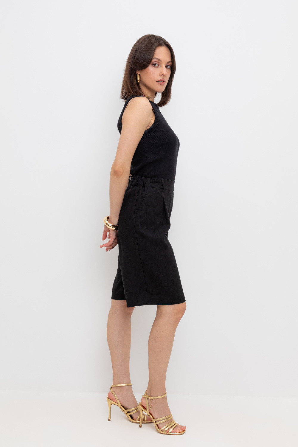 Удлиненные женские шорты из смесового льна с удобными боковыми карманами и резинкой по поясу