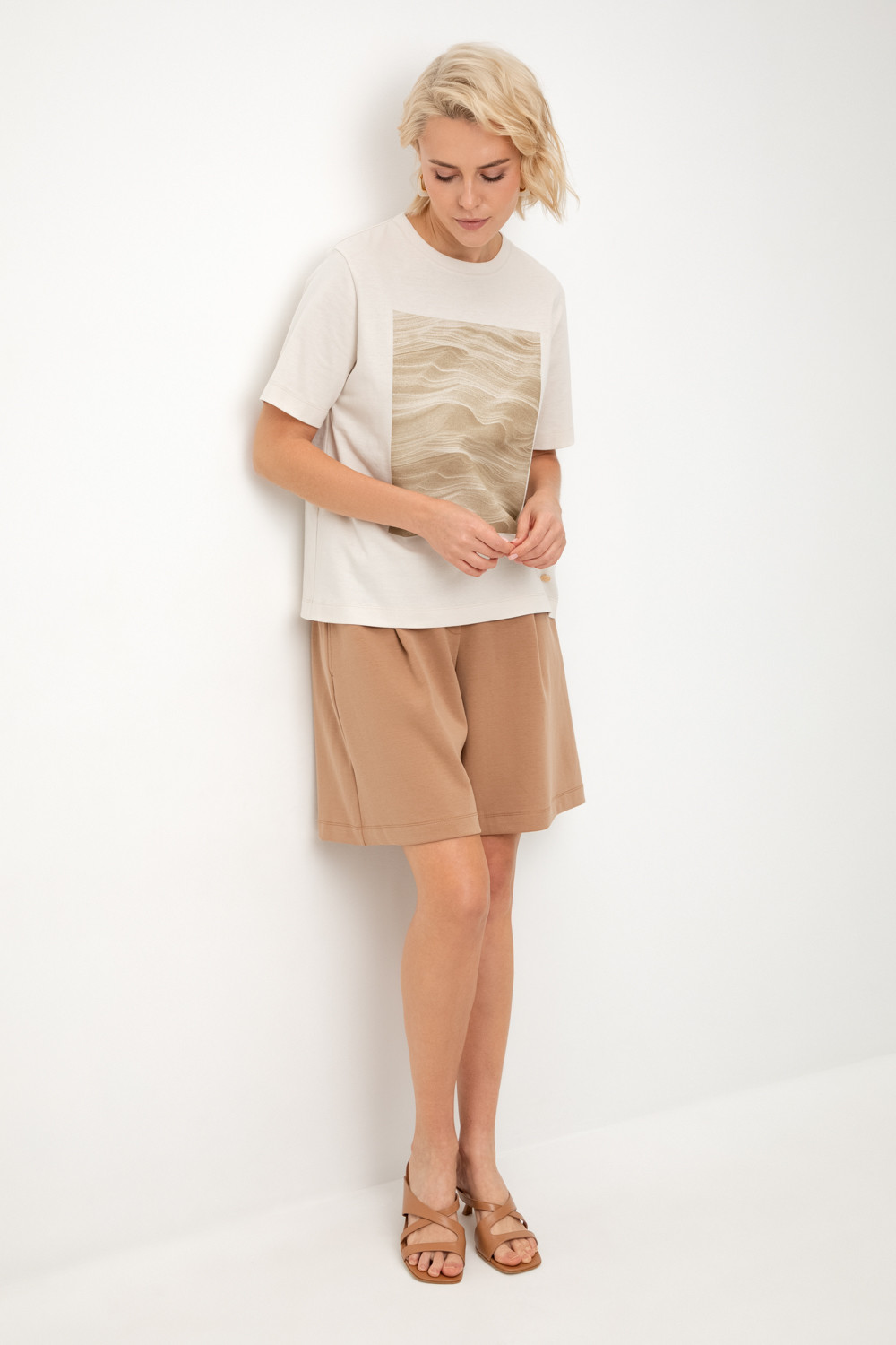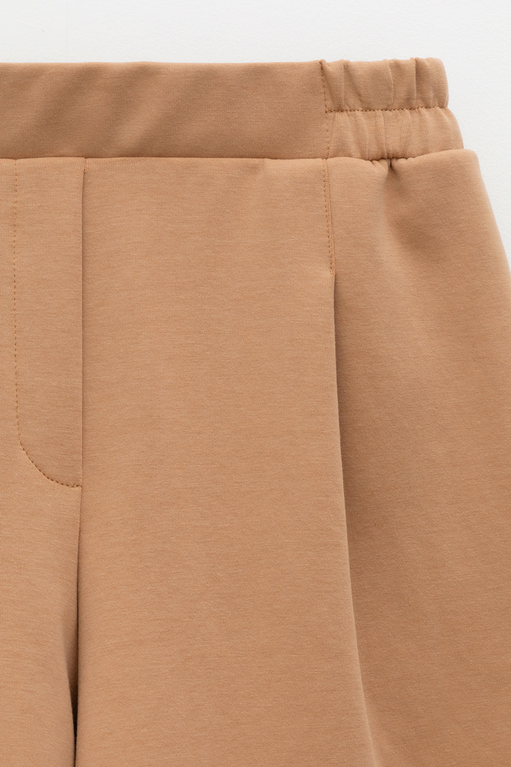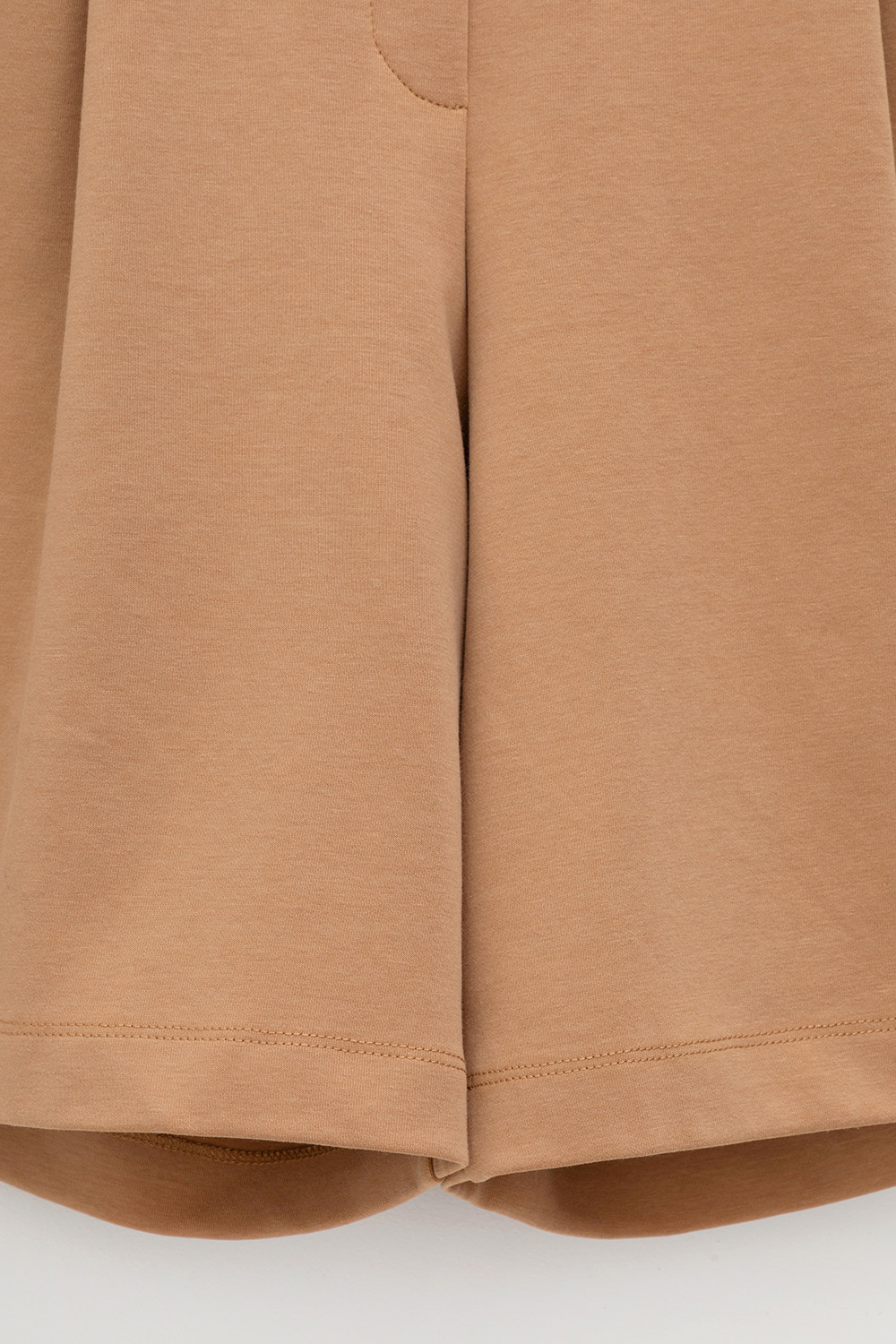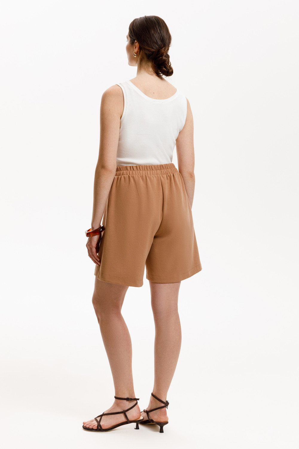 Шорты с защипами и широким трикотажным поясом— это идеальное сочетание элегантности и комфорта. Боковые карманы добавляют функциональности изделию. Изготовлены из премиального трикотажа DOUBLE FACE с добавлением спандекса.