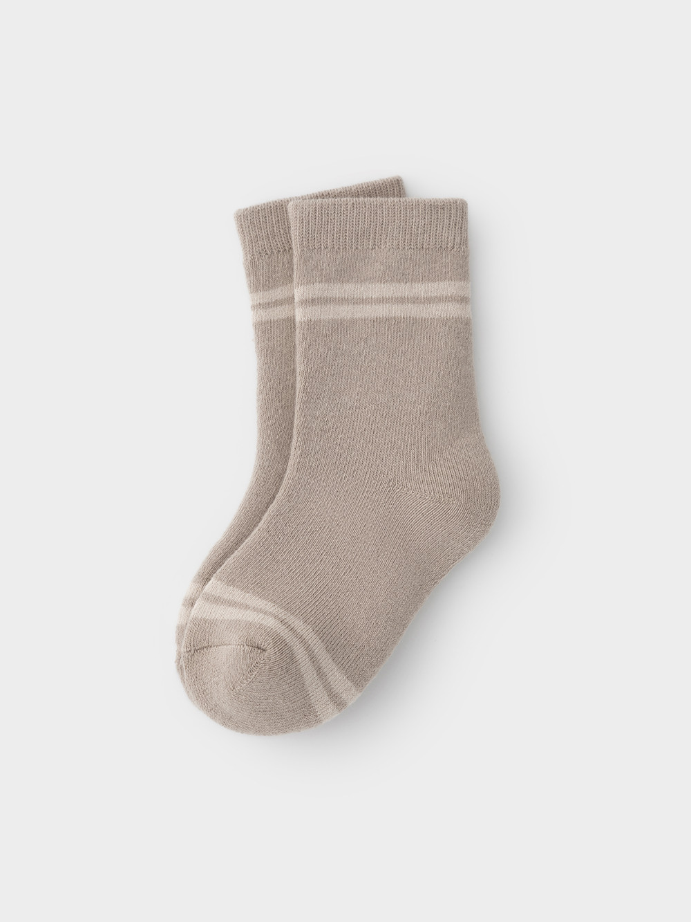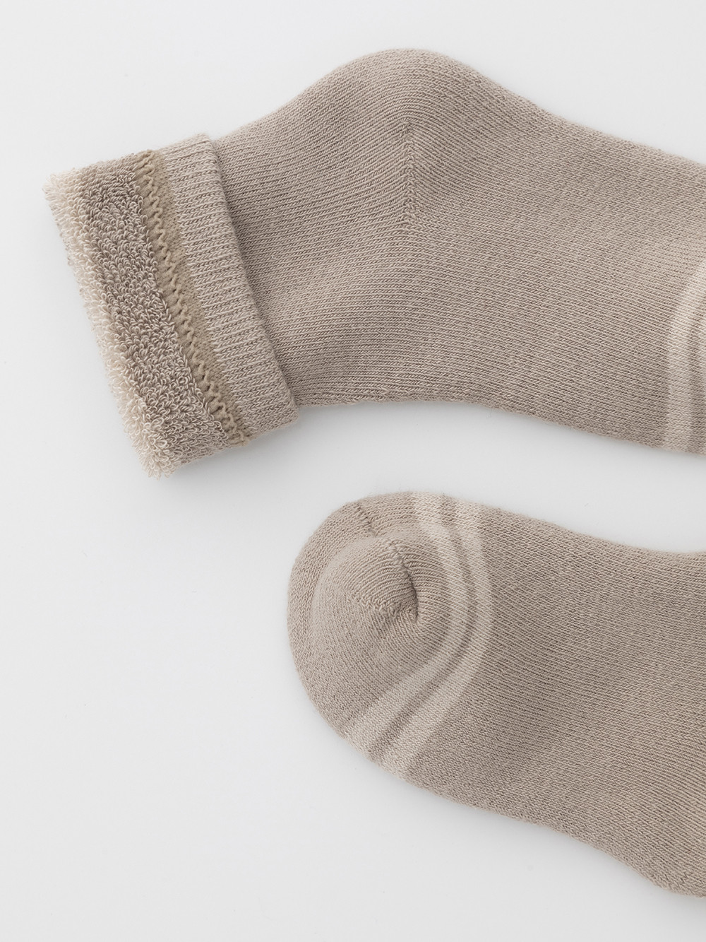 Носки махровые с формованной пяткой и эластичной резинкой по краю. Украшены рисунком в полоску. Изделие сохраняет форму и стойкий цвет после многочисленных стирок.