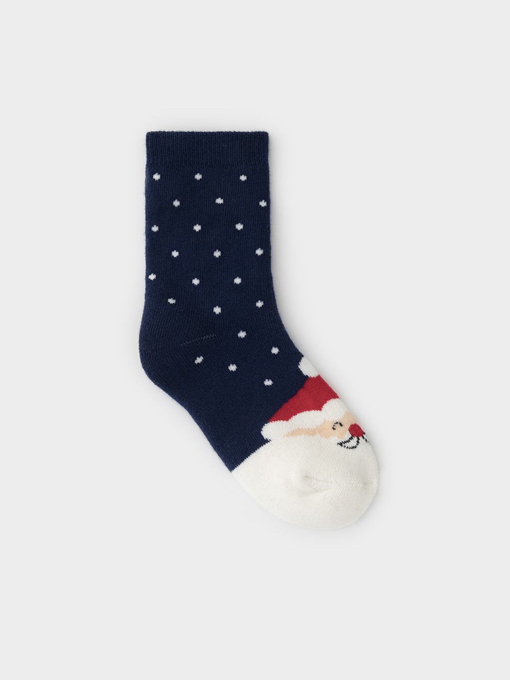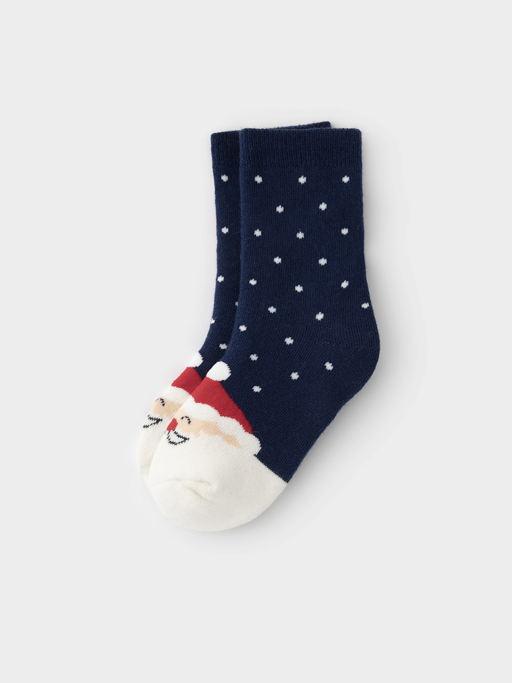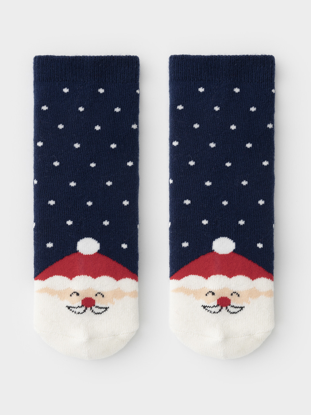 Тёплые махровые носки с формованной пяткой и эластичной резинкой по краю. Украшены рисунком. Отлично подойдут для создания праздничных образов или как дополнение к подарку на Новый год и Рождество. Изделие сохраняет форму и стойкий цвет после многочисленных стирок.