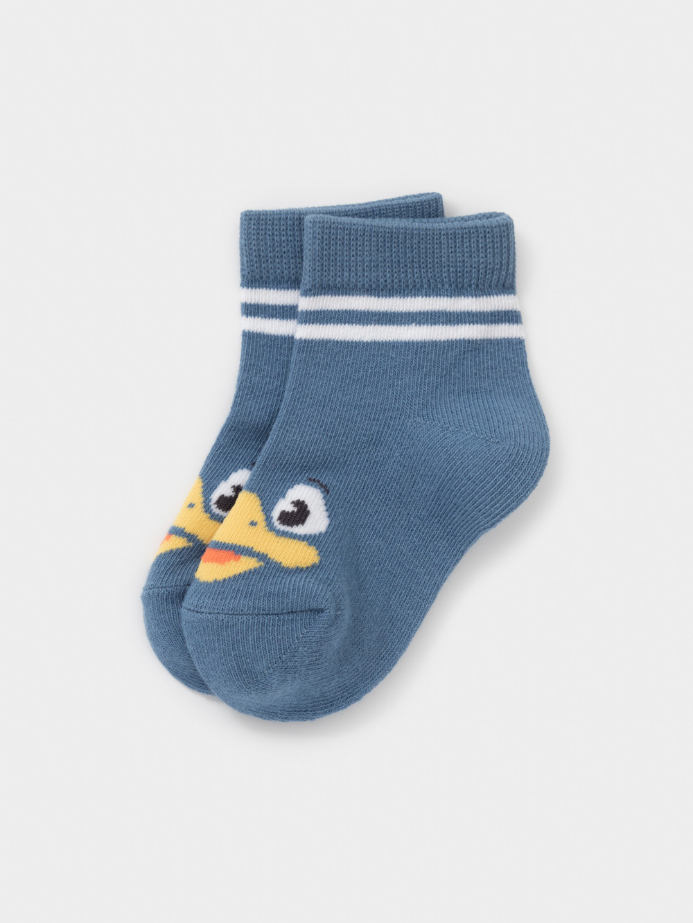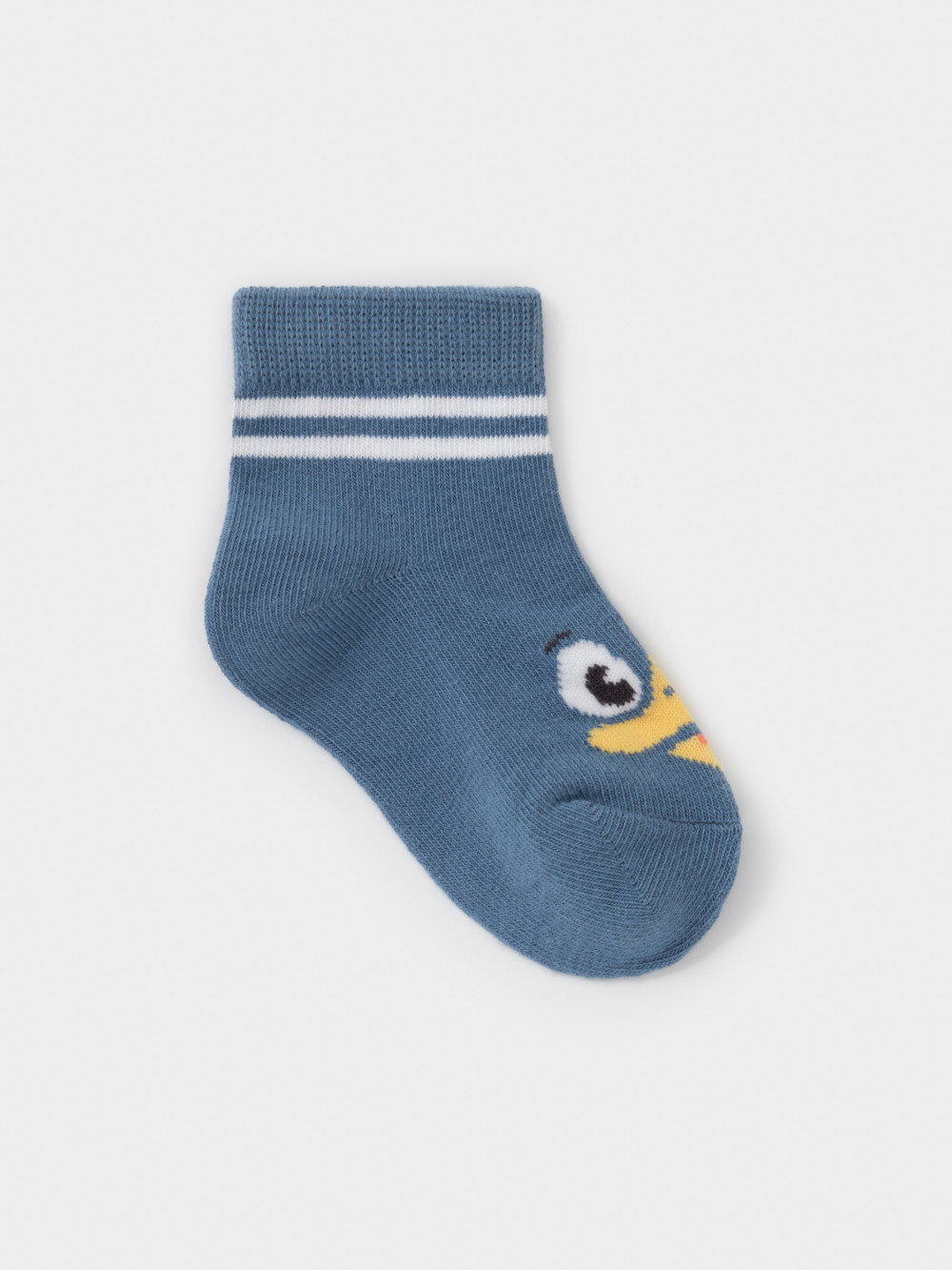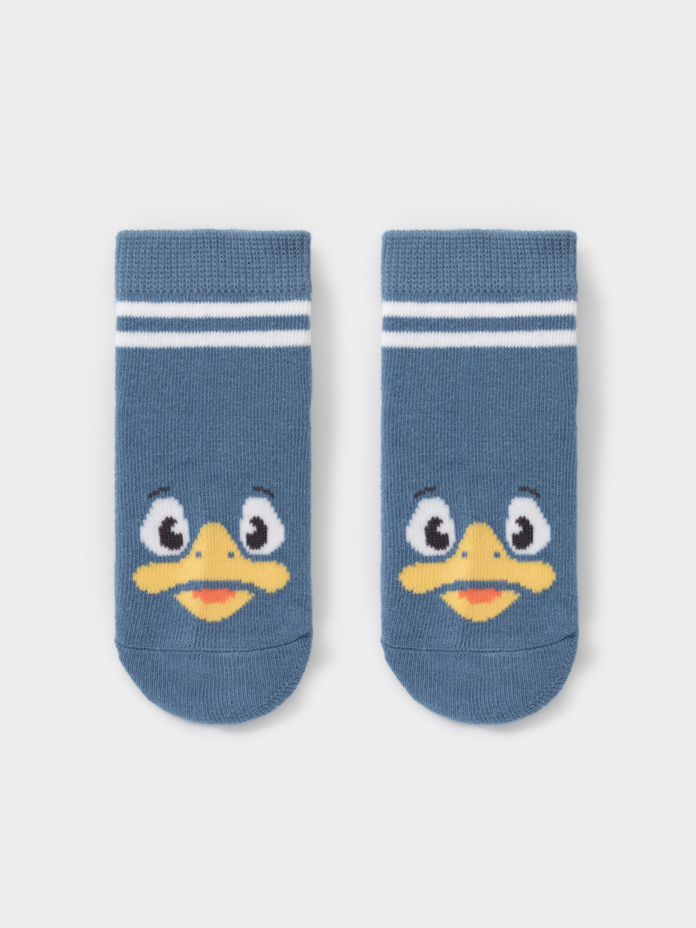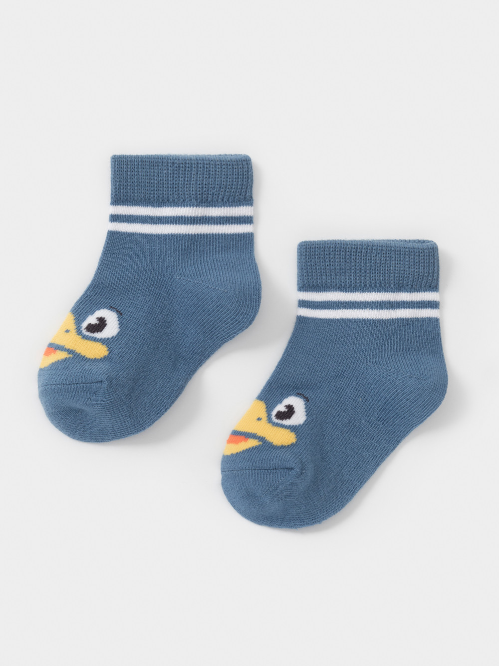 Носки короткие детские с формованной пяткой и эластичной резинкой по краю. Украшены рисунком. Изделие сохраняет форму и стойкий цвет после многочисленных стирок.