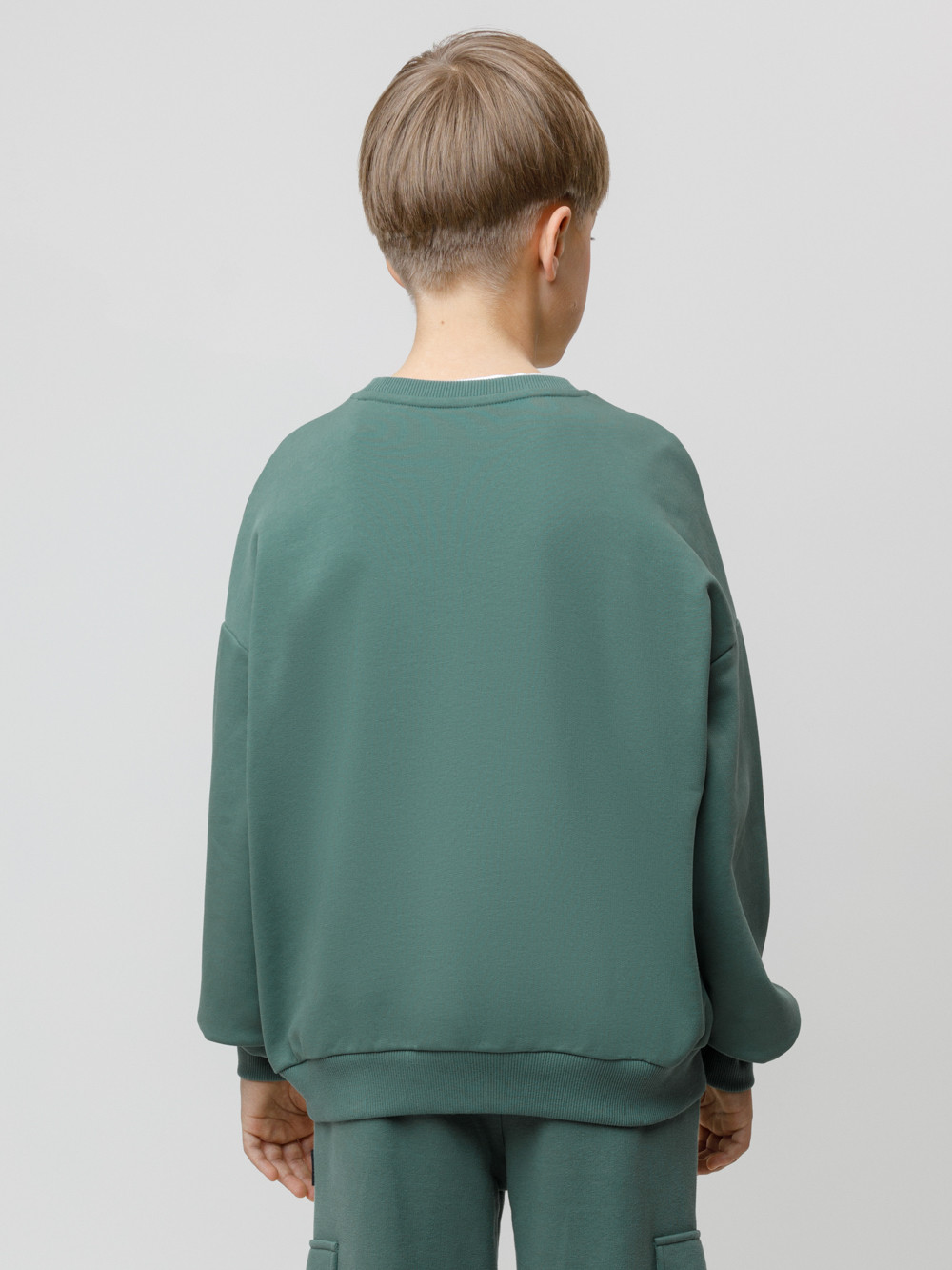 Свитшот для мальчика из высококачественного петельчатого футера. В составе 80% натурального хлопка и 20% полиэстера, при этом полиэстер ввязан внутрь по особой технологии и не соприкасается с кожей.  Обтачка горловины, манжеты и пояс выполнены из эластичного полотна. Оригинальный принт нанесён с помощью стойких текстильных гипоаллергенных красителей.
