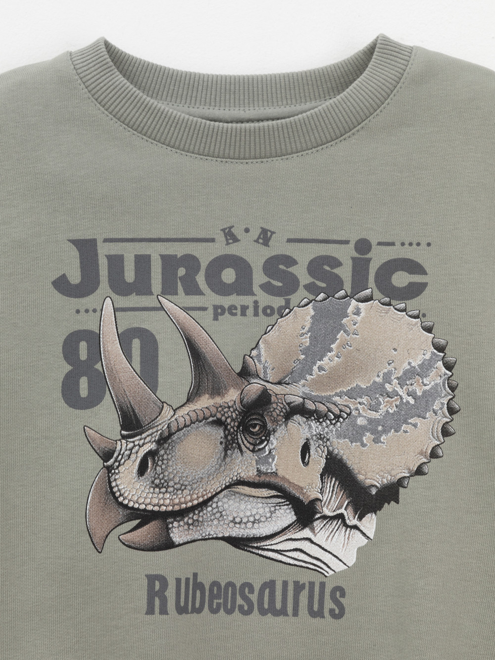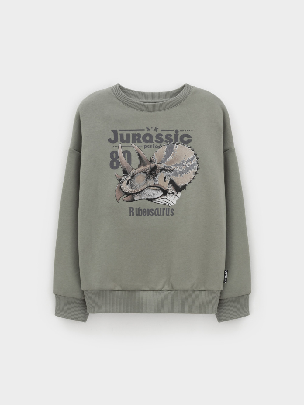 Свитшот для мальчика из высококачественного петельчатого футера. В составе 80% натурального хлопка и 20% полиэстера, при этом полиэстер ввязан внутрь по особой технологии и не соприкасается с кожей. Обтачка горловины, манжеты и пояс выполнены из эластичного полотна. Для удобства одевания имеется застёжка на кнопки в размерах 92 и 98. Оригинальный принт нанесён с помощью стойких текстильных гипоаллергенных красителей.