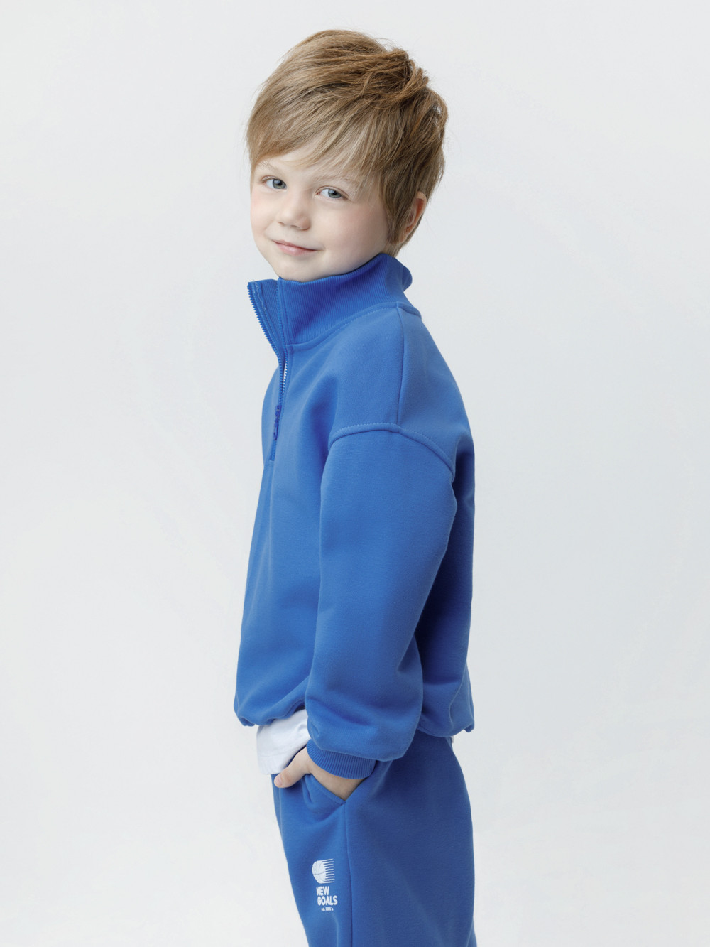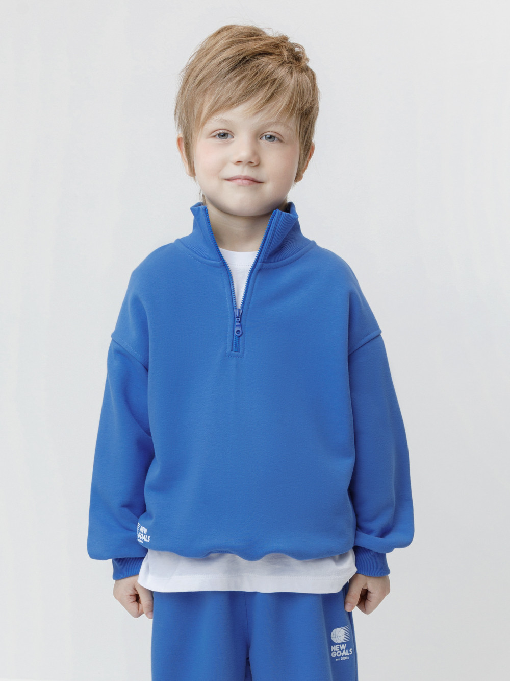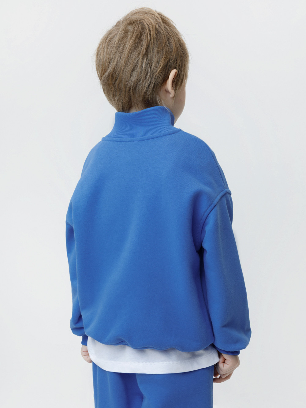 Джемпер из мягкого петельчатого трикотажа для мальчика. У изделия эластичные горловина, манжеты и пояс. Застёгивается на короткую молнию. Оригинальный принт выполнен из стойких текстильных гипоаллергенных красителей. Джемпер сохраняет цвет и форму после многократных стирок. Все трикотажные полотна производятся в соответствии с нормами швейцарского сертификата ЭкоТекс.