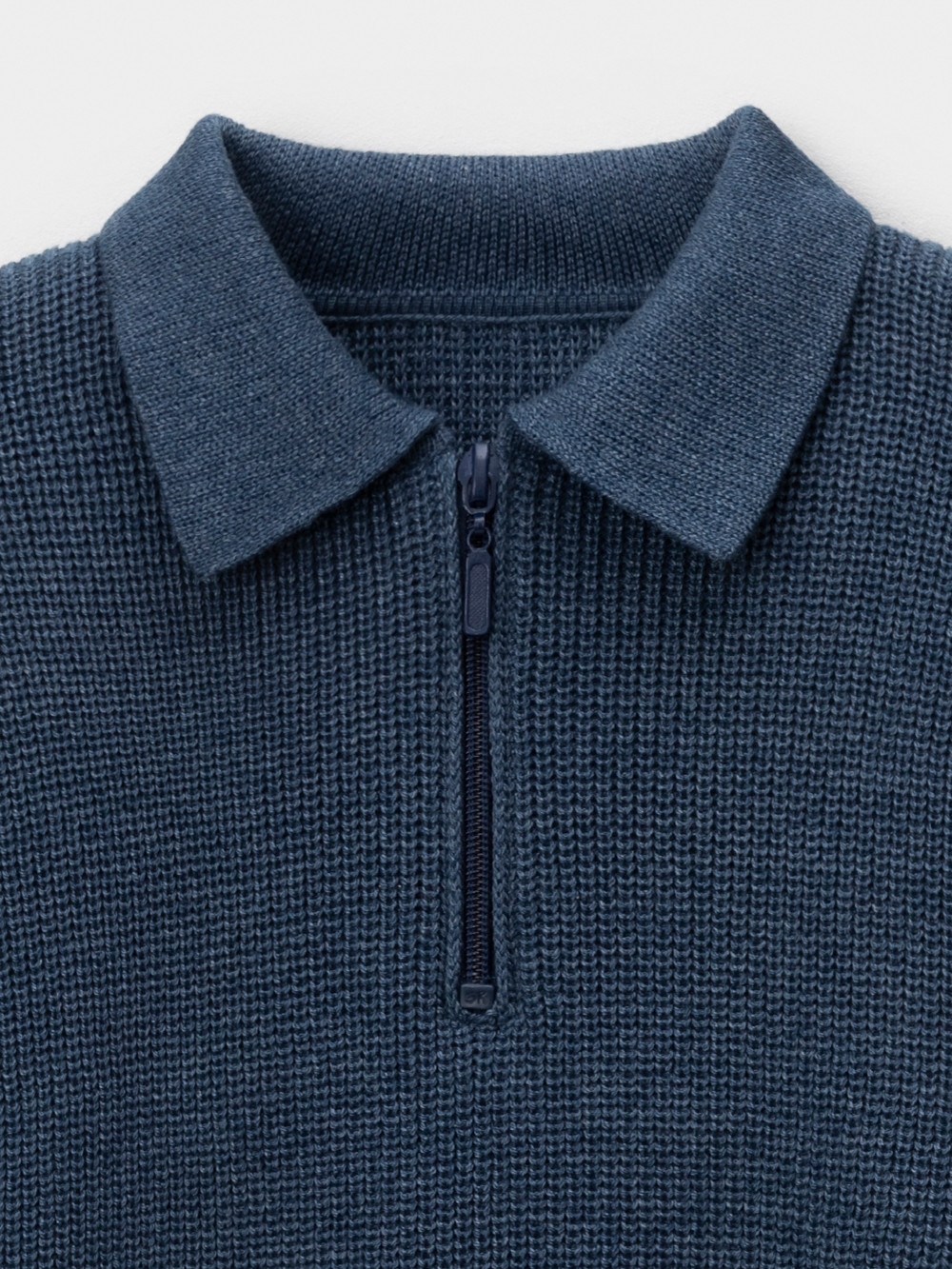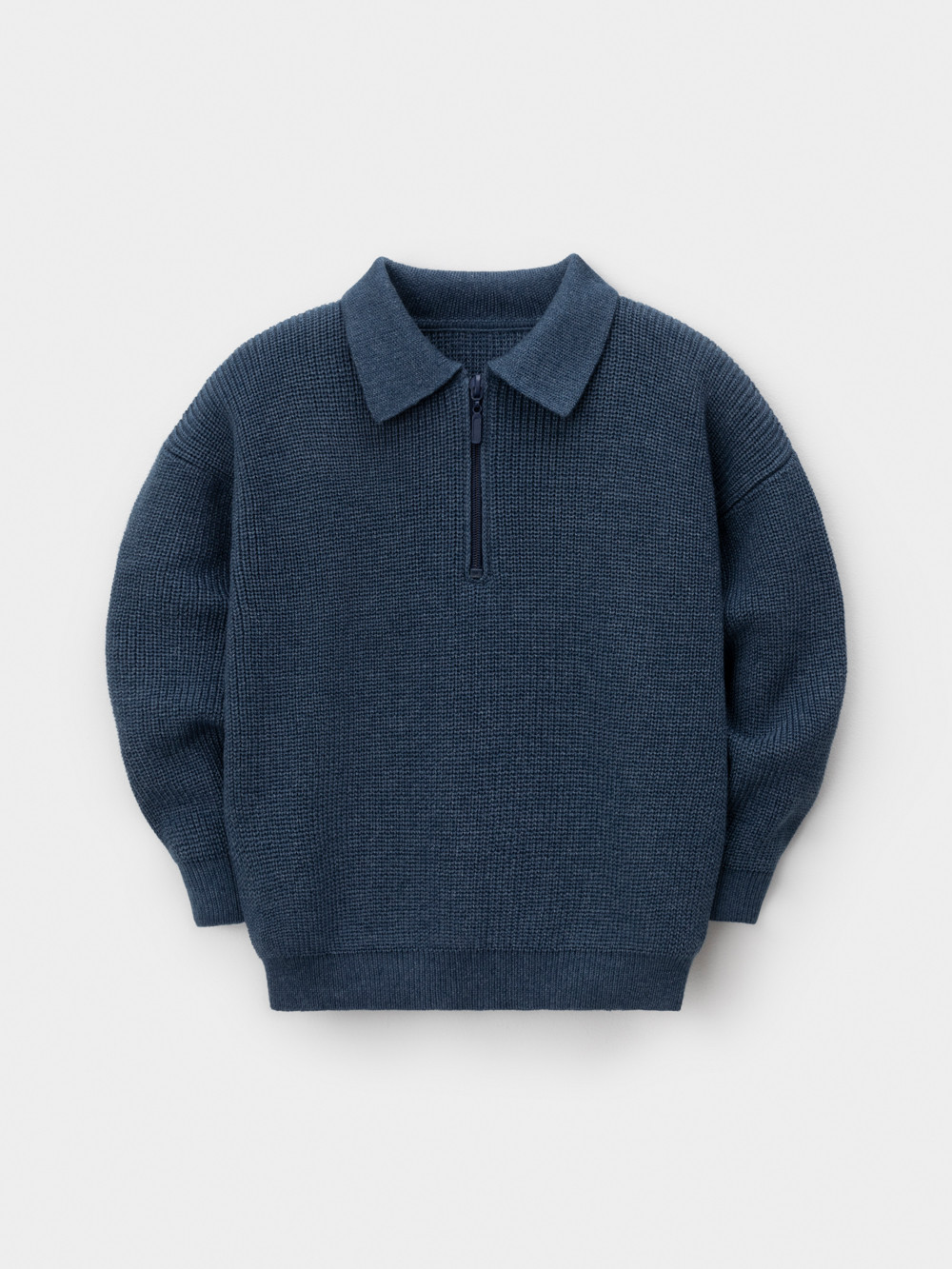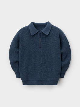 Вязаный джемпер-поло с воротничком и застёжкой на короткую молнию. Изготовлен из мягкой хлопковой пряжи с добавлением акрила. Длинные рукава с манжетами. Внизу эластичный пояс. Изделие сохраняет форму и стойкий цвет после многочисленных стирок.