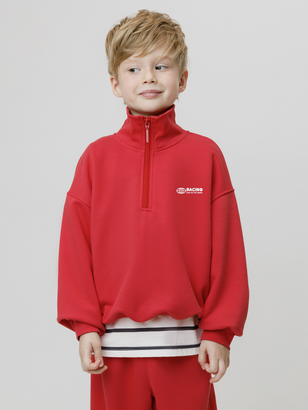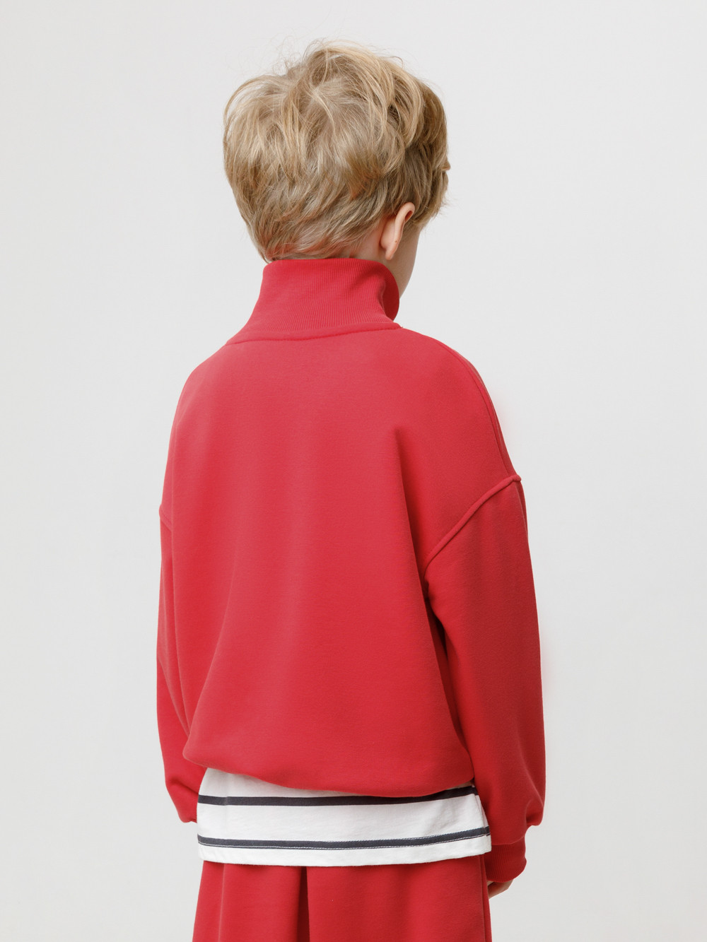 Джемпер из мягкого петельчатого трикотажа для мальчика. У изделия эластичные горловина, манжеты и пояс. Застёгивается на короткую молнию. Оригинальный принт выполнен из стойких текстильных гипоаллергенных красителей. Джемпер сохраняет цвет и форму после многократных стирок. Все трикотажные полотна производятся в соответствии с нормами швейцарского сертификата ЭкоТекс.