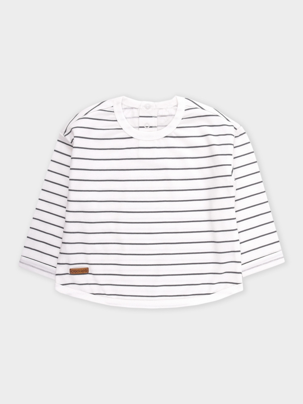 Лонгслив для мальчика из высококачественного трикотажного полотна. Застёгивается на кнопки на спинке. Изделие сохраняет цвет и форму после многократных стирок. Все трикотажные полотна производятся в соответствии с нормами швейцарского сертификата ЭкоТекс.