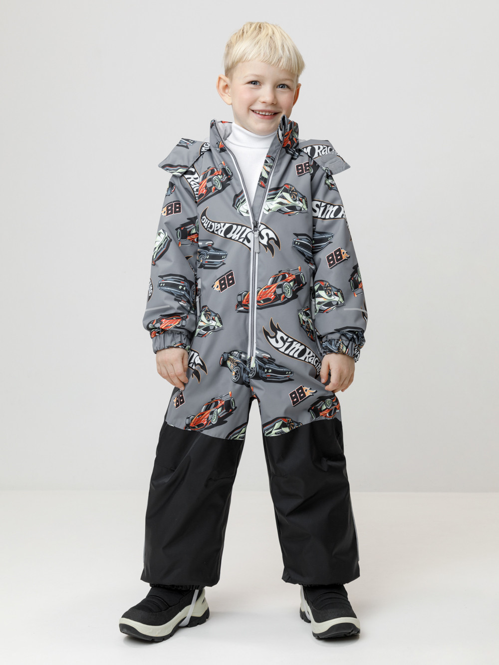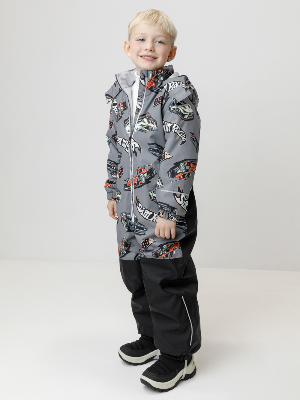 Демисезонный комбинезон для мальчика с утеплителем SEE®, 120 г/м2. Выполнен из мембранной ткани с дополнительной тефлоновой обработкой. Данный вид обработки предохраняет изделие от загрязнения и лучше отводит влагу. Подклад из 100% полиэстера. Для удобного одевания комбинезон застёгивается на удлинённую молнию с защитой подбородка. Капюшон не снимается, по верхнему краю есть эластичная вставка. По низу рукавов и брючин, а также на спинке изделия предусмотрены эластичные резинки для лучшего прилегания. Для фиксации комбинезона используются съёмные силиконовые штрипки. Во всех изделиях верхнего ассортимента для безопасности ребёнка предусмотрены светоотражающие элементы.