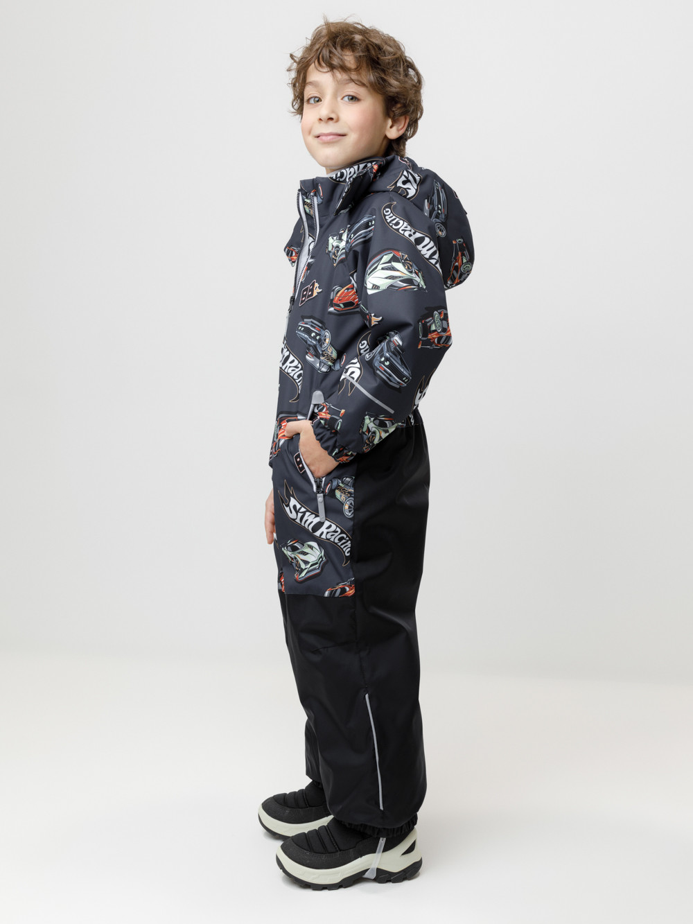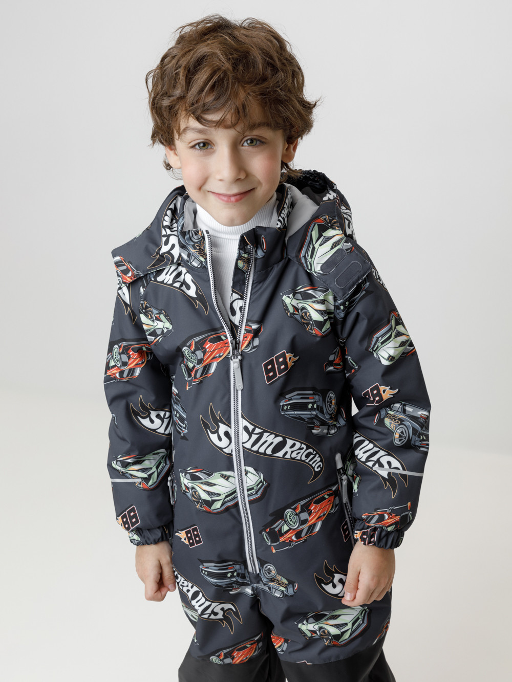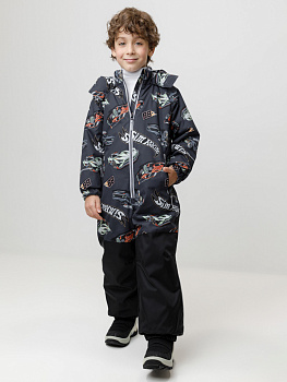 Демисезонный комбинезон для мальчика с утеплителем SEE, 120 г/м2. Выполнен из мембранной ткани с дополнительной тефлоновой обработкой. Данный вид обработки предохраняет изделие от загрязнения и лучше отводит влагу. Подклад из 100% полиэстера. Для удобного одевания комбинезон застёгивается на удлинённую молнию с защитой подбородка. Капюшон не снимается, по верхнему краю есть эластичная вставка. По низу рукавов и брючин, а также на спинке изделия предусмотрены эластичные резинки для лучшего прилегания. Для фиксации комбинезона используются съёмные силиконовые штрипки. Во всех изделиях верхнего ассортимента для безопасности ребёнка предусмотрены светоотражающие элементы.