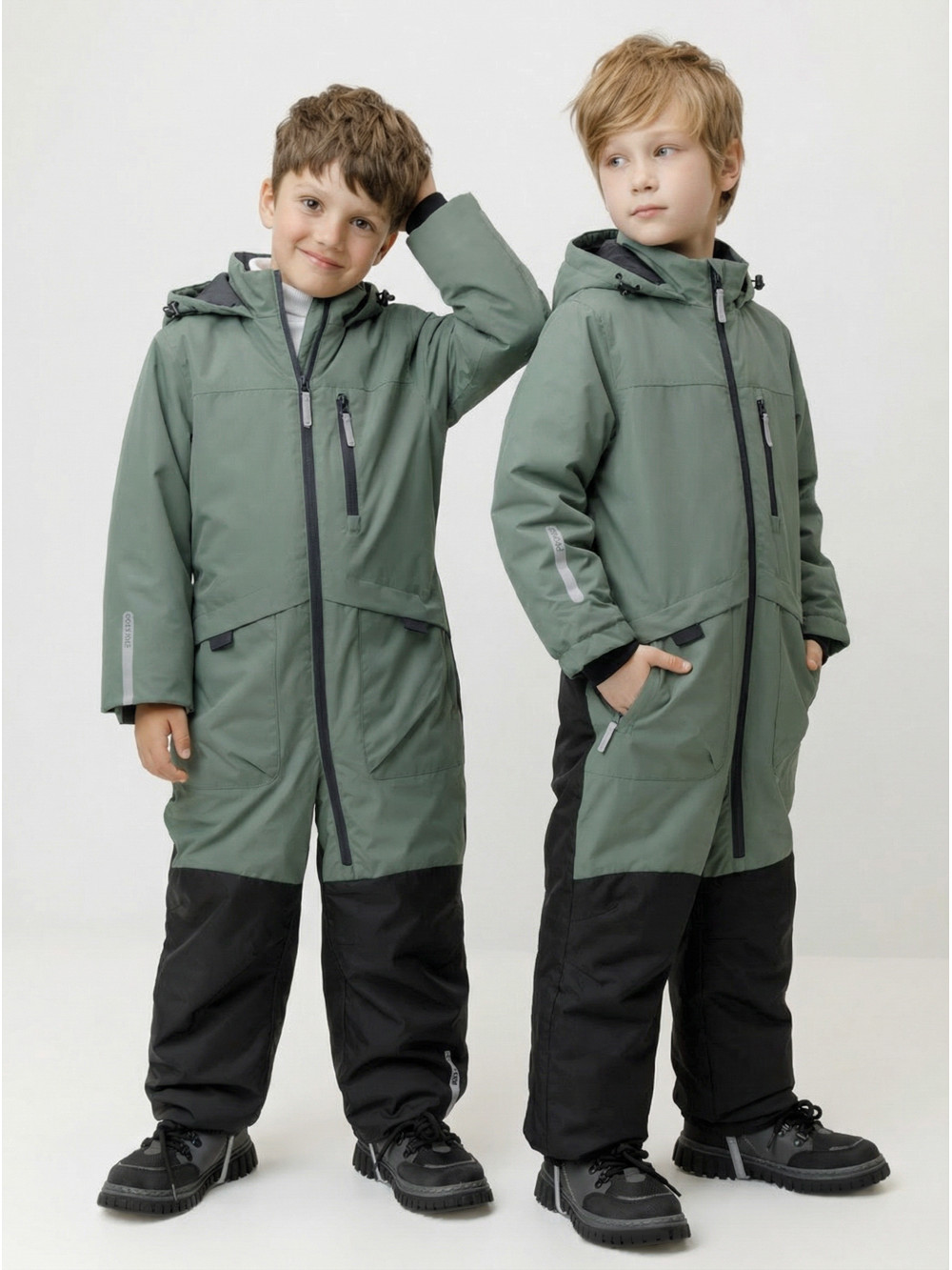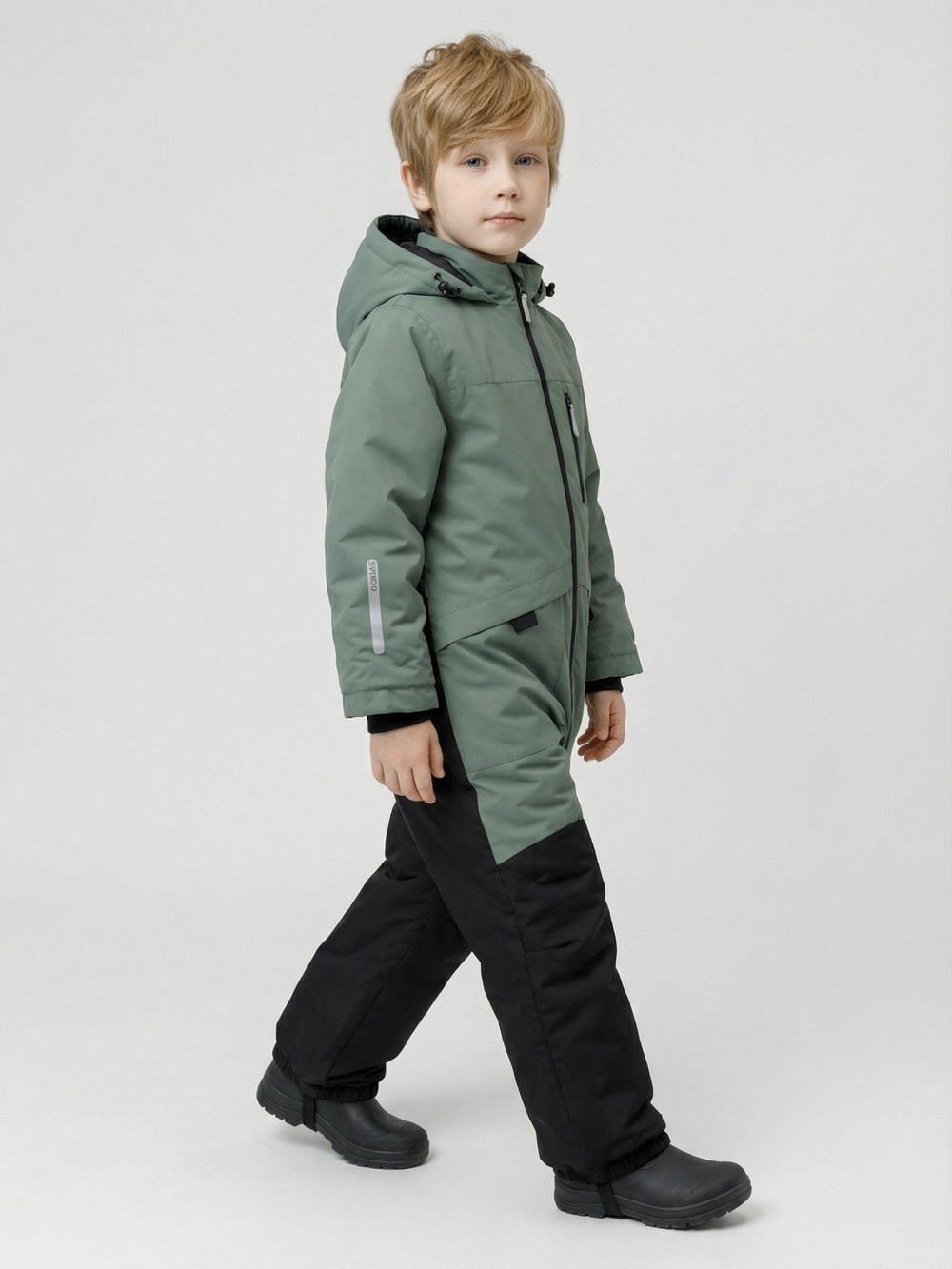 Демисезонный комбинезон для мальчика с утеплителем Fellex®, 120 г/м2. Выполнен из мембранной ткани с дополнительной тефлоновой обработкой. Данный вид обработки предохраняет изделие от загрязнения и лучше отводит влагу. Подклад из 100% полиэстера. Для удобного одевания комбинезон застёгивается на удлинённую молнию с защитой подбородка. Капюшон не снимается, по бокам эластичная утяжка со стопперами. Внутри рукавов мягкие манжеты из лайкры. По низу и по спинке изделия предусмотрены эластичные резинки для лучшего прилегания. Для фиксации комбинезона используются съёмные силиконовые штрипки. Во всех изделиях верхнего ассортимента для безопасности ребёнка предусмотрены светоотражающие элементы.