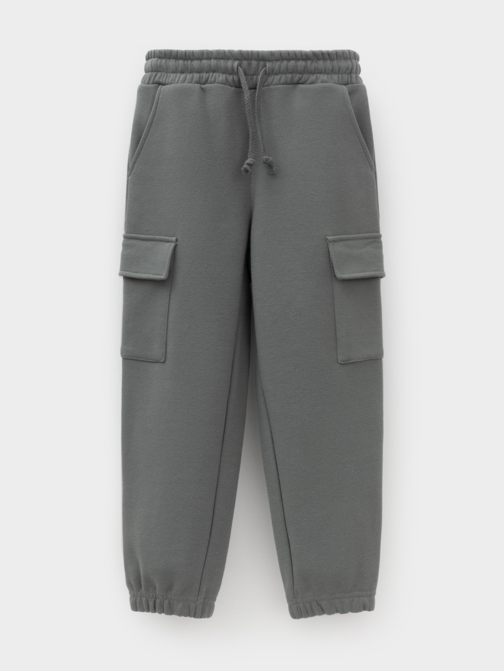 Брюки для мальчика из мягкого петельчатого футера трёхнитки. В составе 80% натурального хлопка и 20% полиэстера, при этом полиэстер ввязан внутрь по особой технологии и не соприкасается с кожей. Модель с эластичным поясом на резинке и утягивающим шнурком для регулировки по талии. По бокам четыре кармана. Низ на манжетах. Изделие сохраняет цвет и форму после многократных стирок. Все трикотажные полотна производятся в соответствии с нормами швейцарского сертификата ЭкоТекс.