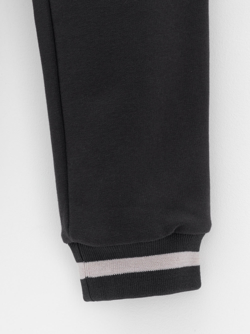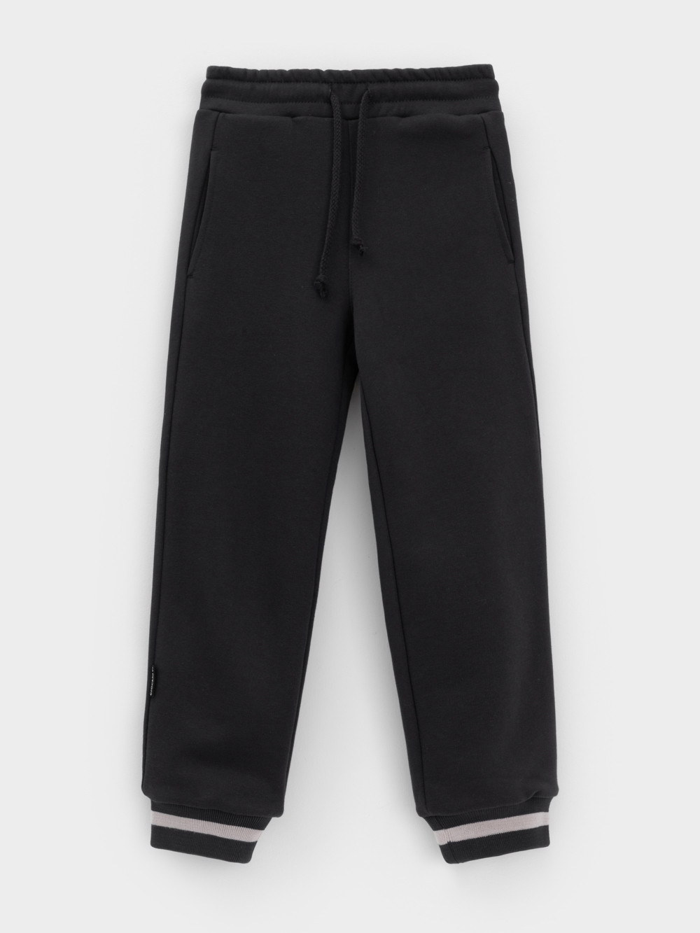 Брюки для мальчика из мягкого петельчатого футера. Модель с эластичным поясом на резинке и утягивающим шнурком для регулировки по талии. По бокам два удобных кармана. Низ на манжетах. Изделие сохраняет цвет и форму после многократных стирок. Все трикотажные полотна производятся в соответствии с нормами швейцарского сертификата ЭкоТекс.