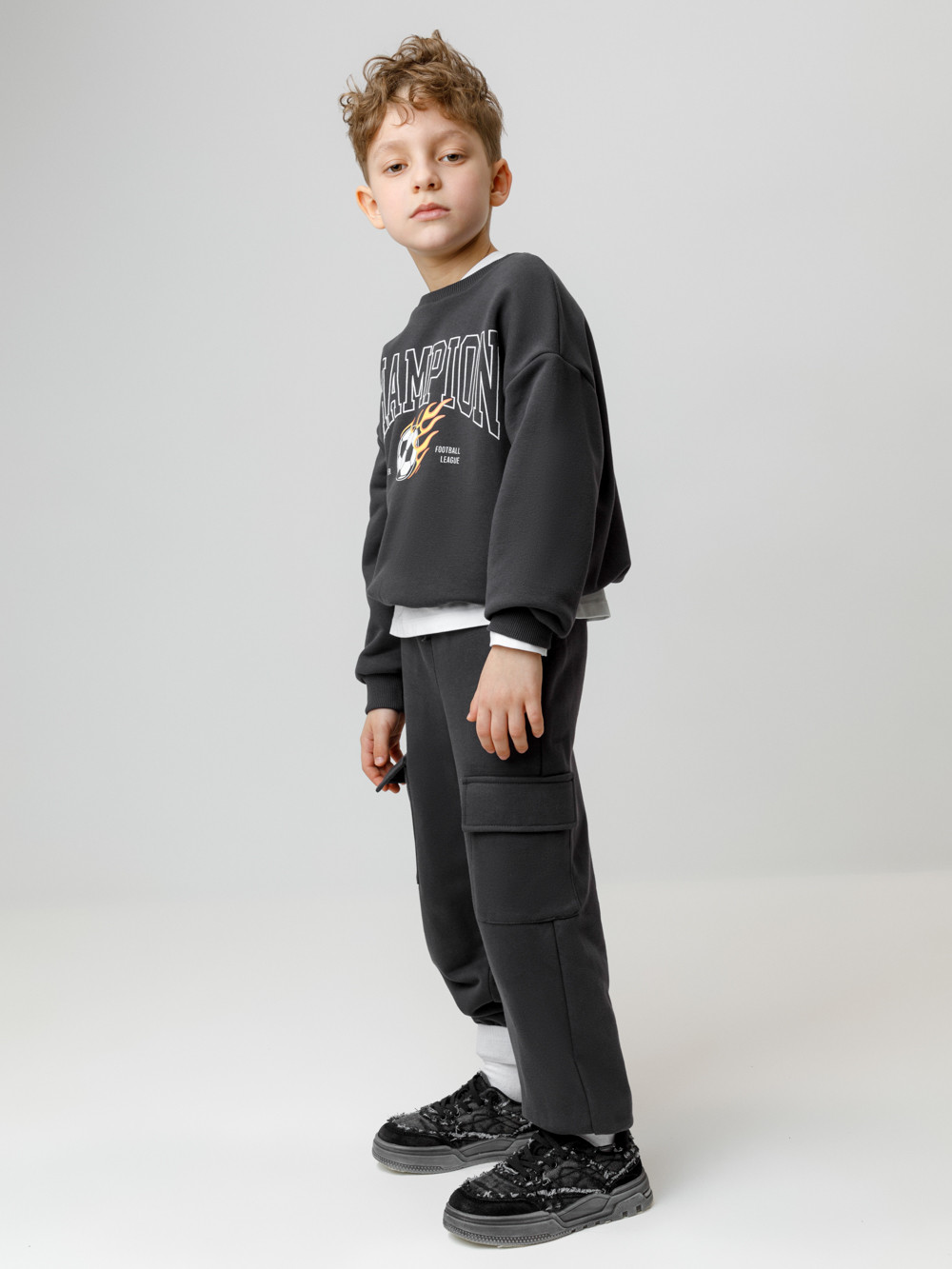 Брюки для мальчика из мягкого петельчатого футера трёхнитки. В составе 80% натурального хлопка и 20% полиэстера, при этом полиэстер ввязан внутрь по особой технологии и не соприкасается с кожей. Модель с эластичным поясом на резинке и утягивающим шнурком для регулировки по талии. По бокам четыре удобных кармана. Низ на манжетах. Изделие сохраняет цвет и форму после многократных стирок. Все трикотажные полотна производятся в соответствии с нормами швейцарского сертификата ЭкоТекс.