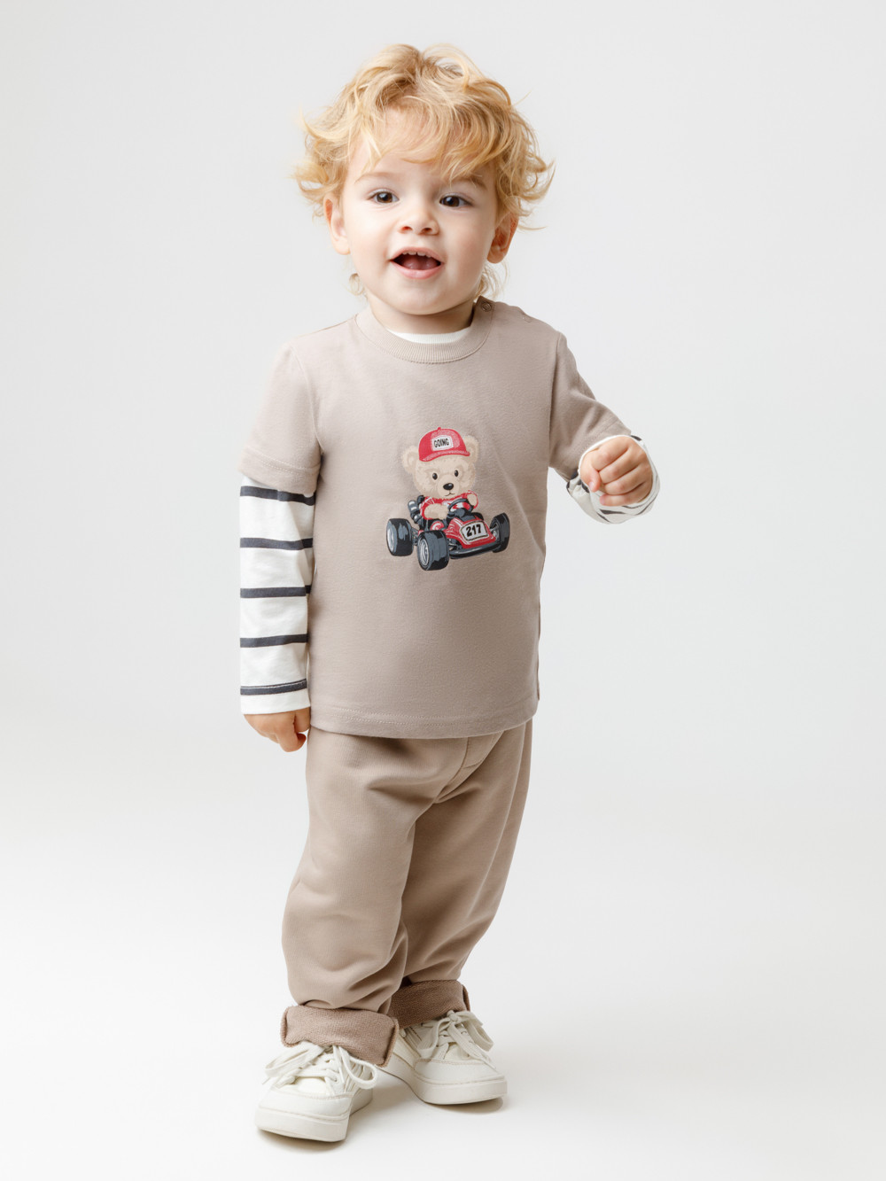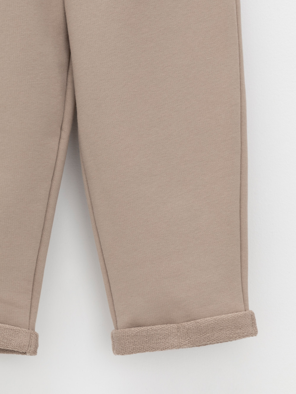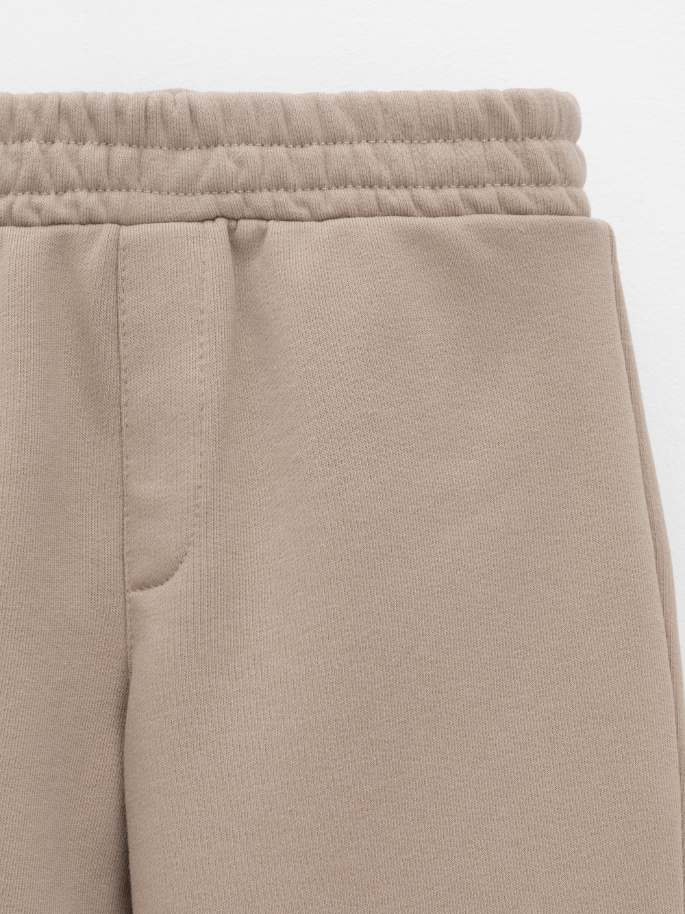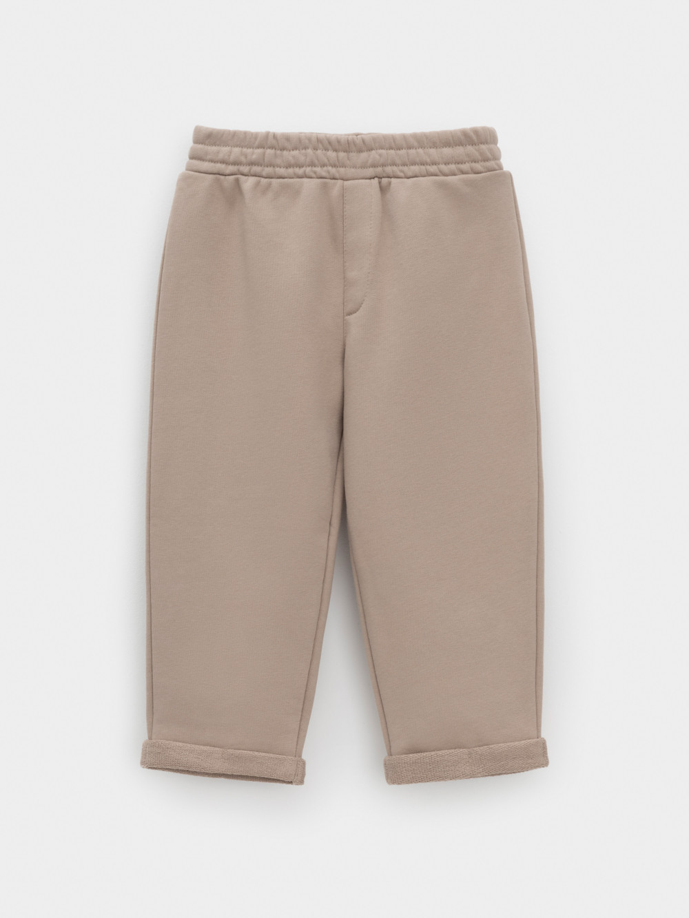 Брюки для мальчика из мягкого петельчатого футера трёхнитки. В составе 80% натурального хлопка и 20% полиэстера, при этом полиэстер ввязан внутрь по особой технологии и не соприкасается с кожей. Модель с эластичным поясом на резинке и отворотами по низу изделия. Брюки сохраняют цвет и форму после многократных стирок. Все трикотажные полотна производятся в соответствии с нормами швейцарского сертификата ЭкоТекс.