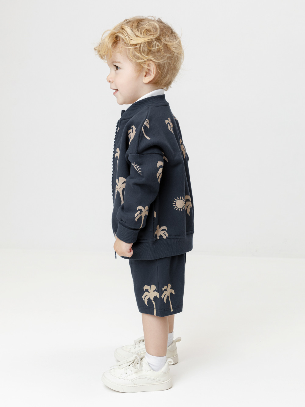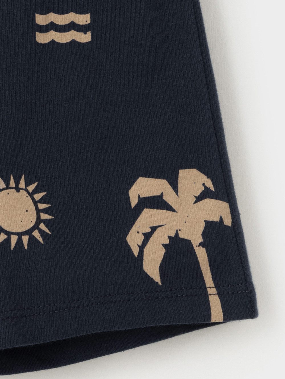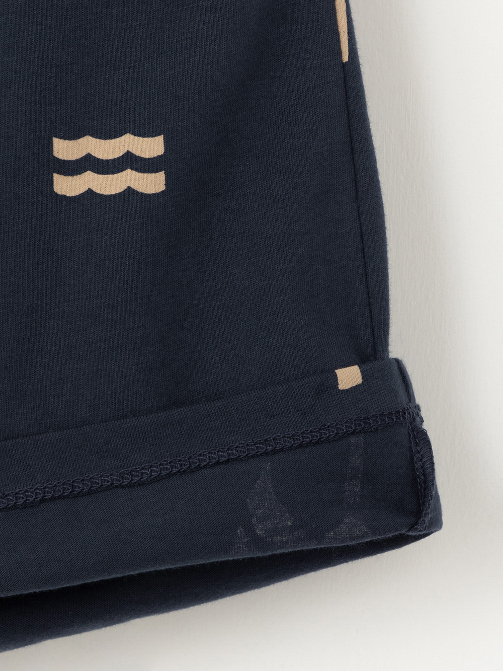 Лёгкие шорты для мальчика из гладкого трикотажа супрем. Эластичный пояс на резинке регулируется по ширине с помощью шнурка. Изделие сохраняет цвет и форму после многократных стирок. Все трикотажные полотна производятся в соответствии с нормами швейцарского сертификата ЭкоТекс.