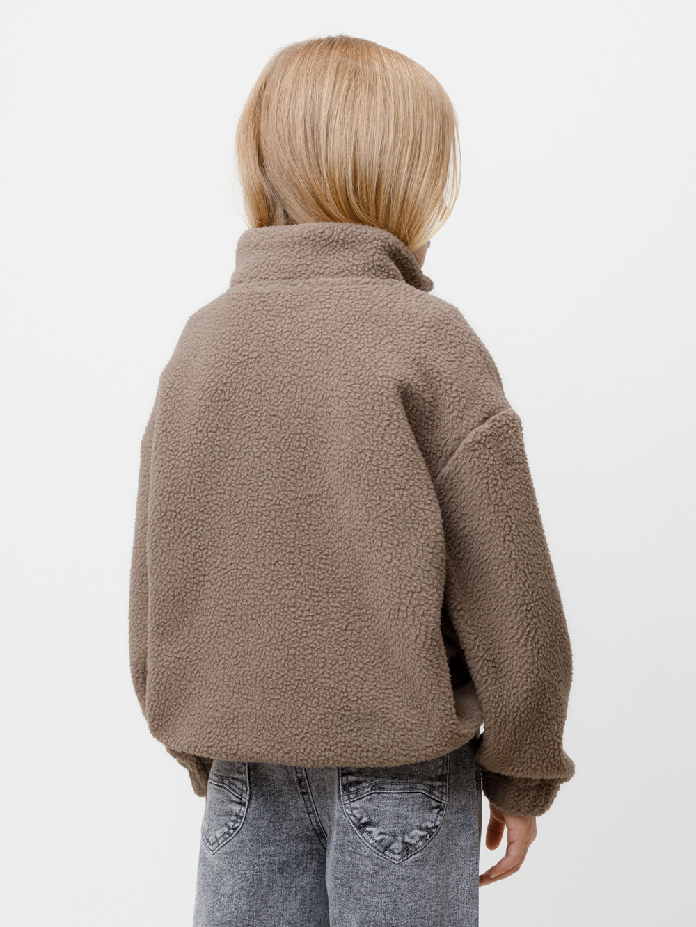 Детская толстовка из флиса. У изделия высокий воротник и застёжка спереди на короткую молнию. Рукава и низ изделия собраны на резинку. Толстовка сохраняет цвет и форму после многократных стирок.