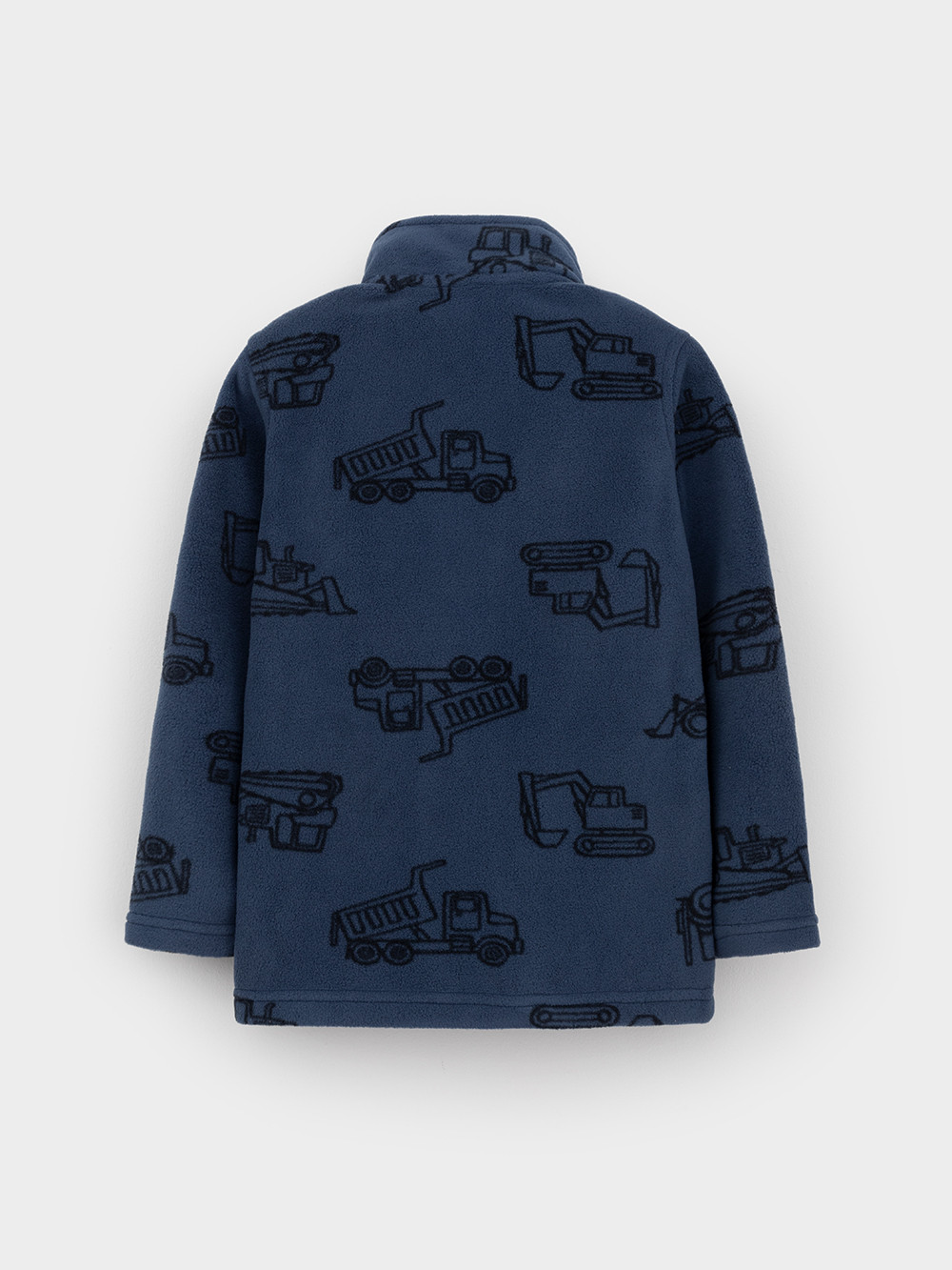 Флисовая куртка для мальчика. У изделия высокий воротник и застёжка на молнию с мягкой защитой шеи и подбородка. По бокам два кармана. Оригинальная набивка выполнена из стойких гипоаллергенных текстильных красителей. Куртка сохраняет цвет и форму после многократных стирок.