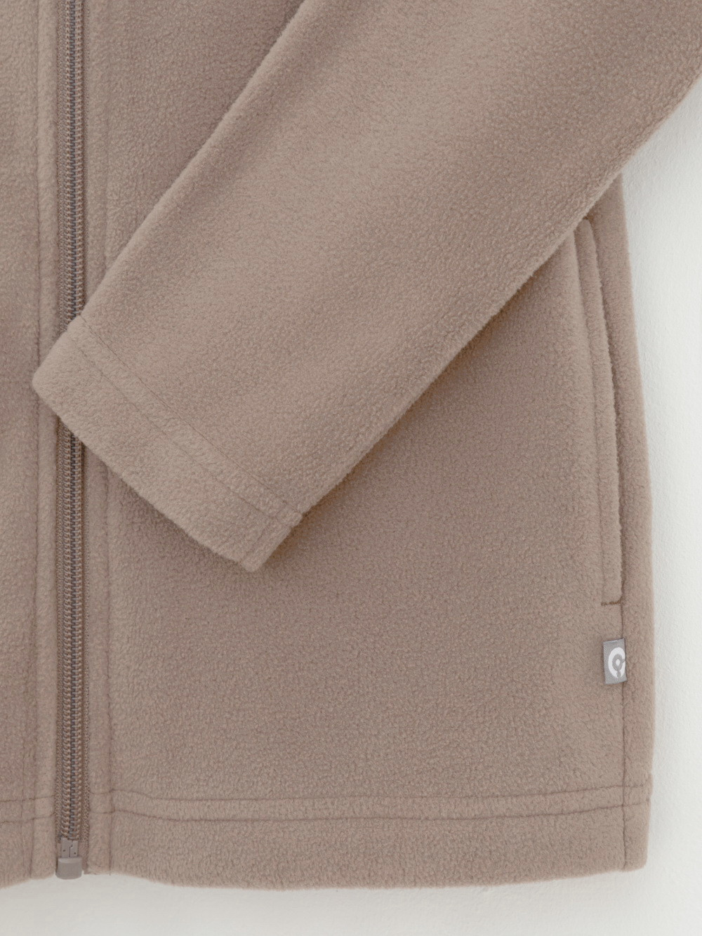 Флисовая куртка для мальчика. У изделия высокий воротник и застёжка на молнию с мягкой защитой шеи и подбородка. По бокам два кармана. Спереди украшена фирменной нашивкой. Куртка сохраняет цвет и форму после многократных стирок.