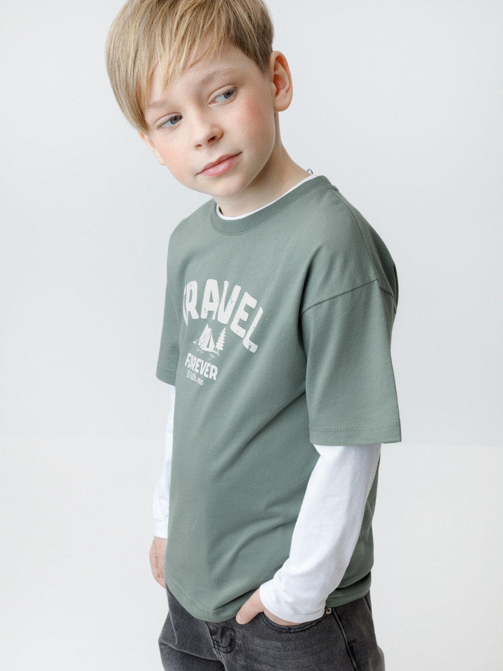 Футболка для мальчика из высококачественного трикотажного полотна. Оригинальный принт выполнен из стойких текстильных красителей. Изделие сохраняет цвет и форму после многократных стирок. Все трикотажные полотна производятся в соответствии с нормами швейцарского сертификата ЭкоТекс.