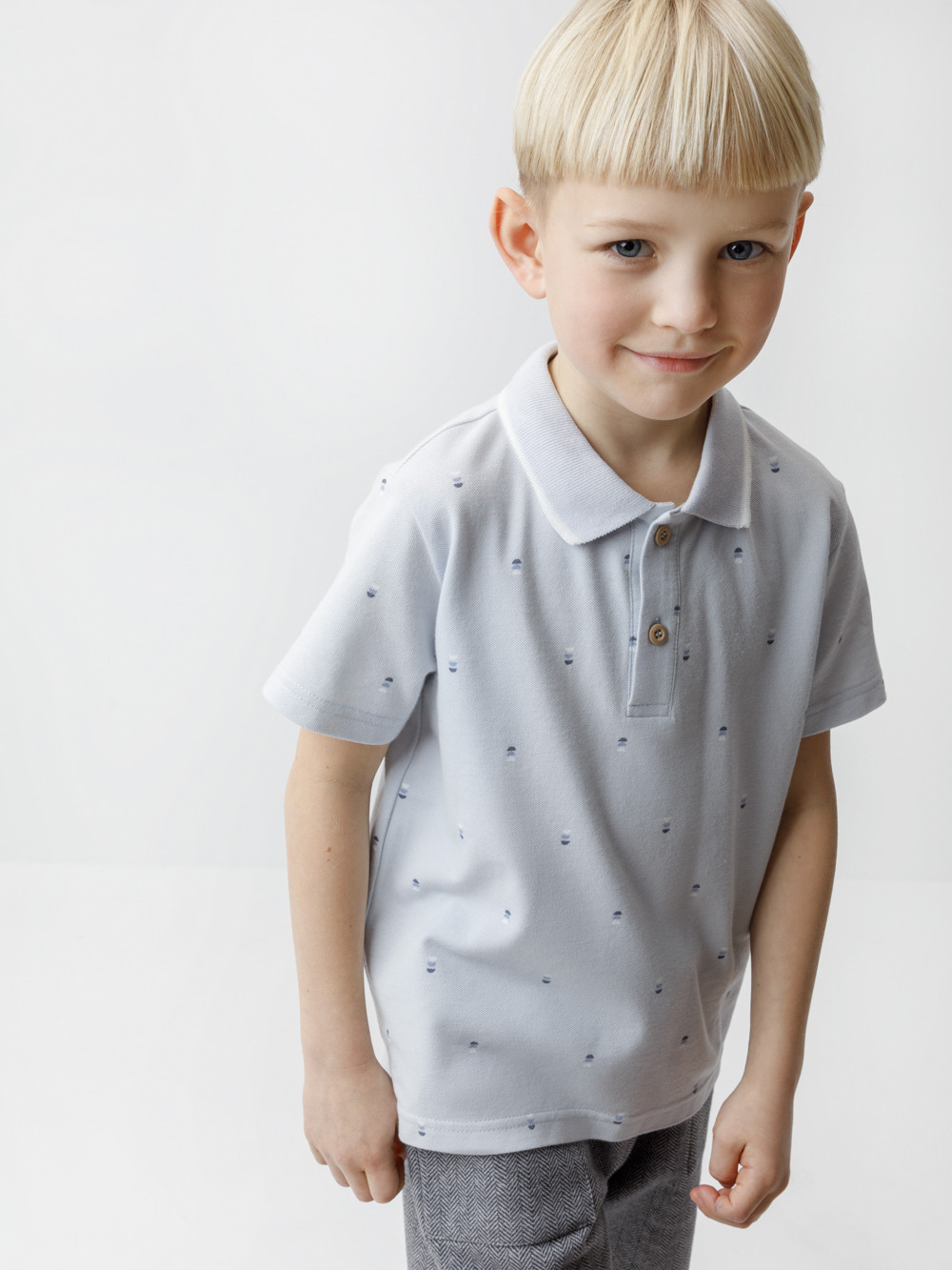 Футболка-поло для мальчика из высококачественного трикотажного полотна пике. У изделия вязаный воротник и застёжка спереди на пуговицы. Поло сохраняет цвет и форму после многократных стирок. Все трикотажные полотна производятся в соответствии с нормами швейцарского сертификата ЭкоТекс.