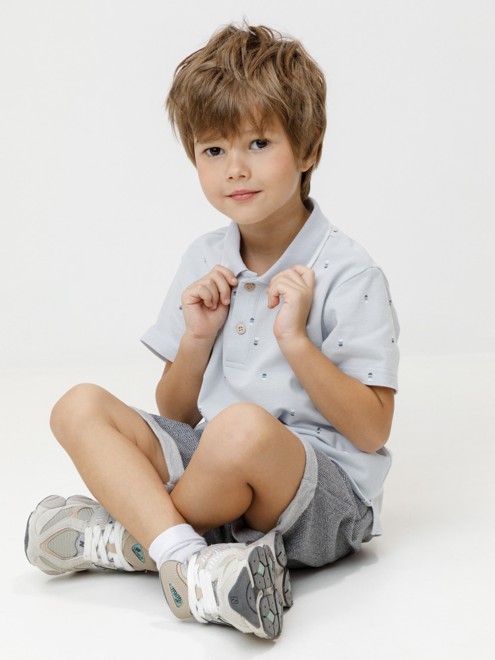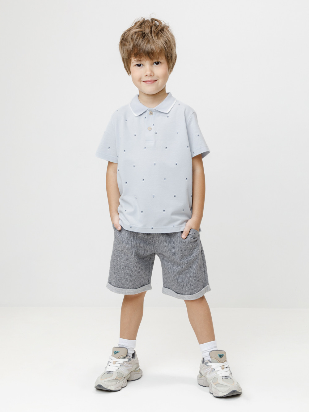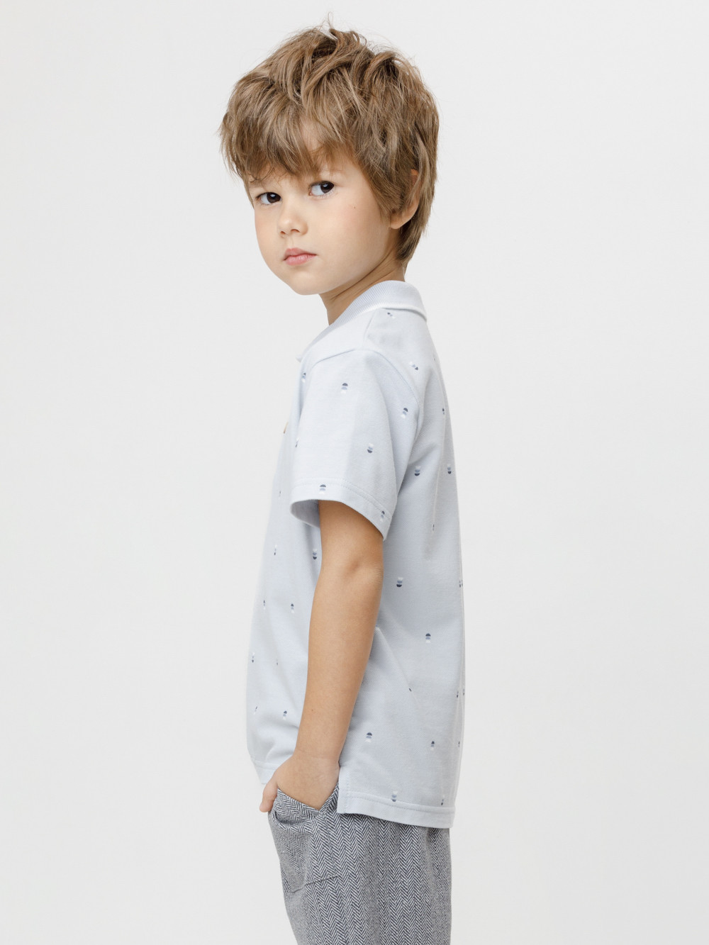 Футболка-поло для мальчика из высококачественного трикотажного полотна пике. У изделия вязаный воротник и застёжка спереди на пуговицы. Поло сохраняет цвет и форму после многократных стирок. Все трикотажные полотна производятся в соответствии с нормами швейцарского сертификата ЭкоТекс.