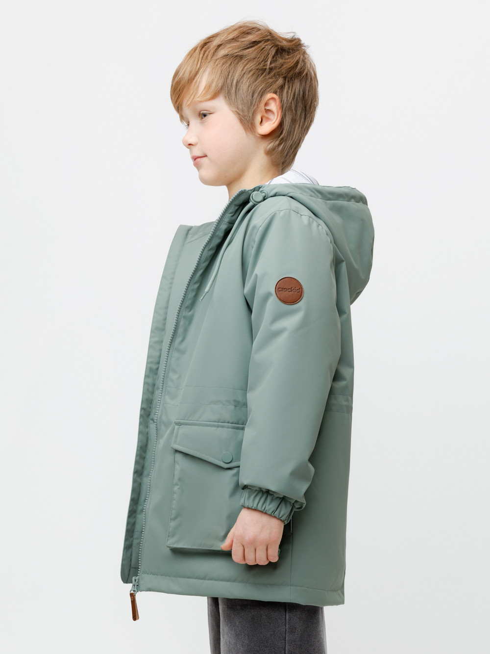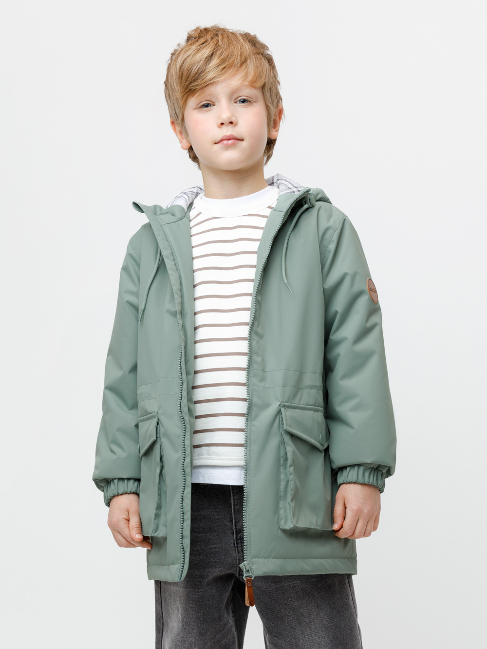Демисезонная куртка для мальчика с утеплителем Fellex®: 120 г/м2. Выполнена из мембранной ткани с тефлоновой обработкой. Данный вид обработки предохраняет изделие от загрязнения и хорошо отталкивает влагу. Подклад выполнен из 100% полиэстера. Куртка застёгивается на молнию, предусмотрена защита подбородка. Несъёмный капюшон имеет утяжку на шнур со стопперами по бокам. Низ рукавов на эластичной резинке. По талии эластичная утяжка со стопперами. По бокам два кармана с клапанами на кнопках. Во всех изделиях верхнего ассортимента для безопасности ребёнка предусмотрены светоотражающие элементы.