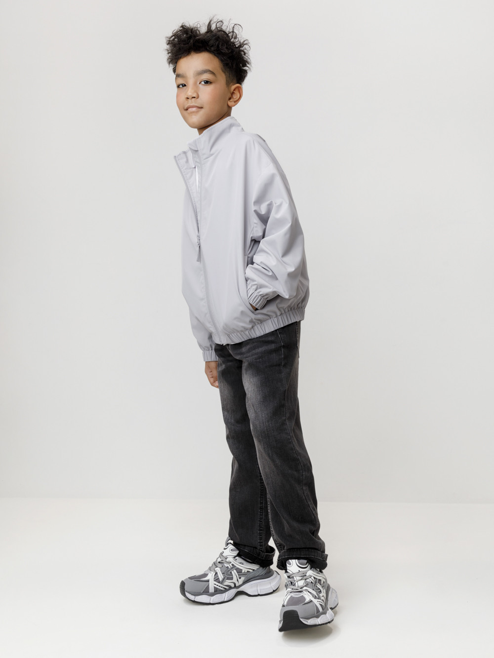Ветровка для мальчика из ткани с дополнительной тефлоновой обработкой. Верхний слой обеспечивает надёжную влагостойкость и воздухопроницаемость. Подклад из 100% полиэстера. У изделия удобная застёжка на молнию и воротник-стойка. На рукавах эластичные манжеты. Эластичная резинка по низу изделия. По бокам два удобных кармана. Светоотражающие элементы служат для дополнительной безопасности в тёмное время суток.