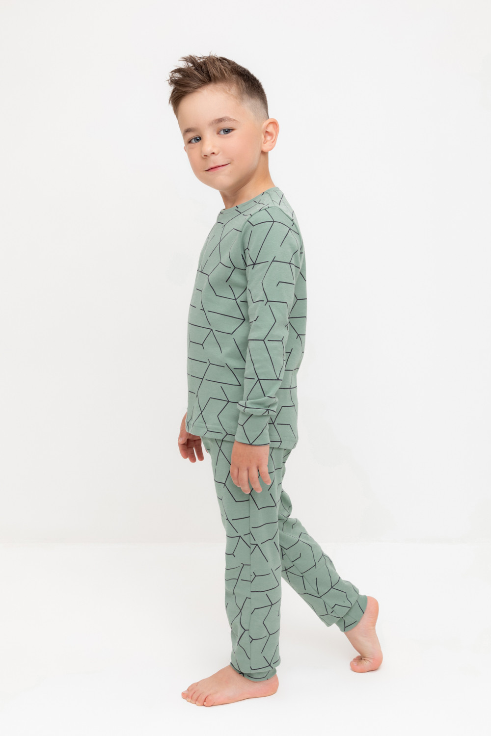 Трикотажная пижама из натурального хлопка. Джемпер с длинными рукавами с эластичными манжетами. У брюк эластичный пояс на резинке. Оригинальная набивка выполнена из стойких, гипоаллергенных текстильных красителей. Пижама сохраняет цвет и форму после многократных стирок. Все трикотажные полотна производятся в соответствии с нормами Швейцарского сертификата ЭкоТекс.