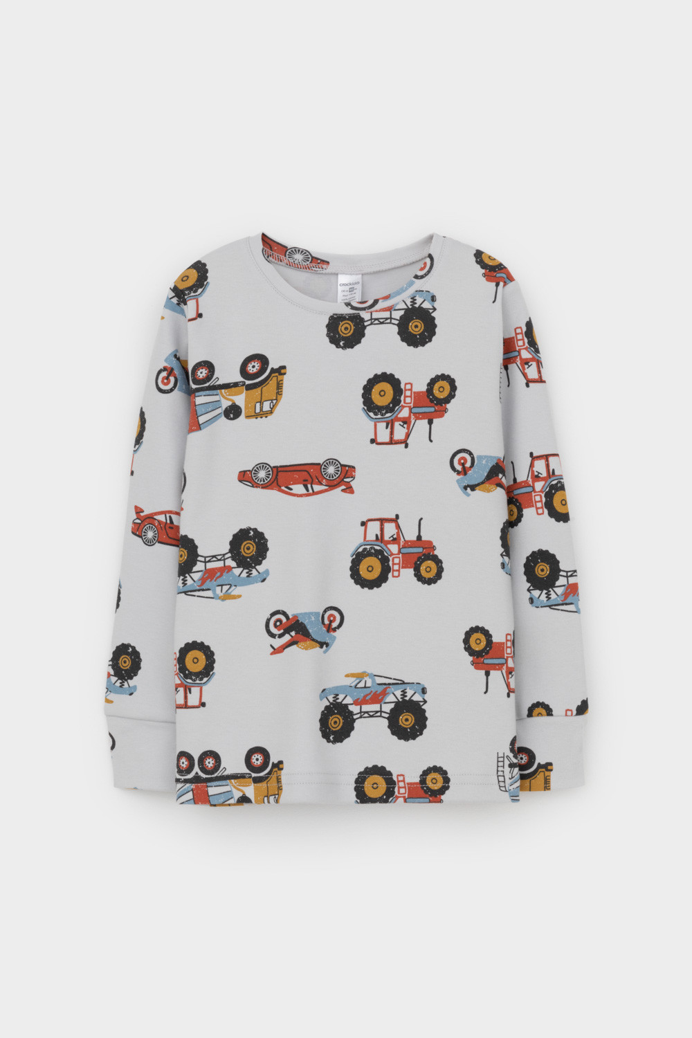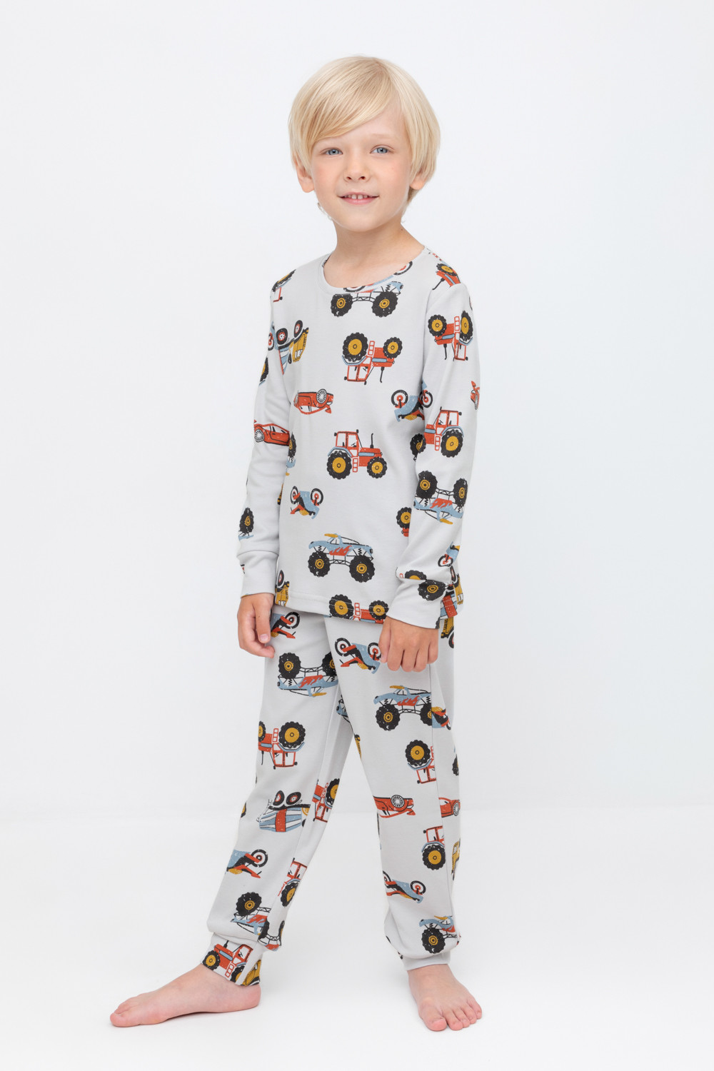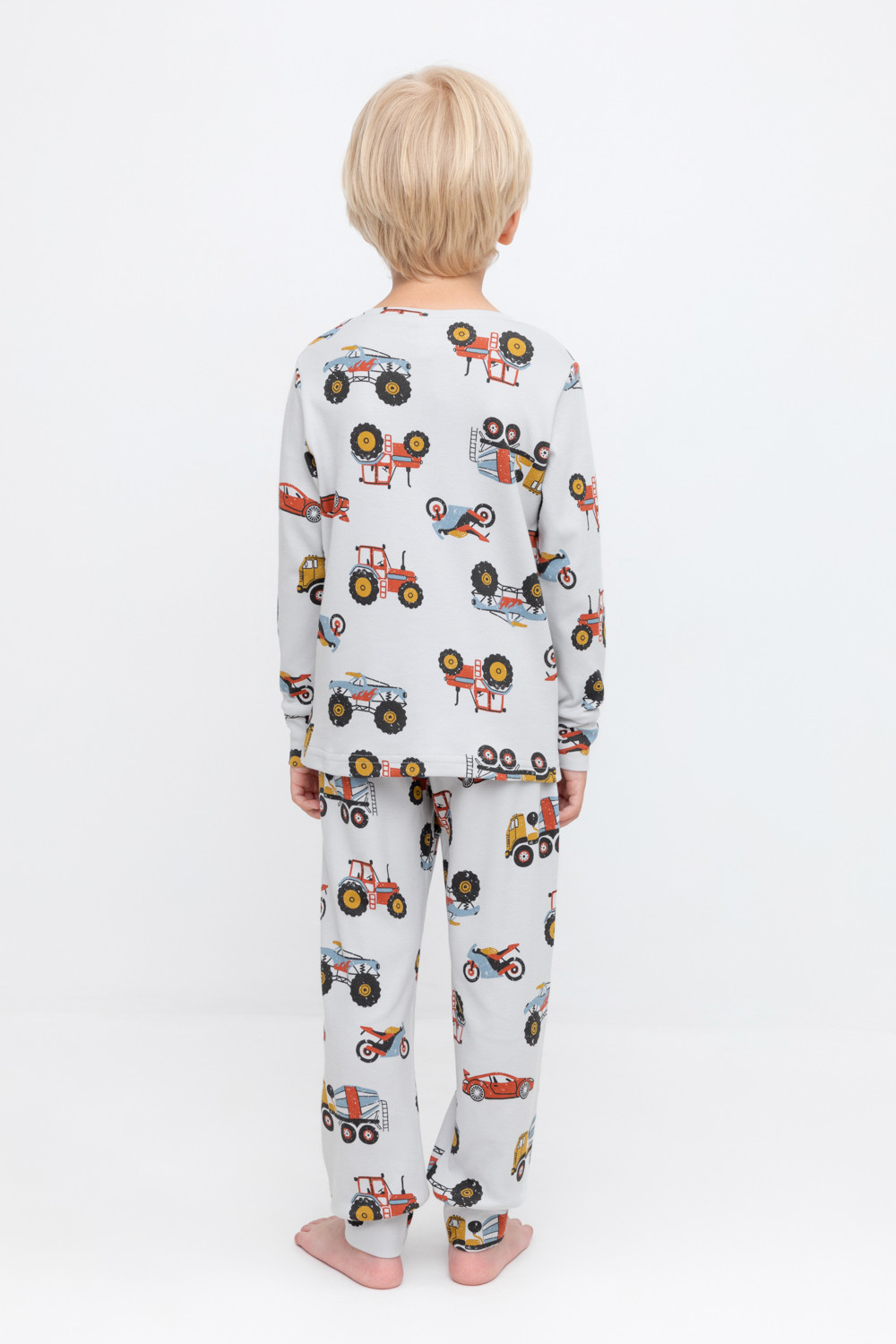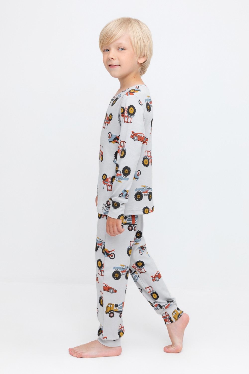 Трикотажная пижама из натурального хлопка. Джемпер с длинными рукавами с эластичными манжетами. У брюк эластичный пояс на резинке. Оригинальная набивка выполнена из стойких, гипоаллергенных текстильных красителей. Пижама сохраняет цвет и форму после многократных стирок. Все трикотажные полотна производятся в соответствии с нормами Швейцарского сертификата ЭкоТекс.
