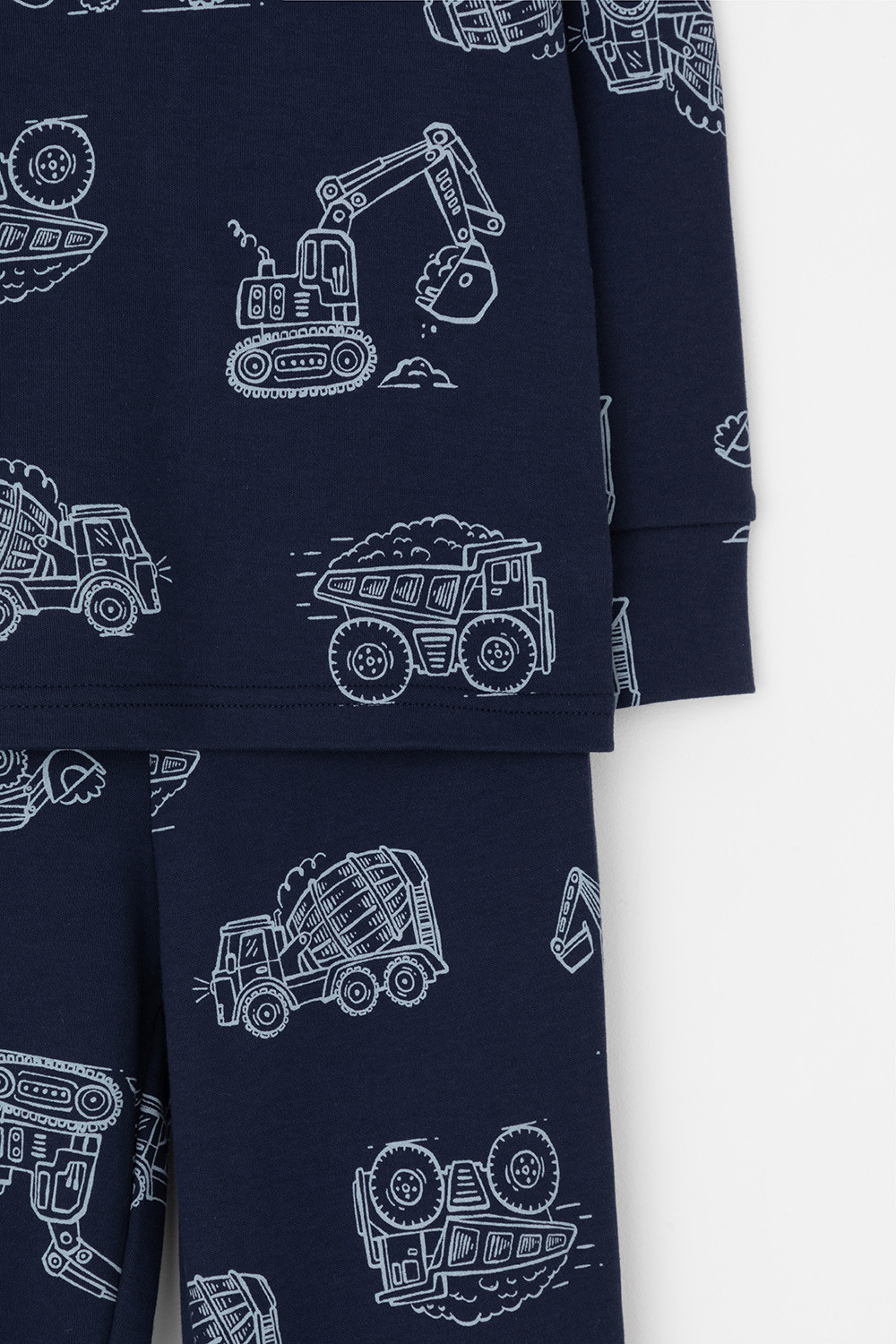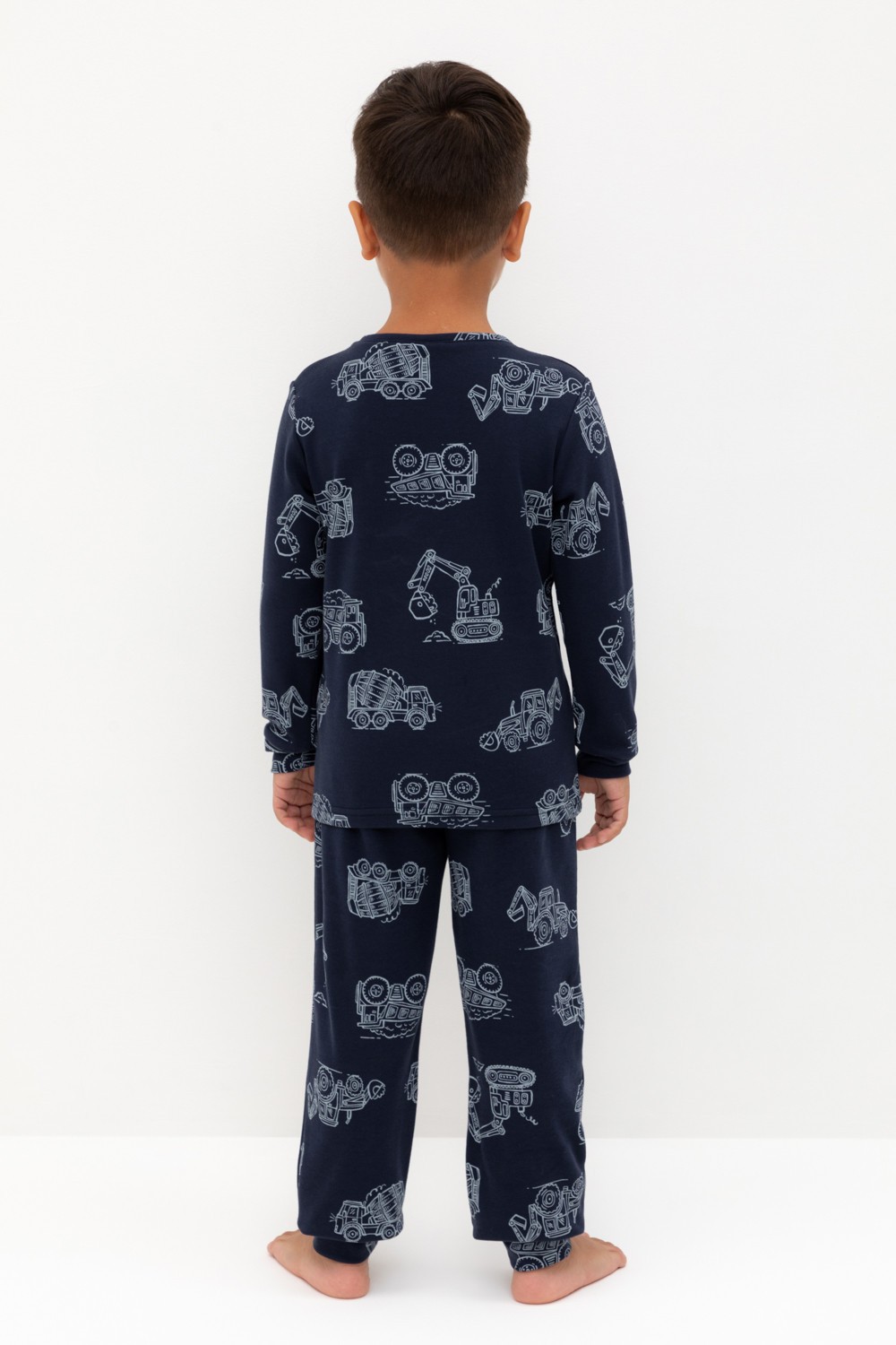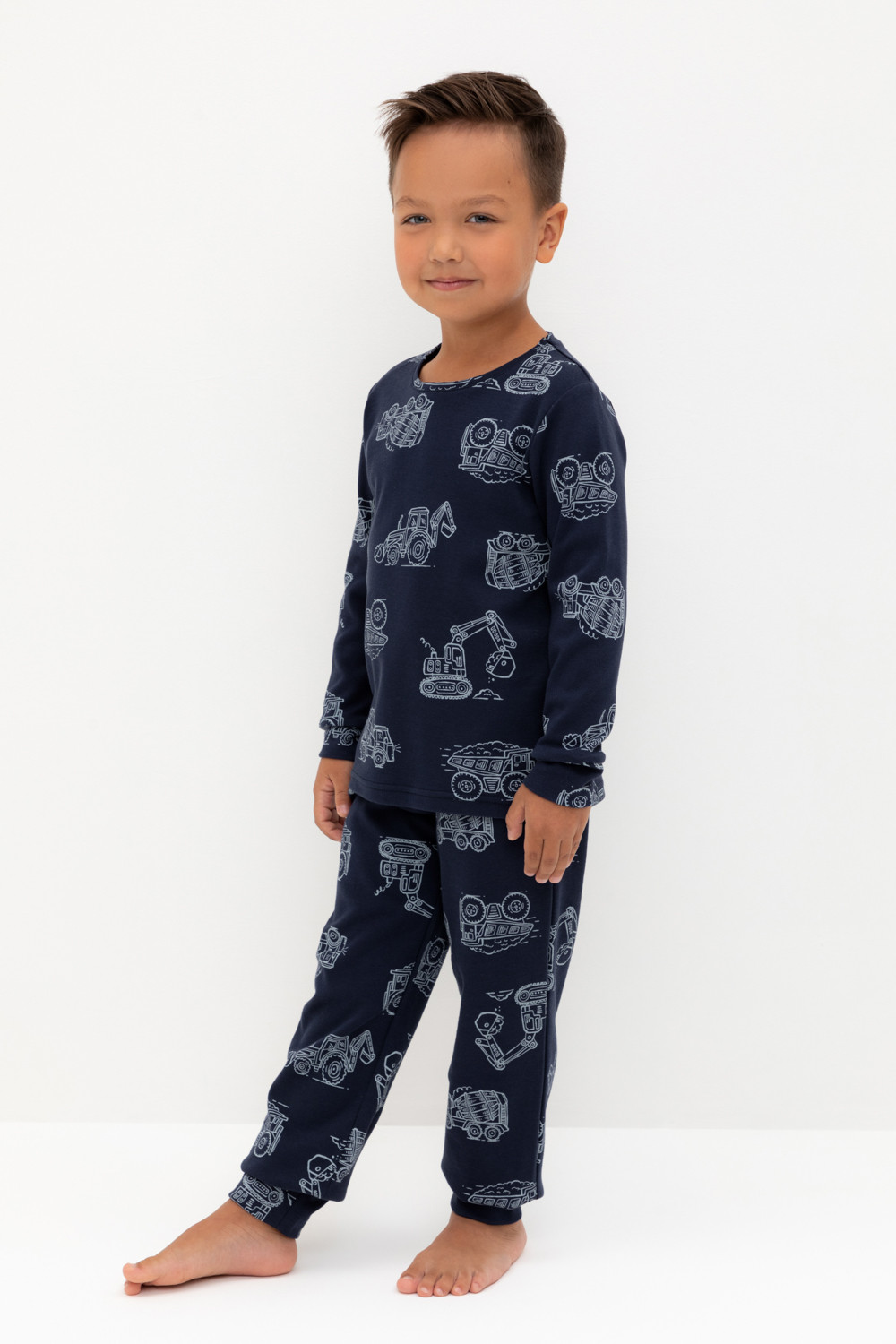 Трикотажная пижама из натурального хлопка. Джемпер с длинными втачными рукавами и брюки с эластичной резинкой в поясе. Мягкие манжеты на рукавах и по низу брюк. Оригинальная набивка выполнена из стойких текстильных гипоаллергенных красителей. Изделие сохраняет цвет и форму после многократных стирок. Все трикотажные полотна производятся в соответствии с нормами швейцарского сертификата ЭкоТекс.