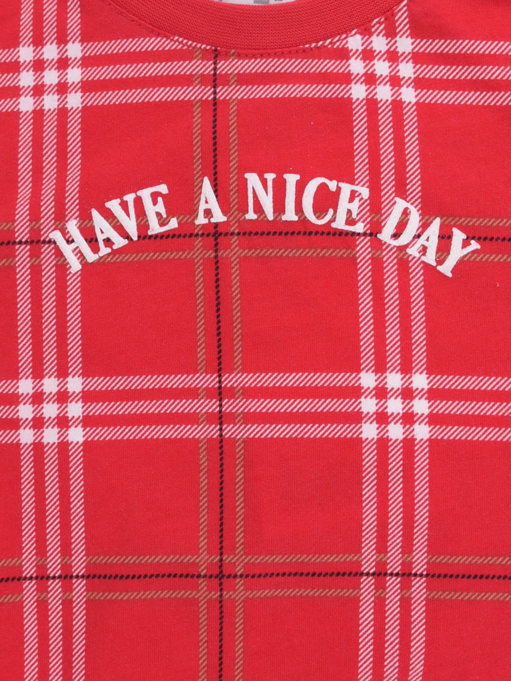 Трикотажная пижама из натурального хлопка.  Джемпер с длинными втачными рукавами и брюки с эластичной резинкой в поясе. Мягкие манжеты на рукавах и по низу брюк. Пижама отлично подойдёт для создания уютных домашних образов или в качестве подарка на Новый год и Рождество. Оригинальная набивка и принт выполнены из стойких текстильных гипоаллергенных красителей. Изделие сохраняет цвет и форму после многократных стирок. Все трикотажные полотна производятся в соответствии с нормами швейцарского сертификата ЭкоТекс.