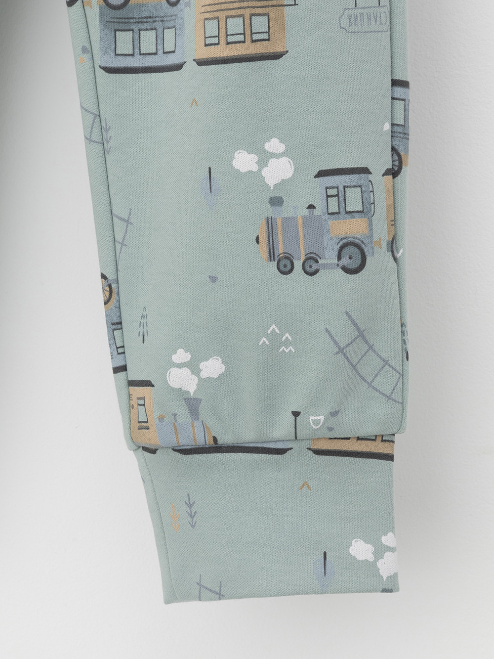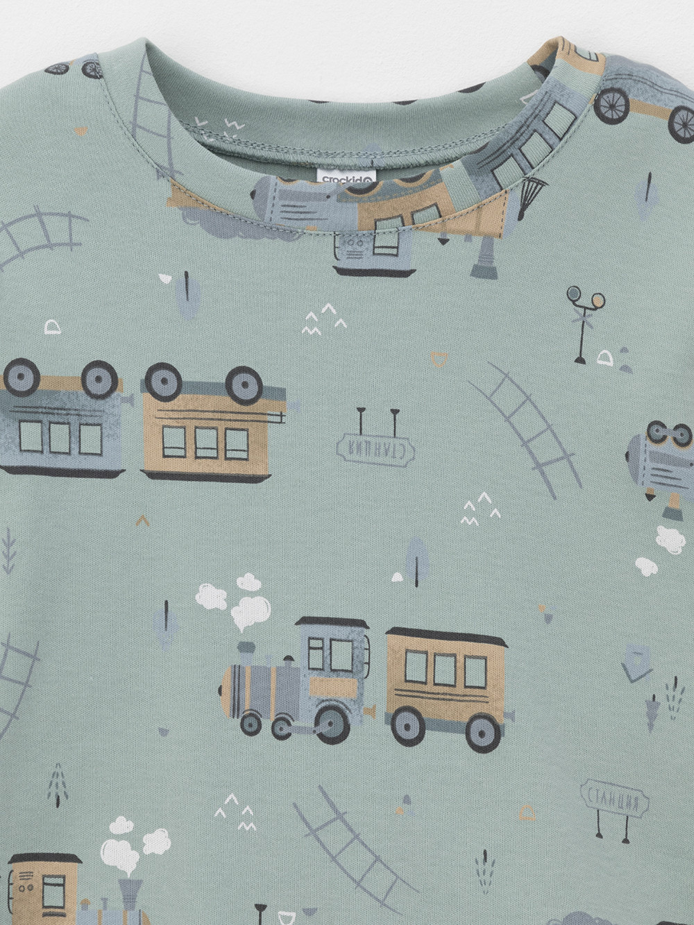Трикотажная пижама из натурального хлопка. Джемпер с длинными втачными рукавами и брюки с эластичной резинкой в поясе. Мягкие манжеты на рукавах и по низу брюк. Оригинальная набивка выполнена из стойких текстильных гипоаллергенных красителей. Изделие сохраняет цвет и форму после многократных стирок. Все трикотажные полотна производятся в соответствии с нормами швейцарского сертификата ЭкоТекс.