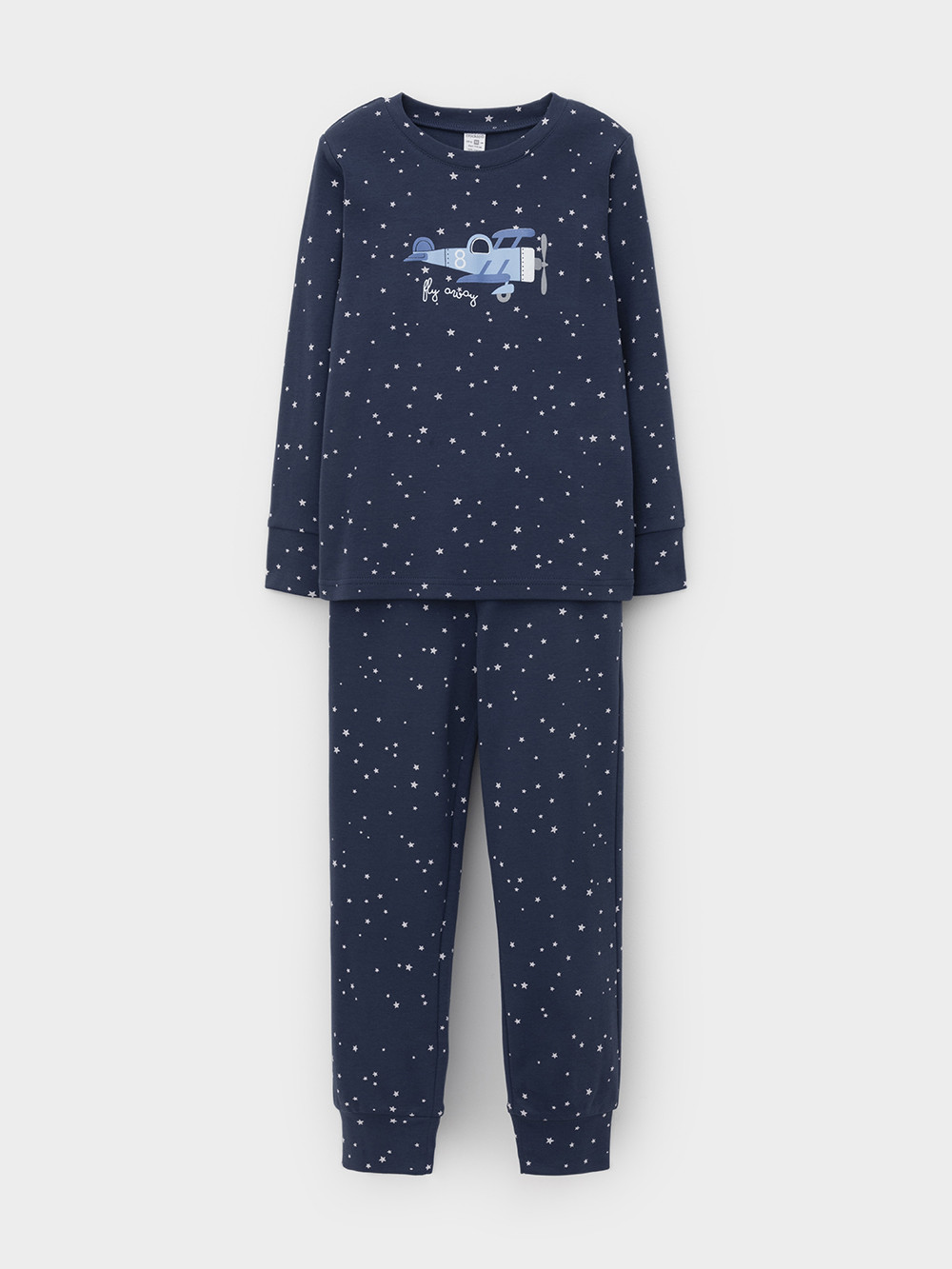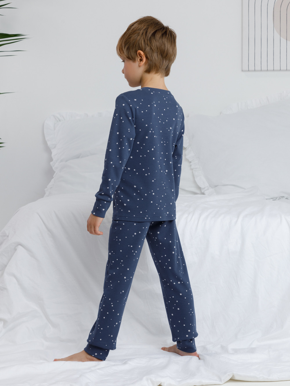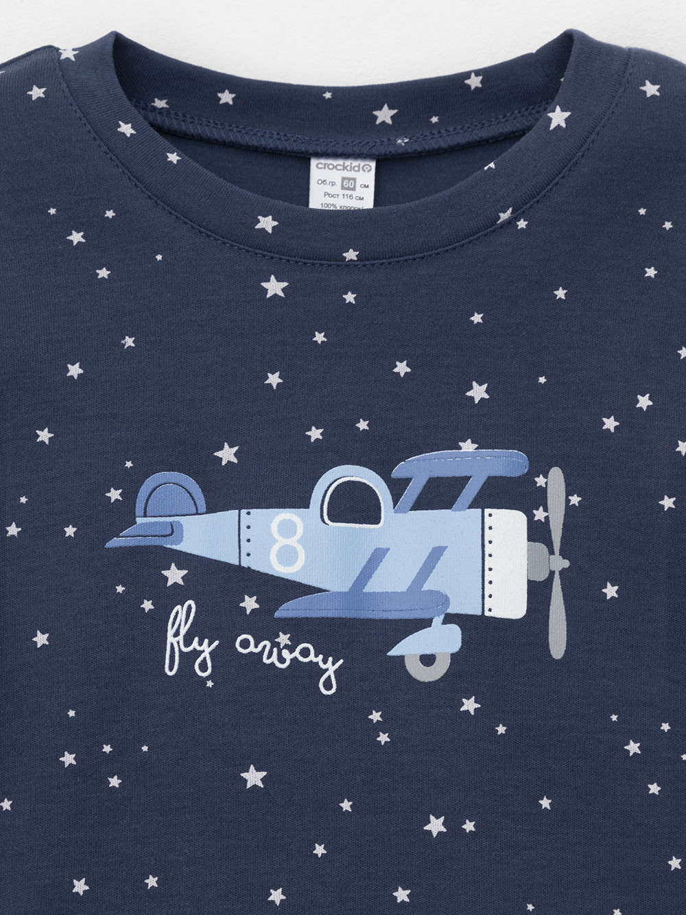 Трикотажная пижама из натурального хлопка. Джемпер с длинными втачными рукавами и брюки с эластичной резинкой в поясе. Мягкие манжеты на рукавах и по низу брюк. Оригинальная набивка и принт выполнены из стойких текстильных гипоаллергенных красителей. Изделие сохраняет цвет и форму после многократных стирок. Все трикотажные полотна производятся в соответствии с нормами швейцарского сертификата ЭкоТекс.