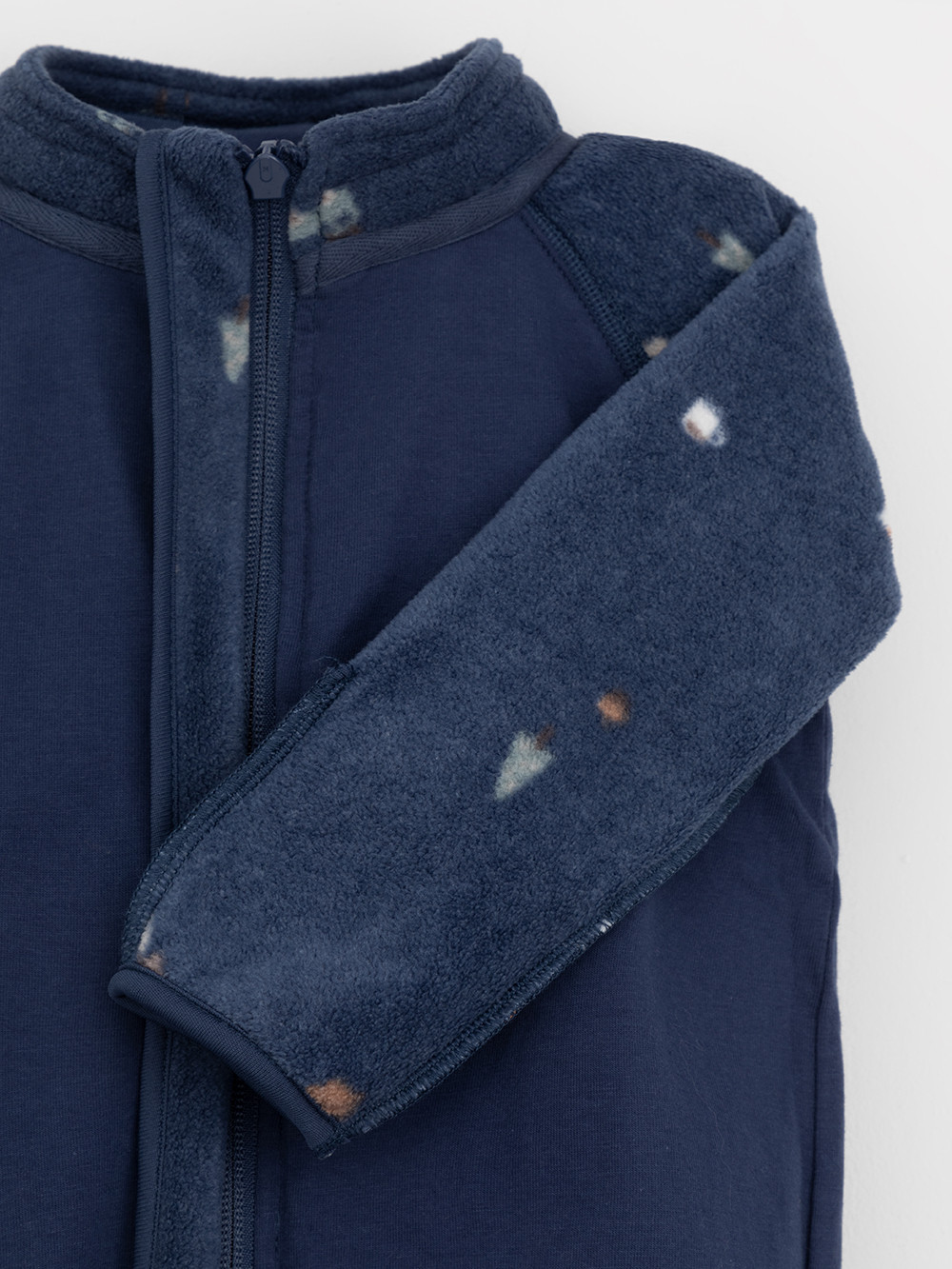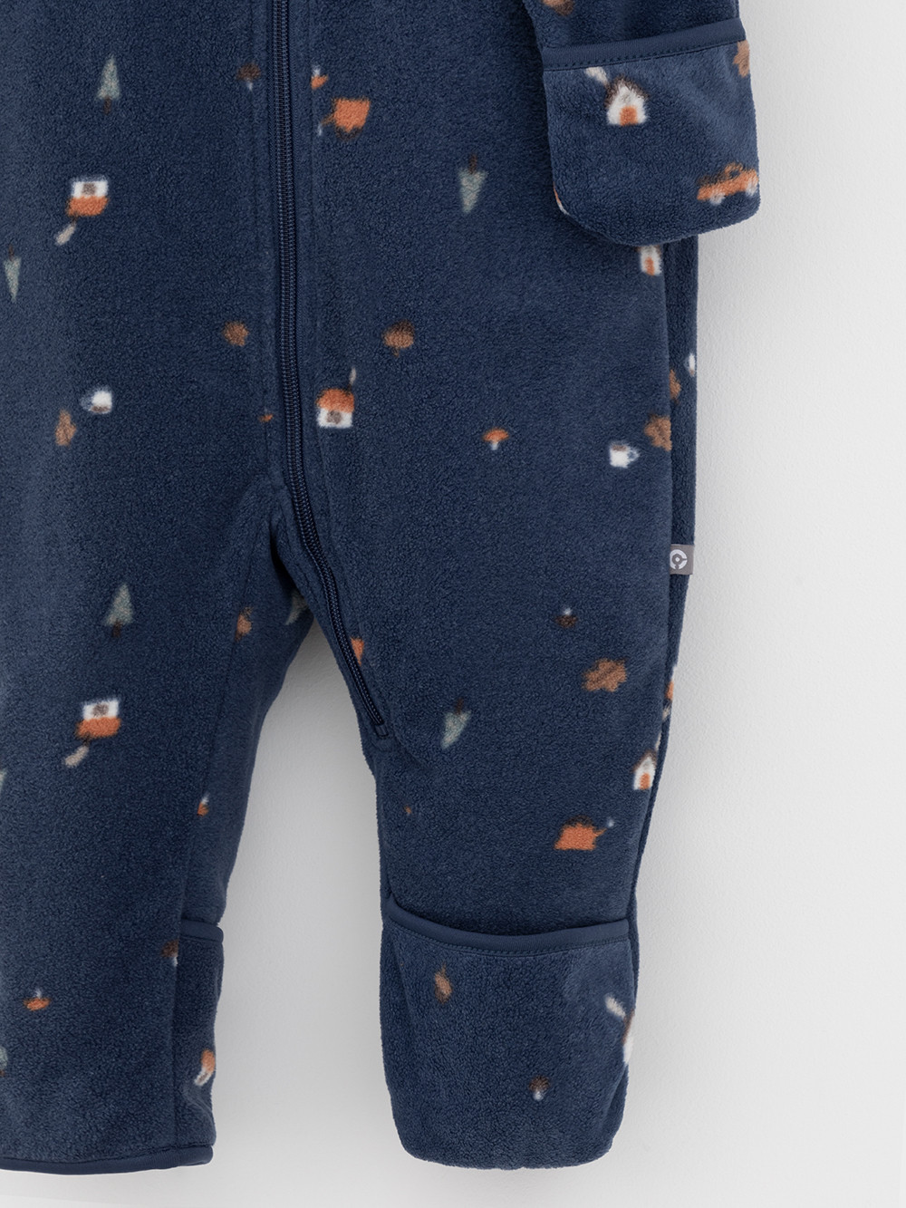 Флисовый комбинезон для мальчика со съёмным капюшоном. Капюшон регулируется по ширине с помощью эластичной утяжки со стопперами. Подклад выполнен из гладкого трикотажа супрем, произведённого из высококачественного натурального хлопка. Застёгивается на удлинённую молнию с мягкой защитой шеи и подбородка. В размерах 62, 68 и 74 на рукавах и ножках есть отвороты. Оригинальная набивка выполнена из стойких гипоаллергенных текстильных красителей. Комбинезон сохраняет цвет и форму после многократных стирок.