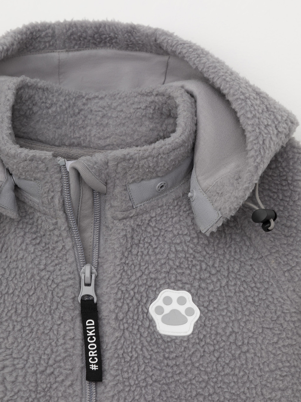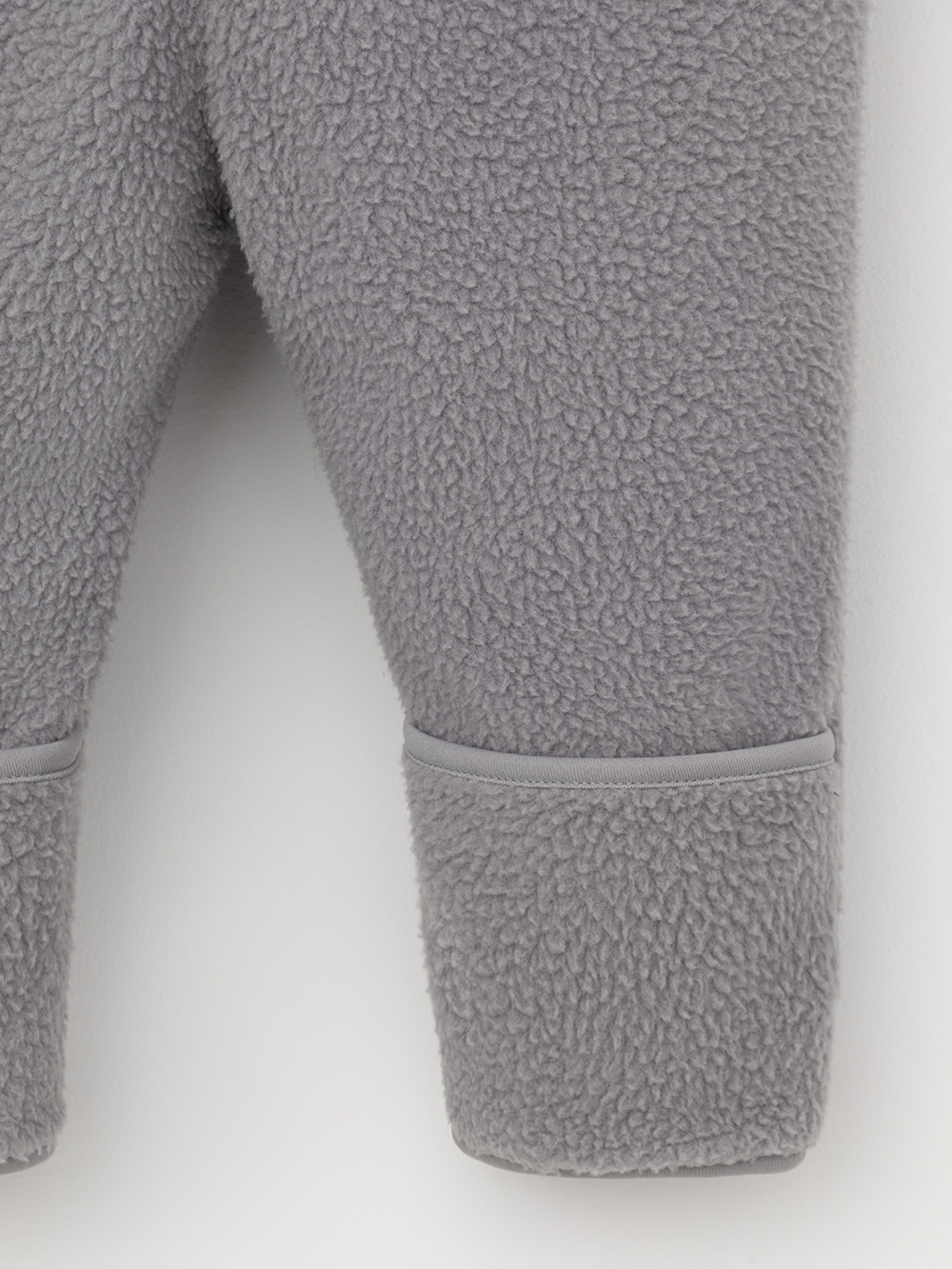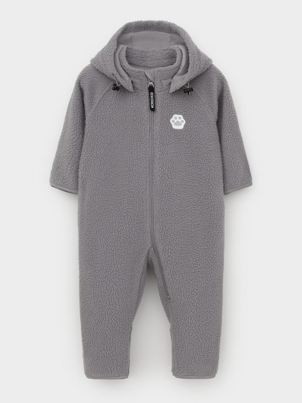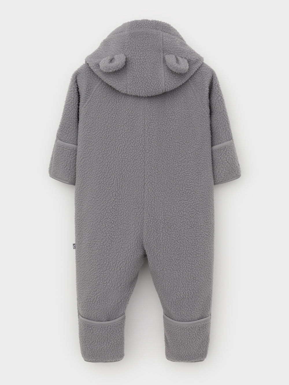 Флисовый комбинезон для наворождённых со съёмным капюшоном. Капюшон регулируется по ширине с помощью эластичной утяжки со стопперами. Подклад выполнен из гладкого трикотажа супрем, произведённого из высококачественного натурального хлопка. Застёгивается на удлинённую молнию с мягкой защитой шеи и подбородка. В размерах 80 и 86 на рукавах и ножках отворотов нет. Украшен декоративными ушками и нашивкой. Комбинезон сохраняет цвет и форму после многократных стирок.